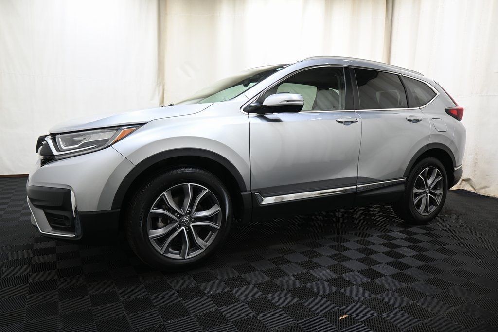 2021 Honda CR-V Touring Lunar Silver Metallic 1.5L I4 DOHC 16V AWD CVT AWD 4-Wheel Disc Brakes ABS brakes AM/FM radio: SiriusXM Apple CarPlay/Android Auto Automatic temperature control Blind Spot Information (BSI) System warning Brake assist Electronic Stability Control Exterior Parking Camera Rear Forward collision: Collision Mitigation Braking System (CMBS) + FCW mitigation Front dual zone A/C Front fog lights Garage door transmitter: HomeLink Heated door mirrors Heated Front Bucket Seats Heated steering wheel Memory seat Navigation system: Honda Satellite-Linked Navigation System Power Liftgate Power moonroof Radio: 330-Watt AM/FM/HD/SiriusXM Prem Audio System Remote keyless entry Steering wheel mounted audio controls Traction control Turn signal indicator mirrors.