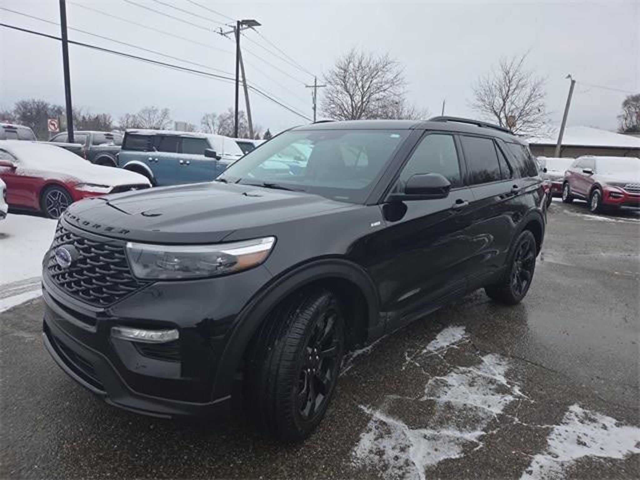 4WD. Certified. 2023 Ford Explorer ST-Line Agate Black Metallic Ford Blue Certified Details: * Warranty Deductible: $100 * 139 Point Inspection * Transferable Warranty * Roadside Assistance * Limited Warranty: 3 Month/4,000 Mile (whichever comes first) after new car warranty expires or from certified purchase date * Vehicle History * and 11,000 FordPass Rewards Points to use toward first maintenance visit Class IV Trailer Tow Package, Equipment Group 250A, Ford Blue Certified Certified, 4WD, 12 Speakers, 20 Machined Aluminum w/Painted Pockets Wheels, 3.58 Non-Limited-Slip Rear Axle Ratio, 360-Degree Camera Credit, 3rd row seats: bench, 4-Wheel Disc Brakes, 4G LTE Wi-Fi Hotspot Credit, ABS brakes, Air Conditioning, Alloy wheels, AM/FM radio: SiriusXM, Auto High-beam Headlights, Auto-dimming Rear-View mirror, Automatic temperature control, Brake assist, Bumpers: body-color, Compass, Delay-off headlights, Driver door bin, Driver vanity mirror, Dual front impact airbags, Dual front side impact airbags, Electronic Stability Control, Emergency communication system: SYNC 3 911 Assist, Exterior Parking Camera Rear, FordPass Connect, Four wheel independent suspension, Front anti-roll bar, Front Bucket Seats, Front Center Armrest, Front dual zone A/C, Front fog lights, Front reading lights, Fully automatic headlights, Heated door mirrors, Heated front seats, Heated steering wheel, Htd ActiveX Trimmed Captain's Chairs w/Miko Insert, Illuminated entry, Knee airbag, Leather steering wheel, Low tire pressure warning, Navigation System, Occupant sensing airbag, Outside temperature display, Overhead airbag, Overhead console, Panic alarm, Passenger door bin, Passenger vanity mirror, Power door mirrors, Power driver seat, Power Liftgate, Power passenger seat, Power steering, Power windows, Radio data system, Radio: B&O Sound System by Bang & Olufsen, Rain sensing wipers, Rear air conditioning, Rear anti-roll bar, Rear reading lights, Rear window defroster, Rear window wiper, Remote keyless entry, Security system, Speed control, Speed-sensing steering, Speed-Sensitive Wipers, Split folding rear seat, Spoiler, Steering wheel mounted audio controls, SYNC 3 Communications & Entertainment System, SYNC 3/Apple CarPlay/Android Auto, Tachometer, Telescoping steering wheel, Tilt steering wheel, Traction control, Trip computer, Twin Panel Moonroof, Variably intermittent wipers, Voice-Activated Touchscreen Navigation System, and Wheels: 21 Aluminum. Odometer is 1152 miles below market average! 20/27 City/Highway MPG