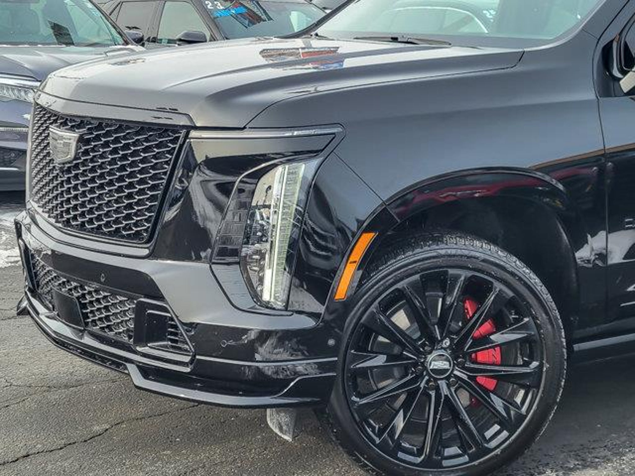 2026 Cadillac Escalade V-Series Black Raven AWD 4D Sport Utility 6.2L V8 Supercharged 10-Speed Automatic with Overdrive Clean CARFAX. Recent Arrival! 11/17 City/Highway MPG **With some available options like Onyx Package (24 Black Alloy Wheels, Black Illuminated Cadillac Emblem, Gloss Black Escalade Nameplate, and Wheels: 24 Transit), Preferred Equipment Group 1SD (Active Noise Cancellation, AKG Studio Reference 38-Speaker Audio System, Blind Zone Steering Assist with Trailering, Door Lock and Latch Shields, Driver Seat Power Bolster, Electronic Limited-Slip Differential, Front Passenger Seat Power Bolster, Glass Breakage Sensor, Heated and Ventilated Driver and Front Passenger Seats, Hitch Guidance with Hitch View, Illuminating Front and Rear Sill Plates, Integrated Trailer Brake Controller, Magnetic Ride Control Suspension, Night Vision, Platinum Interior Trim, Power Lumbar Massage Driver Seat, Power Lumbar Massage Front Passenger Seat, Power Panoramic Tilt-Sliding Sunroof, Power-Retractable Assist Steps, Rear Seat Entertainment System, Reconfigurable Full-Color Head-Up Display, Smart Trailer Integration Indicator, Theft-Deterrent Alarm System, Trailering App, Trailering Assist Guidelines, Vehicle Inclination Sensor, Vehicle Interior Movement Sensor, Wheel Locks, and Wheels: 24 Split 6-Spoke Alloy), Touring Package (Air Ride Adaptive Suspension, Power Open/Close Doors, and Soft Closing Front and Rear Doors), Ford Blue Advantage: Blue Certified Certified, AWD, Jet Black w/Full Semi-Aniline Leather Seats with Mondrian Quilting, 2-Presets Memory For Driver Seat Adjuster, 3.23 Axle Ratio, 3rd row seats: split-bench, 4-Way Power Driver Lumbar Seat Adjuster, 4-Way Power Front Passenger Lumbar Seat Adjuster, 4-Wheel Disc Brakes, 8-Way Power Driver Seat Adjuster, 8-Way Power Front Passenger Seat Adjuster, ABS brakes, Adaptive suspension, Air Conditioning, Alloy wheels, AM/FM radio: SiriusXM with 360L, Apple CarPlay/Android Auto, Audio memory, Auto High-beam Headlights, Auto tilt-away steering wheel, Auto-dimming door mirrors, Auto-dimming Rear-View mirror, Automatic temperature control, Brake assist, Bumpers: body-color, Compass, Delay-off headlights, Driver door bin, Driver vanity mirror, Dual front impact airbags, Dual front side impact airbags, Electronic Stability Control, Emergency communication system: OnStar Services capable, Exterior Parking Camera Rear, Four wheel independent suspension, Front anti-roll bar, Front Bucket Seats, Front Center Armrest w/Storage, Front dual zone A/C, Front reading lights