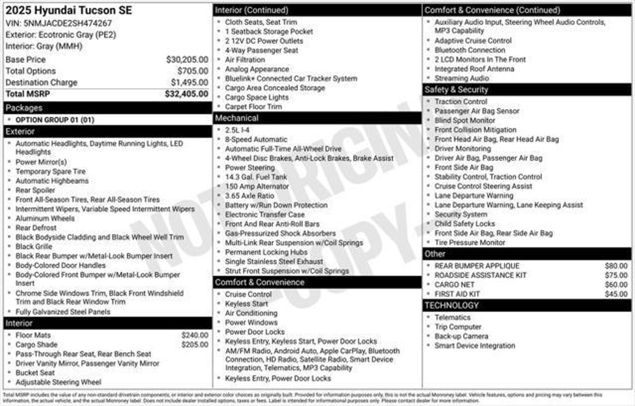 2025 Hyundai Tucson SE Please Call For More Details And Availability. Discover The One & Only Way To Buy Your Next Vehicle! Welcome To Gregory Hyundai, Where Convenience Meets Transparency. Skip The Traditional Dealership Hassel With The Time It Takes To Buy A Car And The Annoying Back & Fourth Negotiations! Our Innovative Process, One & Only, Revolutionizes Car Buying For Both First Time And Expert Car Buyers. Embrace Our Online Platform If You Prefer To Shop At Home; With Express Service at express.gregoryhyundai.com, Buy Your Dream Vehicle From The Comfort Of Home. With Express, You're In Charge. Select Your Terms, Apply for Financing, Get a Trade-In Value, Customize Your Ownership Options Or Simply Figure Out The Costs Involved With Your Purchase. Transparency Is Our Goal And We Prioritize Integrity, We Want To Be Your Guide Through This Process And We Promise To Act With Honesty And Professionalism. We Invite You To Experience The Difference At Our State-Of-The-Art Dealership In Highland Park, Illinois. 490 Skokie Valley Road Highland Park, IL 60035. We're Committed To Serving Our Community And Building Lasting Relationships With Our Customers All Over The Country. We're Here For You With Flexible Hours From 9 AM To 8 PM (Mon-Fri) And 9 AM To 6 PM (Sat). Don't Miss Out On the Future Of Car Buying. Visit GregoryHyundai.com Or Call Us Today . Gregory Hyundai/Genesis of Highland Park"“ Where Convenience, Transparency, and Exceptional Service Meet. We Look Forward To Serving You SooN.