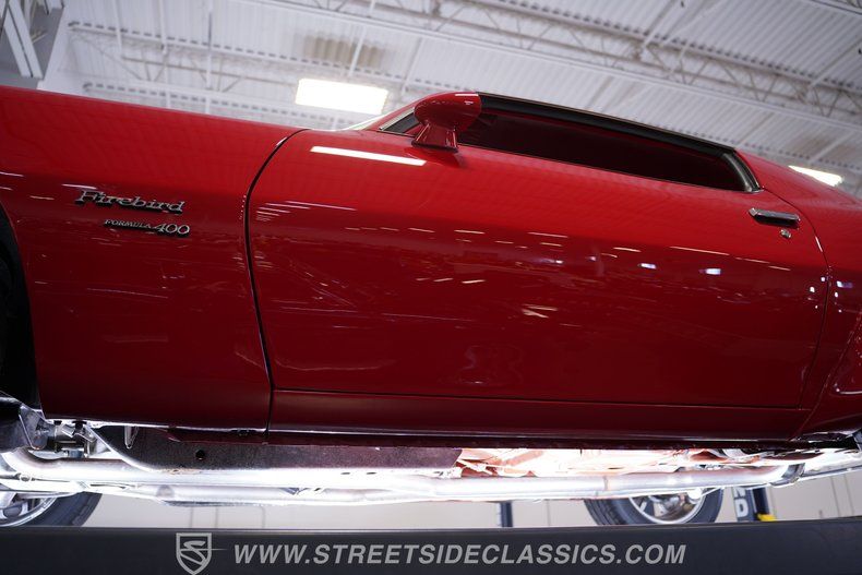This Pontiac classic is an absolute blast to drive. As you raise its distinctive hood, which features a fully functional Ram Air intake, you'll find a 400-cubic-inch V8 standing by in a very clean and presentable engine bay. Outfitted with a Holley Sniper electronic fuel injection system for markedly improved adjustability and all-weather dependability, it's running in peak form, pairing with a Muncie 4-speed manual transmission geared to take full advantage of its output. An MSD ignition system has also been added to maximize available spark. With Wilwood power disc brakes at all four corners that include slotted and drilled rotors for excellent heat dissipation, this Firebird stops as well as it accelerates, which is no mean feat. A glance below will reveal a structurally solid underside, which is always a welcome sight in a car from this era.