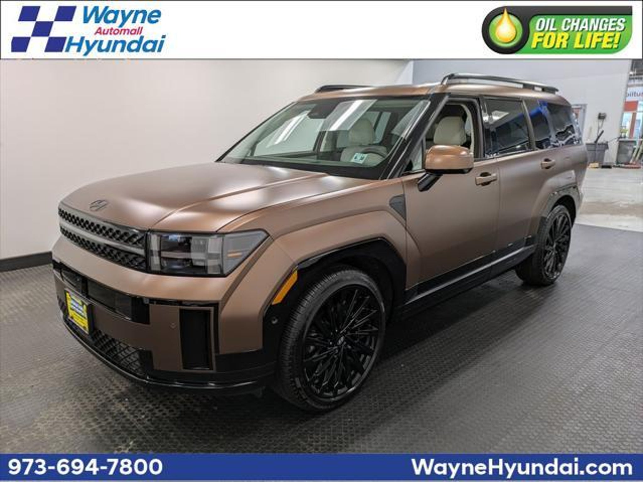 AWD, Forest Green/Beige w/Premium Nappa Leather Seat Trim. Odometer is 4986 miles below market average! ** OIL CHANGES FOR LIFE!! With purchase or lease of your New, Pre-Owned or Certified Pre-Owned Hyundai purchased or leased from Wayne Automall Hyundai; to be done with dealer recommended services, must be done at Wayne Automall Hyundai Service Center only. Not available on prior sales; not available on Diesels, SVTs, Performance or Commercial vehicles. ** Earthy Brass Matte 2025 Hyundai Santa Fe Calligraphy AWD Shiftronic 2.5L I4 Don't wait until it is too late! Call today to schedule an appointment. REST ASSURED every vehicle at Wayne Automall Hyundai has been hand selected by our Owner & Management. Each vehicle is put through a multi-point inspection by our factory certified technicians. After your future vehicle leaves our certified shop, it is fully detailed in our centralized recon shop and delivered just like new. With the Performance Auto Group - You CAN buy with confidence! We would love the opportunity to earn your business "“ ASK US ABOUT OUR OIL CHANGES FOR LIFE! Price(s) include(s) all costs to be paid by a consumer, except for licensing costs, registration fees and taxes.