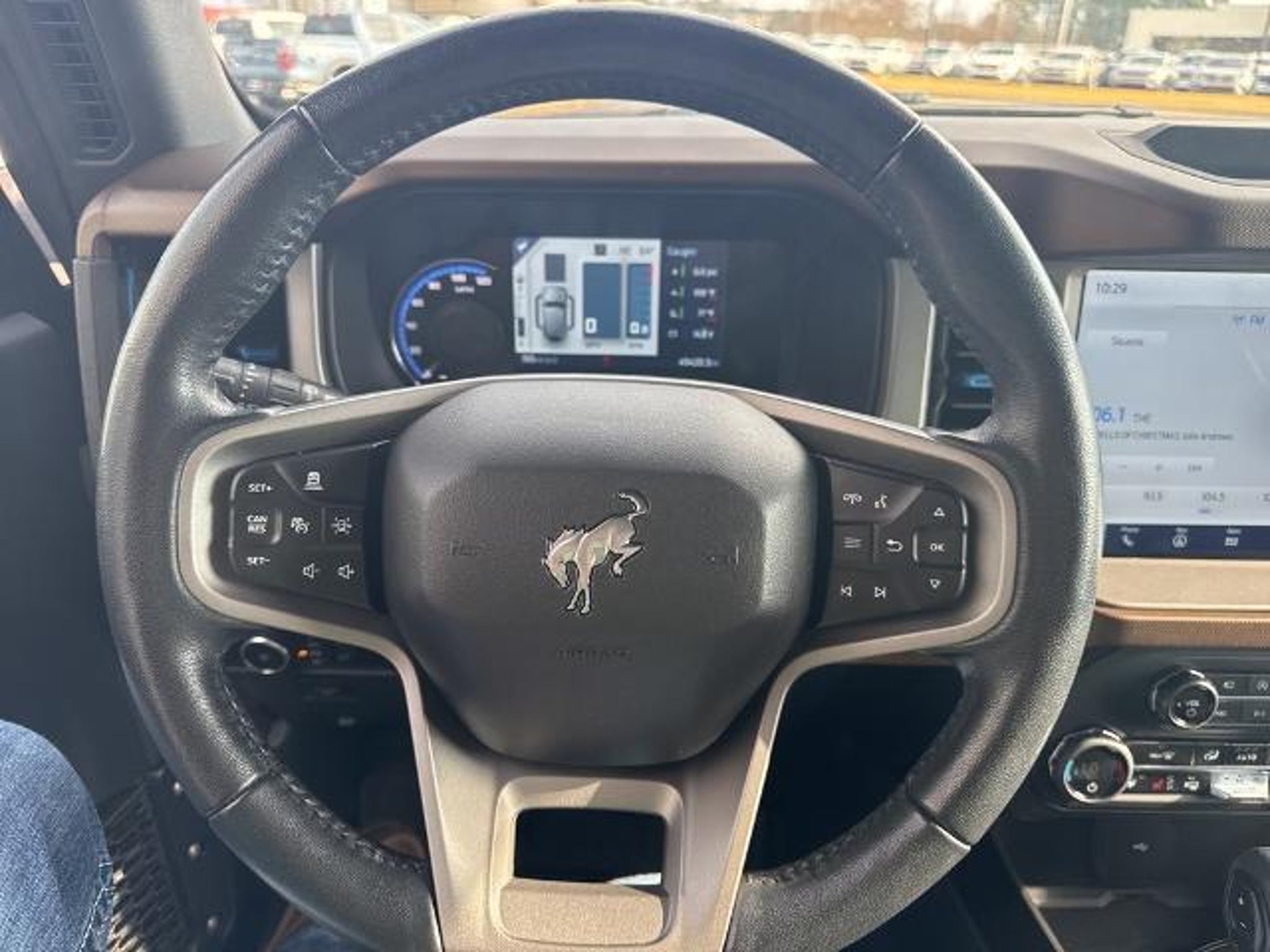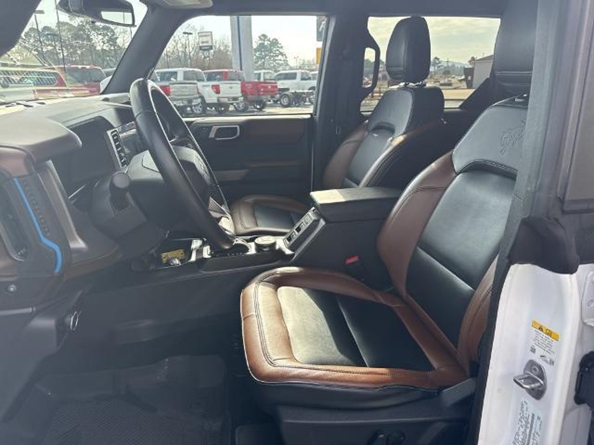 This 2023 Ford Bronco in Oxford White comes with the following features: 2.7L EcoBoost V6 10-Speed Automatic 4WD 4-Wheel Disc Brakes, 7 Speakers, ABS brakes, Air Conditioning, AM/FM radio: SiriusXM with 360L, AM/FM Stereo, Auto High-beam Headlights, Brake assist, Carbonized Gray Molded-In-Color Hard Top, Compass, Delay-off headlights, Driver door bin, Driver vanity mirror, Dual front impact airbags, Dual front side impact airbags, Electronic Stability Control, Emergency communication system: 911 Assist, Exterior Parking Camera Rear, Front & Rear Floor Liners, Front anti-roll bar, Front Bucket Seats, Front Center Armrest, Front reading lights, Front Row Top Panels Storage Bag, Front wheel independent suspension, Fully automatic headlights, Heated door mirrors, Illuminated entry, Integrated roll-over protection, Low tire pressure warning, Occupant sensing airbag, Outside temperature display, Overhead airbag, Overhead console, Panic alarm, Passenger door bin, Passenger vanity mirror, Power door mirrors, Power steering, Power windows, Radio data system, Remote keyless entry, Security system, SiriusXM Radio w/360L, Speed control, Split folding rear seat, Steering wheel mounted audio controls, SYNC 4, Tachometer, Telescoping steering wheel, Tilt steering wheel, Traction control, Trip computer, and Variably intermittent wipers. Recent Arrival! Clean CARFAX.