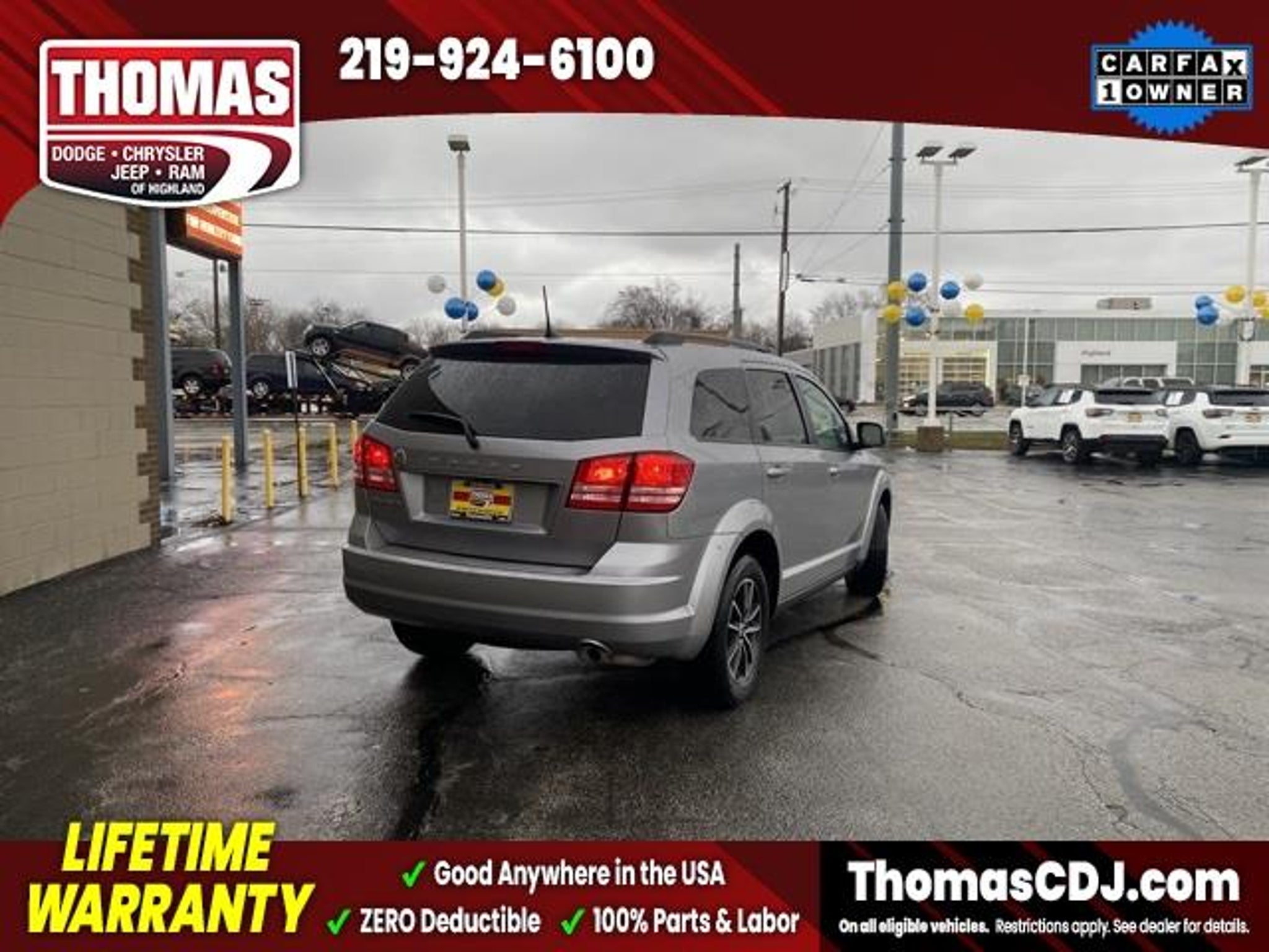 2018 Billet Clearcoat Dodge Journey One Owner, 3rd row seats: bench, 4.3 Touch Screen Display, 6 Speakers, Audio Jack Input for Mobile Devices, Black Headlamp Bezels, Blacktop Package, Connectivity Group, Front dual zone A/C, Fully automatic headlights, Gloss Black Grille, Heated door mirrors, Leather Wrapped Shift Knob, Leather Wrapped Steering Wheel, Outside temperature display, ParkView Rear Back-Up Camera, Power door mirrors, Radio: 4.3S, Reclining 3rd row seat, Remote USB Port, Roof rack: rails only, Speed control, Uconnect Voice Command w/Bluetooth, Wheels: 17 x 6.5 Aluminum w/Blacktop Package. LIFETIME WARRANTY FOREVER! On ALL eligible new & used vehicles - $0 Deductible Parts and Labor! - Valid Anywhere in the USA! - Can be Serviced at any Licensed Facility in the USA! - No Expiration Full Powertrain Coverage for Your Entire Ownership! * NO CATCH & NO COST TO YOU! * On All Eligible New and Used Vehicles * Only at ThomasDCJ.com.
