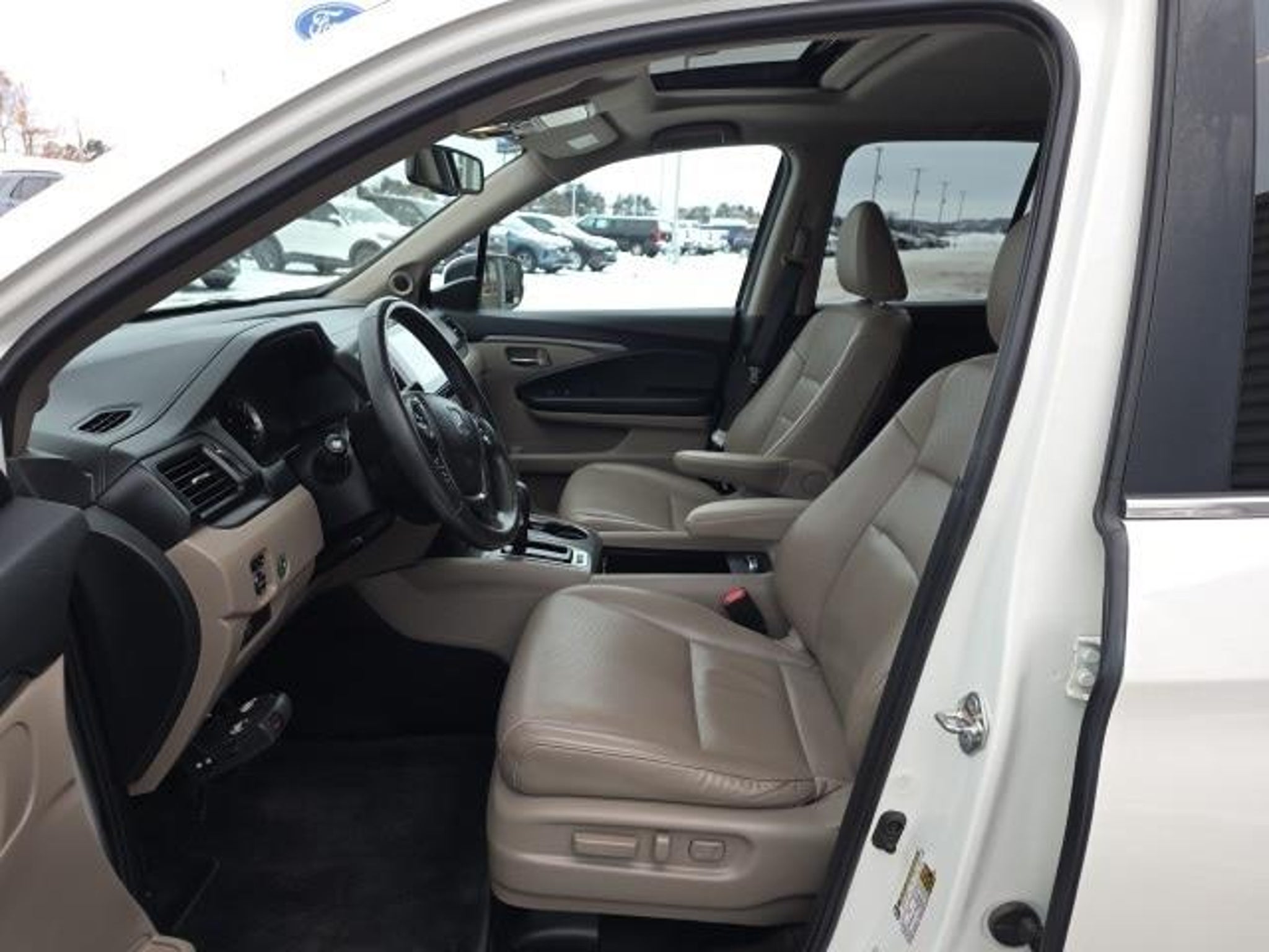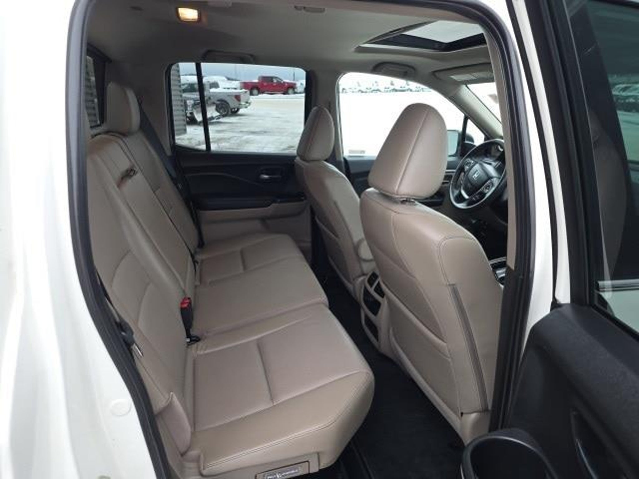 Osseo Ford is proud to offer this outstanding 2019 Honda Ridgeline RTL-T in White, beautifully equipped with Beige Leather, Honda Satellite-Linked Navigation System, Navigation system: Honda Satellite-Linked Navigation System, 4-Wheel Disc Brakes, 4.25 Axle Ratio, 7 Speakers, ABS brakes, Air Conditioning, Alloy wheels, AM/FM radio: SiriusXM, Apple CarPlay/Android Auto, Auto-dimming Rear-View mirror, Automatic temperature control, Bluetooth? Hands-Free Link, Brake assist, Bumpers: body-color, Compass, Delay-off headlights, Driver door bin, Driver vanity mirror, Driver's Seat Mounted Armrest, Dual front impact airbags, Dual front side impact airbags, Electronic Stability Control, Exterior Parking Camera Rear, Four wheel independent suspension, Front anti-roll bar, Front Bucket Seats, Front dual zone A/C, Front fog lights, Front reading lights, Fully automatic headlights, Garage door transmitter: HomeLink, Heated door mirrors, Heated Front Bucket Seats, Heated front seats, Illuminated entry, Leather Seat Trim, Low tire pressure warning, Occupant sensing airbag, Outside temperature display, Overhead airbag, Overhead console, Panic alarm, Passenger door bin, Passenger seat mounted armrest, Passenger vanity mirror, Power door mirrors, Power driver seat, Power moonroof, Power passenger seat, Power steering, Power windows, Radio data system, Radio: AM/FM/MP3 w/Navigation System, Rear air conditioning, Rear anti-roll bar, Rear reading lights, Rear seat center armrest, Rear step bumper, Rear window defroster, Remote keyless entry, Security system, SiriusXM Radio, Speed control, Speed-sensing steering, Split folding rear seat, Steering wheel mounted audio controls, Tachometer, Telescoping steering wheel, Tilt steering wheel, Traction control, Trip computer, Variably intermittent wipers, and Wheels: 18 Exclusive Machine-Finished Alloy! CLEAN AUTO CHECK, LOCAL TRADE, AWD / 4X4 / 4WD, Beige Leather, Honda Satellite-Linked Navigation System, Navigation system: Honda Satellite-Linked Navigation System. Recent Arrival! 2019 Honda Ridgeline RTL-T Experience the difference at Osseo Ford.