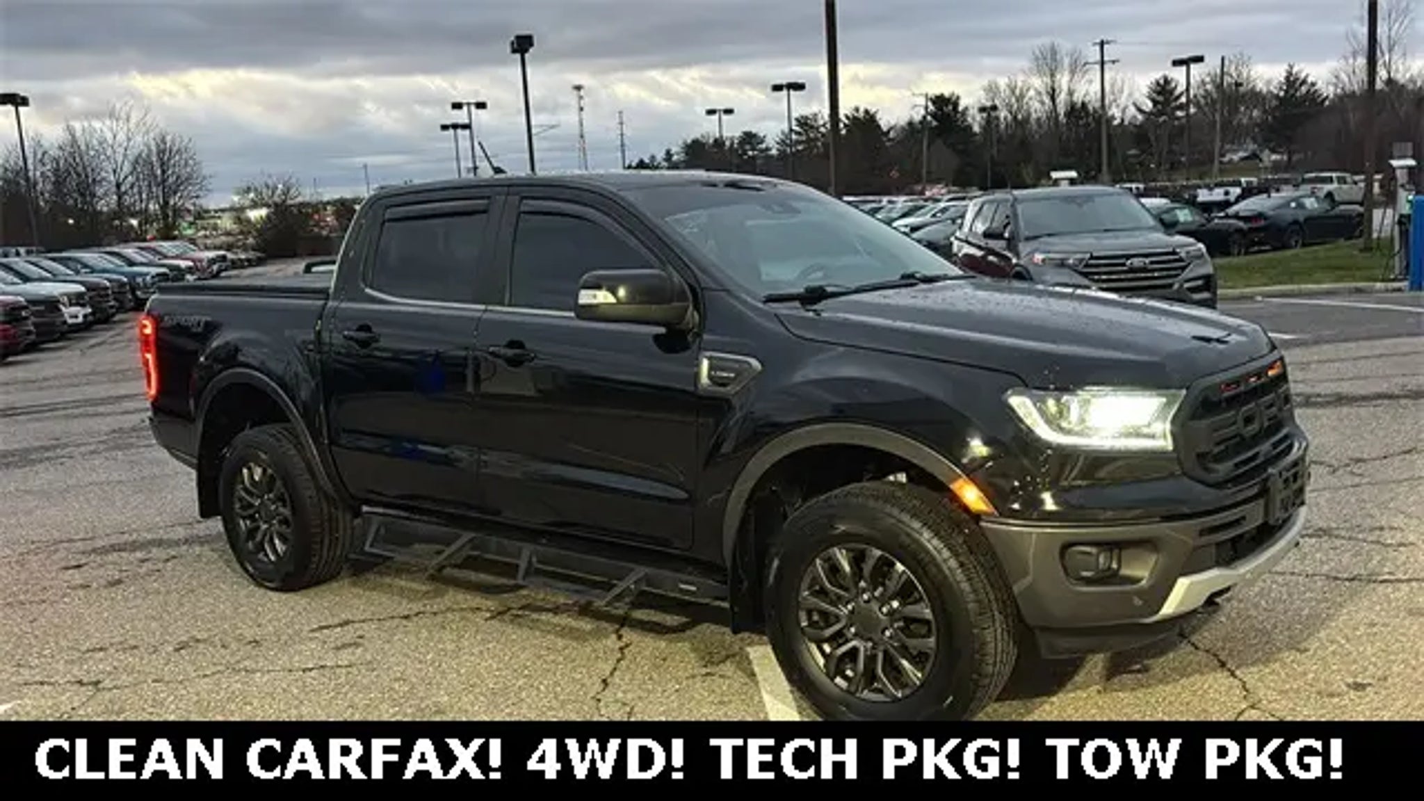 2019 Shadow Black Ford Ranger 4D Crew Cab Lariat EcoBoost 2.3L I4 GTDi DOHC Turbocharged VCT 4WD This Ford Ranger at Byers Ford has many features and is well equipped including, Collision Avoidance System, Collision Warning System, Leather Seats, Blind-Spot Monitors, Lane Keeping Assist, Touchscreen Controls, Backup Camera, Keyless Access with Push Button Start, Automatic Headlights, Apple CarPlay, Android Auto, Bluetooth Hands-Free, Voice Recognition, Wi-Fi Hotspot, Ford SYNC, Heated Mirrors, iPod/MP3 CONNECT, LOCAL TRADE, Tow Package, Memory Package, Multi Zone Climate Control, 4WD, ABS brakes, Adaptive Cruise Control, Class IV Trailer Hitch Receiver, Dual front impact airbags, Dual front side impact airbags, Electronic Stability Control, Electronic-Locking Rear Differential, Equipment Group 501A Mid, Exterior Parking Camera Rear, Front dual zone A/C, Front wheel independent suspension, Fully automatic headlights, Low tire pressure warning, Navigation, Radio: B&O Sound System by Bang & Olufsen, Rain-Sensing Wipers, Remote Start, SiriusXM Satellite Radio, SYNC 3, Technology Package, Telescoping steering wheel, Traction control, Trailer Tow Package, Tray Style Floor Liner, Windshield Wiper De-Icer. CARFAX One-Owner. Clean CARFAX. Byers Auto is family owned and operated and has been serving Central Ohio in the automotive industry since 1897. Stop by our dealership on Columbus Pike in Delaware within easy access of Columbus, Dublin, Lewis Center, Marysville, Powell and Westerville. We have a committed and knowledgeable staff that will help you with your automotive needs. LIVE CHAT 24/7 at www.byersford.com. Price does not include tax, title, and $387 document fees. **Online pricing may require Ford Motor Credit financing and other stipulations to be met.