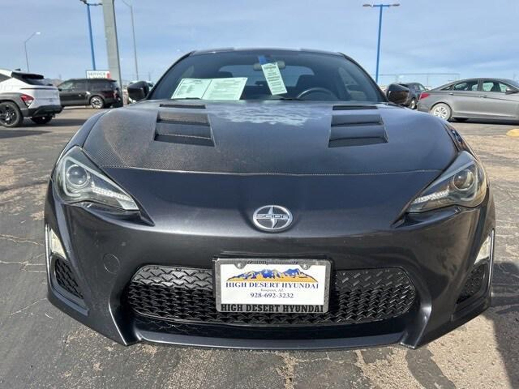 D-4S 2.0L H4 DOHC Gray 2016 Scion FR-S RWD At High Desert Hyundai, we pride ourselves on offering a stellar automotive experience for drivers in Kingman, Henderson NV, and Prescott AZ. Our dedicated team of sales advisors, service technicians, and financing experts are here to address all your needs with the utmost respect, care, and attention to detail. Whether you're interested in the sleek Hyundai Santa Fe Sport, the stylish Sonata, the efficient Elantra, the versatile Tucson, or the compact Accent, our knowledgeable team will guide you through all the features and benefits of each model. If you're in the market for a reliable used car, our team is ready to help you explore our extensive inventory of pre-owned vehicles. Each car undergoes a thorough inspection to ensure it meets our high standards of quality and reliability. Our auto finance team is here to provide personalized solutions that fit your individual needs. Whether you're looking to lease a new Hyundai or finance a pre-owned vehicle, we offer a range of options to make the process stress-free. Start with our online appraisal form and credit application to get a head start. Our commitment to excellence doesn't end with the sale. Our onsite auto service and repair department is staffed with skilled technicians who use cutting-edge tools and technologies to keep your vehicle running smoothly. For those who prefer to perform their own maintenance, we offer a vast collection of authentic Hyundai parts and accessories. High Desert Hyundai has all your automotive needs covered. Whether you're stopping by for a test drive or need an oil change, our team is ready to assist you. Visit us at 4180 N Stockton Hill Rd, Kingman, Arizona, or contact us today to learn more about our services and inventory. This 2016 Scion FR-S is equipped with the following options: 17 x 7 Alloy Wheels, 4-Wheel Disc Brakes, 8 Speakers, ABS brakes, Air Conditioning, Alloy wheels, AM/FM radio, Brake assist, Bumpers: body-color, Delay-off headlights, Driver door bin, Driver vanity mirror, Dual front impact airbags, Dual front side impact airbags, Electronic Stability Control, Exterior Parking Camera Rear, Fabric Upholstery, Four wheel independent suspension, Front anti-roll bar, Front Bucket Seats, Front reading lights, Fully automatic headlights, Illuminated entry, Leather Shift Knob, Low tire pressure warning, Occupant sensing airbag, Outside temperature display, Overhead airbag, Panic alarm, Passenger door bin, Passenger vanity mirror, Power door mirrors, Power steering, Power windows, Premium audio system: Pioneer, Radio data system, Radio: AM/FM/HD Audio System, Rear anti-roll bar, Rear window defroster, Remote keyless entry, Speed control, Tachometer, Telescoping steering wheel, Tilt steering wheel, Traction control, Trip computer, and Variably intermittent wipers. Reviews: * Fun to drive; outstanding steering; well-balanced chassis; good fuel efficiency; comfortable front seats. Source: Edmunds