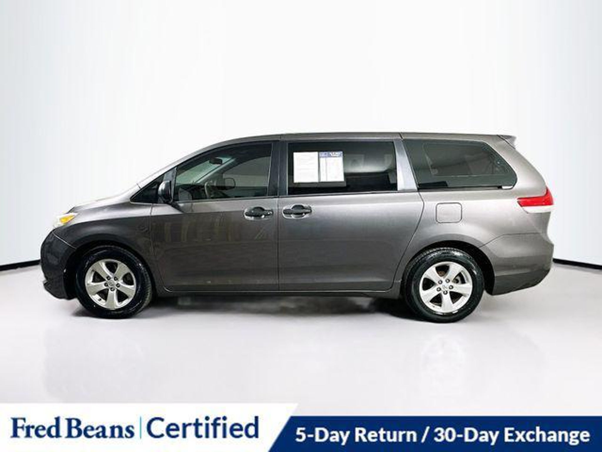 2013 Toyota Sienna L 7 Passenger L 3.5L V6 SMPI DOHC 6-Speed Automatic Electronic with Overdrive FWD 4D Passenger Van Gray Local Trade, Great Service History, AS-IS Vehicle, Free First Oil Change, Auto Rewards Program, Alloy wheels, Delay-off headlights, Driver's Seat Mounted Armrest, Fabric Seat Material, Front dual zone A/C, Illuminated entry, Power door mirrors, Remote keyless entry, Towing Package (3,500lbs). Odometer is 31375 miles below market average! For better peace of mind all our used vehicles have a 127-point inspection and come with a 5-day return, 30-day exchange (As-Is vehicles are excluded). Our exclusive Auto Rewards Program provides better value with $50 Service Gift Certificate, Free Pa State Safety inspections, discounts for local merchants and more. Plus, you can earn up to $2000 towards your next vehicle just by servicing with Fred Beans! As Fred Beans always says, our used cars are better because our reputation depends on it. Awards: * JD Power Dependability Study * 2013 IIHS Top Safety Pick * 2013 KBB.com 10 Best Used Family Cars Under $15,000 * 2013 KBB.com Best Resale Value Awards * 2013 KBB.com Brand Image Awards Reviews: * If good looks, ample storage space, comfortable amenities and all-wheel-drive are important to you in a van, the Toyota Sienna has a good chance of finding a place in your heart and driveway. Source: KBB.com * Smooth and powerful V6; available all-wheel drive; seven- or eight-passenger seating. Source: Edmunds Although every reasonable effort has been made to ensure the accuracy of the information contained on this site, absolute accuracy cannot be guaranteed. This site, and all information and materials appearing on it, are presented to the user as is without warranty of any kind, either express or implied. All vehicles are subject to prior sale. Price does not include applicable tax, title, license, processing and/or documentation fees. "¡Vehicles shown at different locations are not currently in our inventory (Not in Stock) but can be made available to you at our location within a reasonable date from the time of your request, not to exceed one week. Residency restrictions may apply.