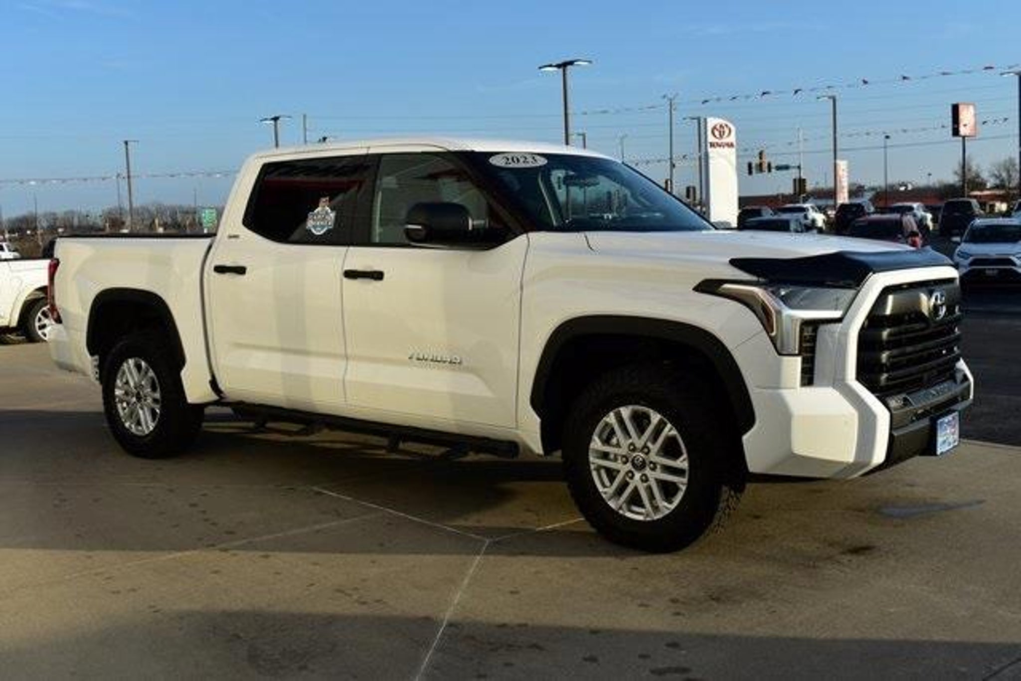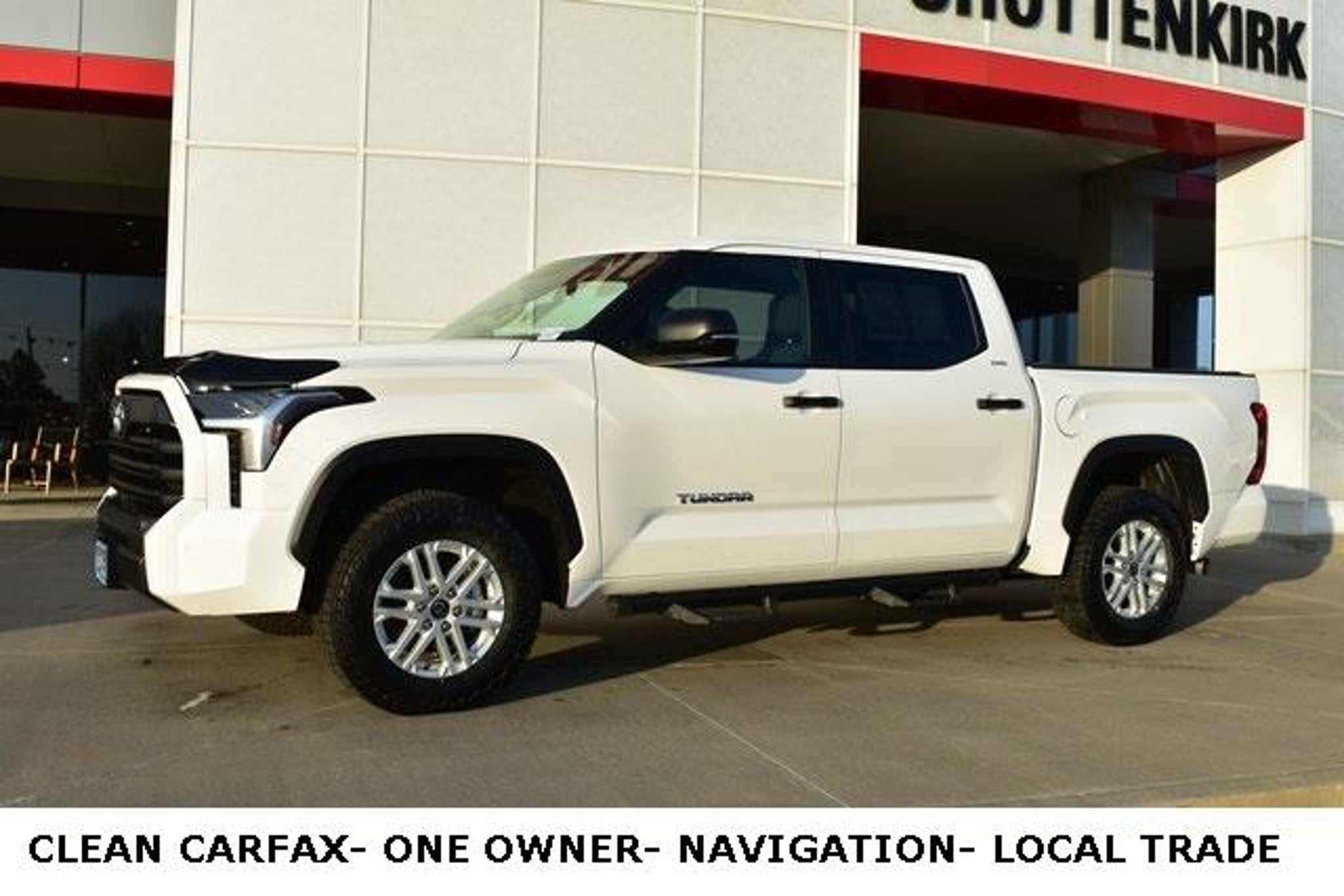 2023 Toyota Tundra White SR5 3.4L V6 10-Speed Automatic 4WD Fixed Running Boards Towing/Camper Pkg Clean Carfax One Owner Navigation Local Trade Backup Camera Tundra SR5 10-Speed Automatic 4WD White Boulder w/Fabric Seat Trim (FB) or SofTex Seat Trim 9 Speakers ABS brakes Air Conditioning Alloy wheels AM/FM radio: SiriusXM Automatic temperature control Bumpers: body-color Driver door bin Driver vanity mirror Exterior Parking Camera Rear Fabric Seat Trim (FB) Front Bucket Seats Front Center Armrest Front reading lights Fully automatic headlights Heated door mirrors Illuminated entry Low tire pressure warning Occupant sensing airbag Outside temperature display Overhead console Passenger door bin Passenger vanity mirror Power door mirrors Power steering Power windows Radio data system Rear step bumper Rear window defroster Remote keyless entry Safety Connect Speed control Split folding rear seat Steering wheel mounted audio controls Telescoping steering wheel Tilt steering wheel Traction control. Shottenkirk Toyota of Quincy Illinois has been serving the needs of Tri-State motorists for years. Offering top notch new and used Toyota sales service and parts in a friendly environment that puts a premium on service not prices! We're proud to be a primary destination for Toyota shoppers from Jacksonville Springfield Carthage Il. Hannibal Kirksville Troy St.Louis Columbia Mo. And the Mt.Pleasant Keokuk Farmington Fort Madison Iowa areas. Whether you visit us to buy a new Toyota like a Camry Corolla Rav4 Venza Highlander Sequoia Prius Tacoma Tundra Yaris 4Runner and Sienna or an used Toyota or to get service for your existing vehicle you'll get the same impeccable service. We have an outstanding reputation for quality and a no-hassle buying experience.You may also visit us at Shottenkirk Toyota.com.