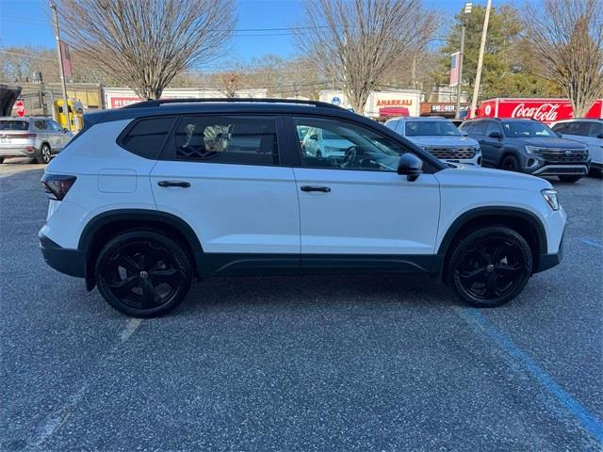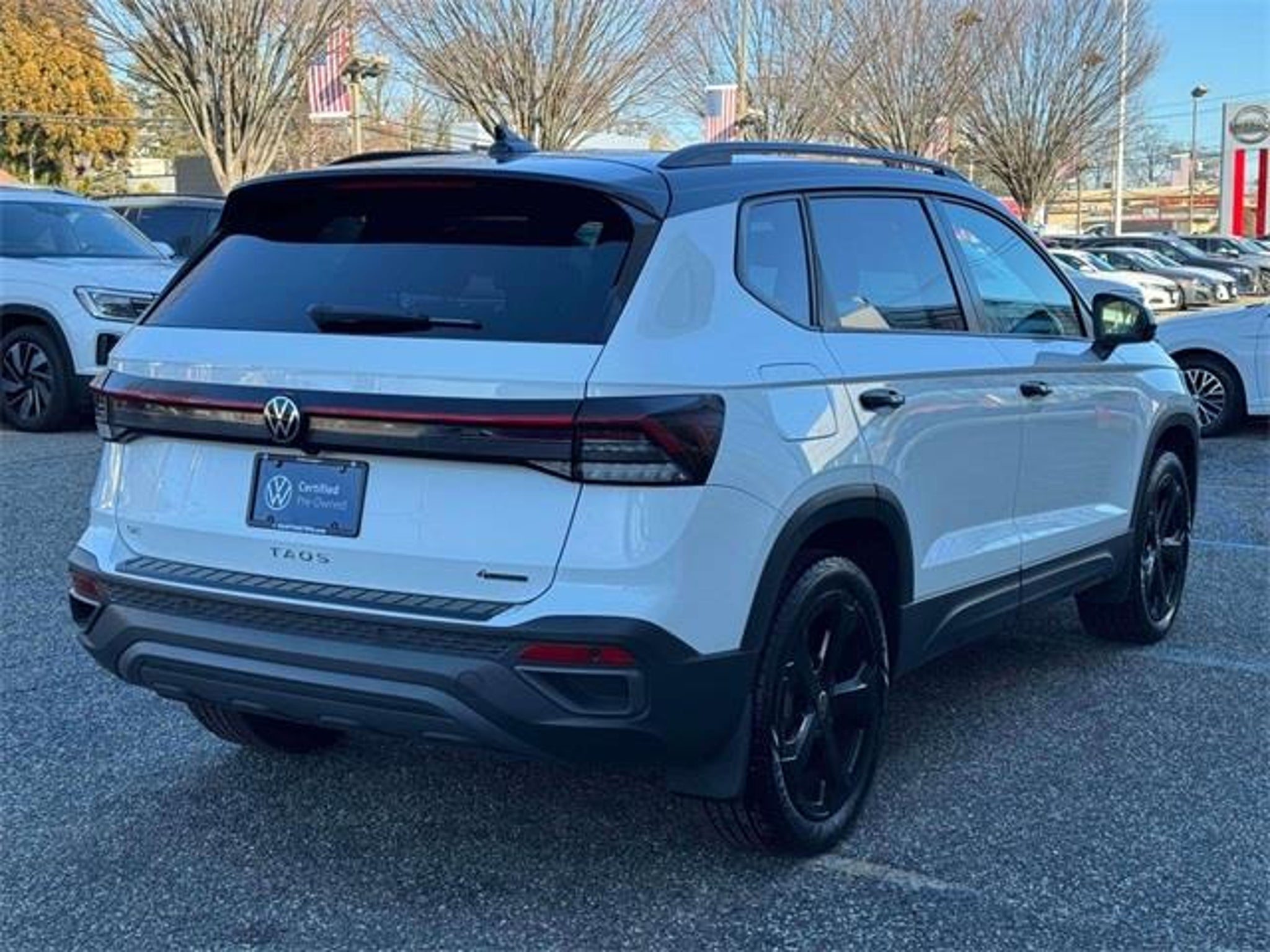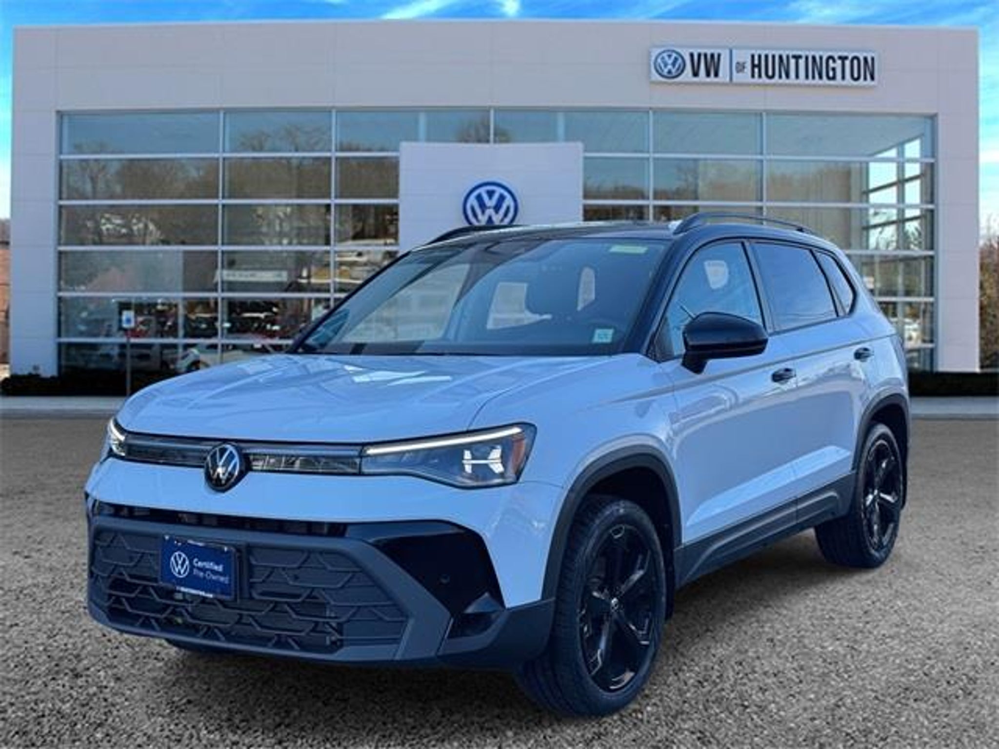 CARFAX One-Owner. Clean CARFAX. Certified. Pure White w/Deep Black Roof 2025 Volkswagen Taos 1.5T SE Black 8-Speed Automatic with Tiptronic 1.5L I4 Turbocharged DOHC 16V LEV3-SULEV30 174hp AWD 2 Sets of Keys / All Manuals, All Wheel Drive / AWD, Dealer Serviced, *VW CERTIFIED*, 4-Wheel Disc Brakes, 6 Speakers, ABS brakes, Active Blind Spot Monitor, AM/FM radio: SiriusXM with 360L, Auto-Dimming Rearview Mirror w/HomeLink Connect, Automatic temperature control, Black Bumperdillo Protection Plate for Rear Bumper, Brake assist, Dual front impact airbags, Dual front side impact airbags, Electronic Stability Control, Emergency communication system: VW Car-Net Safe & Secure 5-year, Extended Range Remote Key Fob, Exterior Parking Camera Rear, Four wheel independent suspension, Front anti-roll bar, Front dual zone A/C, Fully automatic headlights, Heated door mirrors, Heated front seats, Heated steering wheel, Low tire pressure warning, Occupant sensing airbag, Overhead airbag, Power driver seat, Power moonroof, Radio: MIB3 Composition Media AM/FM/HD, Rain sensing wipers, Rear anti-roll bar, Remote keyless entry, Speed-sensing steering, Steering wheel mounted audio controls, Traction control, Trip computer, Wheel Splash Guards (Set of 4), Wheels: 19 Black Painted Alloy. At VW Of Huntington we want you to know that all our vehicles are priced at a competitive value position to the market. We use an independent 3rd party software to research internet listings on all vehicles in the market so we can ensure that our prices are the most competitive out there. We do this simply so people choose us when they start searching for their next car. Our entire team is proud and honored to be the recipients of the Wolfsburg Crest Club Award 8 years in a row, as well as the Customer First Club Award for 4 years running. It is a testament to our commitment and dedication to providing the highest possible level of customer service, and an outstanding ownership experience to all of our customers throughout the Northeast Region.