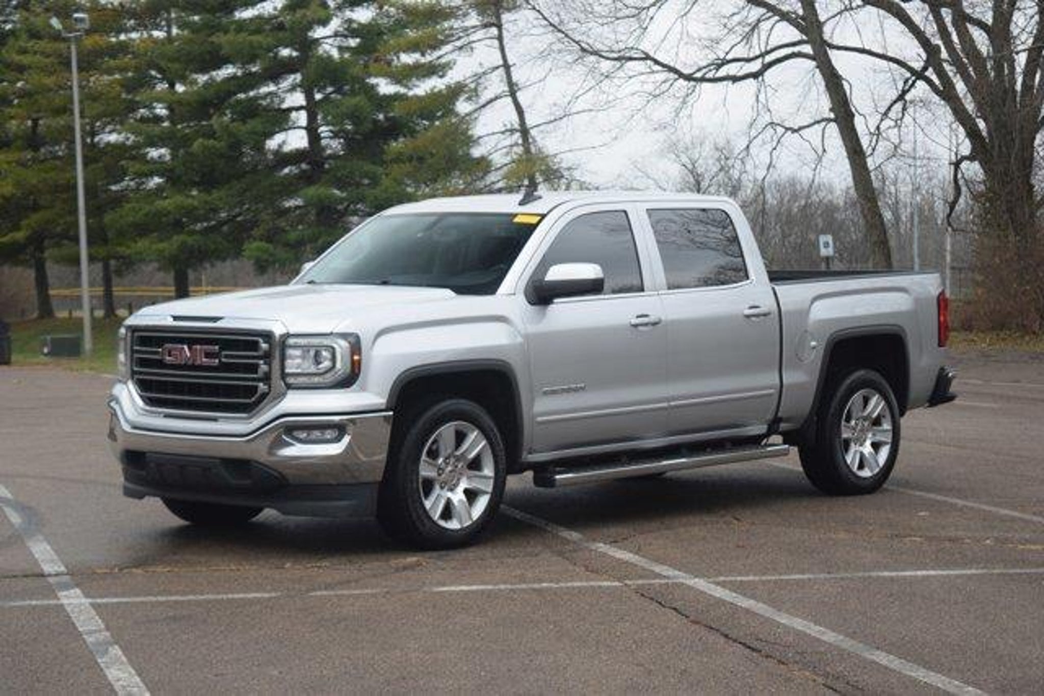 CARFAX One-Owner. Clean CARFAX. Priced below KBB Fair Purchase Price! 2018 GMC Sierra 1500 Quicksilver Metallic 4D Crew Cab SLE RWD EcoTec3 5.3L V8 THIS CAR ALSO INCLUDES THE FOLLOWING FEATURES AND OPTIONS:Preferred Equipment Group 3SA (150 Amp Alternator 4.2 Diagonal Color Display Driver Info Center Body Color Bodyside Moldings Body Color Door Handles Body Color Power Adjustable Heated Outside Mirrors Body-Color Mirror Caps Color-Keyed Carpeting Deep-Tinted Glass Driver & Front Passenger Illuminated Vanity Mirrors EZ Lift & Lower Tailgate GMC 4G LTE GMC Connected Access Leather Wrapped Steering Wheel w/Cruise Controls LED Cargo Box Lighting OnStar & GMC Connected Services Capable Power Windows w/Driver Express Up & Down Rear 60/40 Folding Bench Seat (Folds Up) Rear Wheelhouse Liners Remote Keyless Entry Remote Locking Tailgate Rubberized-Vinyl Front Floor Mats Rubberized-Vinyl Rear Floor Mats Single Slot CD/MP3 Player Single-Zone Air Conditioning and Steering Wheel Audio Controls) SLE Value Package (10-Way Power Drivers Seat Adjuster 110-Volt AC Power Outlet Dual-Zone Automatic Climate Control Electric Rear-Window Defogger Remote Vehicle Starter System Theft Deterrent System (Unauthorized Entry) Thin Profile LED Fog Lamps and Universal Home Remote) Trailering Equipment (Heavy-Duty Rear Locking Differential) 3.42 Rear Axle Ratio 4-Wheel Disc Brakes 6 Speakers 6-Speaker Audio System 6 Rectangular Chromed Tubular Assist Steps ABS brakes Air Conditioning Alloy wheels AM/FM radio: SiriusXM Auxiliary External Transmission Oil Cooler Bodyside moldings Brake assist Bumpers: chrome CD player Cloth Seat Trim Compass Delay-off headlights Driver door bin Driver vanity mirror Dual front impact airbags Dual front side impact airbags Electronic Stability Control Exterior Parking Camera Rear Front & Rear All-Weather Floor Mats Front anti-roll bar Front Center Armrest w/Storage Front reading lights Front wheel independent suspension Fully automatic headlights HD Radio Heated door mirrors Heavy Duty Suspension High-Intensity Discharge Headlights Illuminated entry Integrated Trailer Brake Controller Low tire pressure warning Manual Tilt/Telescoping Steering Column Occupant sensing airbag Outside temperature display Overhead airbag Overhead console Panic alarm Passenger door bin Passenger vanity mirror Power door mirrors Power steering Power windows Premium audio system: GMC Infotainment System Radio data system Radio: AM/FM/GMC Infotainment System Rear reading lights Rear seat center armrest Rear step bumper Remote keyless entry SiriusXM Satellite Radio Speed control Speed-sensing steering Split folding rear seat Steering wheel mounted audio controls Tachometer Tilt steering wheel Traction control Trip computer Variably intermittent wipers Voltmeter Wheels: 17 x 8 Bright Machined Aluminum and Wheels: 20 x 9 Bright Machined Aluminum. We carry all makes and models as well as New and Pre-Owned Vehicles with Automatic and Manual Transmission Hybrid vehicles with 3rd Row Seats Backup Camera Bluetooth Hands-Free Cruise Control DVD Player Heated Seats Cooled Seats Heated Steering Wheel Blind Spot Warning Lane Departure Warning Keyless Entry Leather Seats Multi-zone Climate Control Navigation Portable Audio Connection Power Locks Power Windows Remote Start Push Button Start Premium Audio Technology Package Premium Wheels Security System Steering Wheel Controls Sunroof Moonroof Panoramic Moon Roof Xenon Headlamps Running Boards Power Running Boards Power Tow Package and Trailer Hitch ...... contact sales staff to verify equipment.