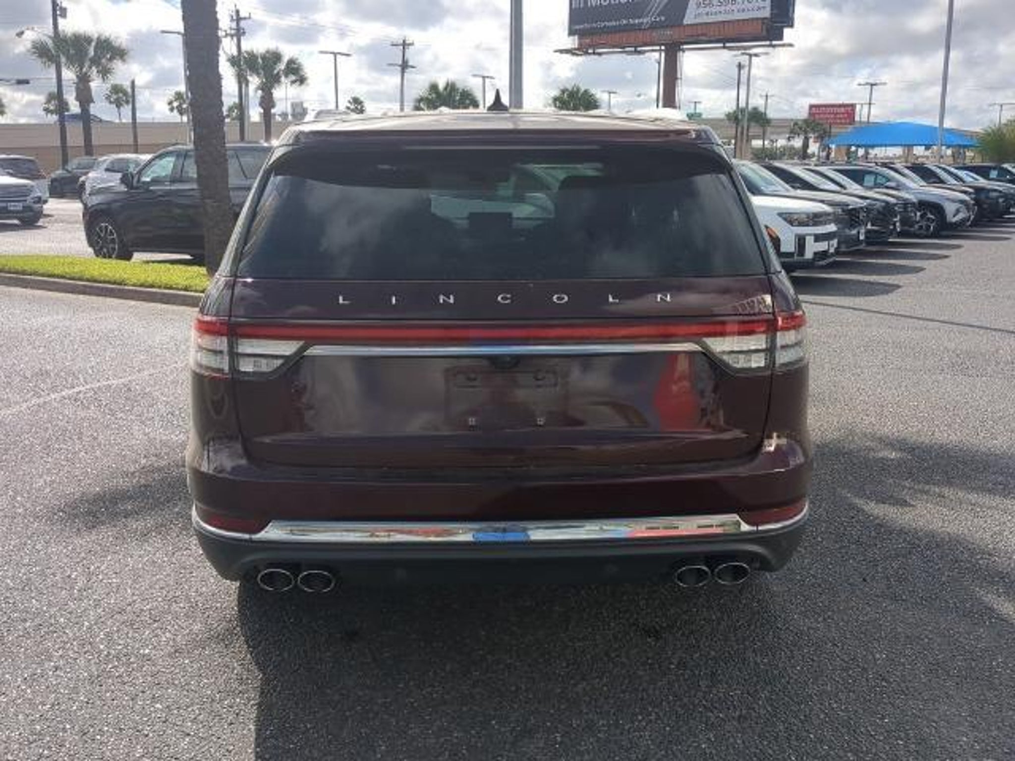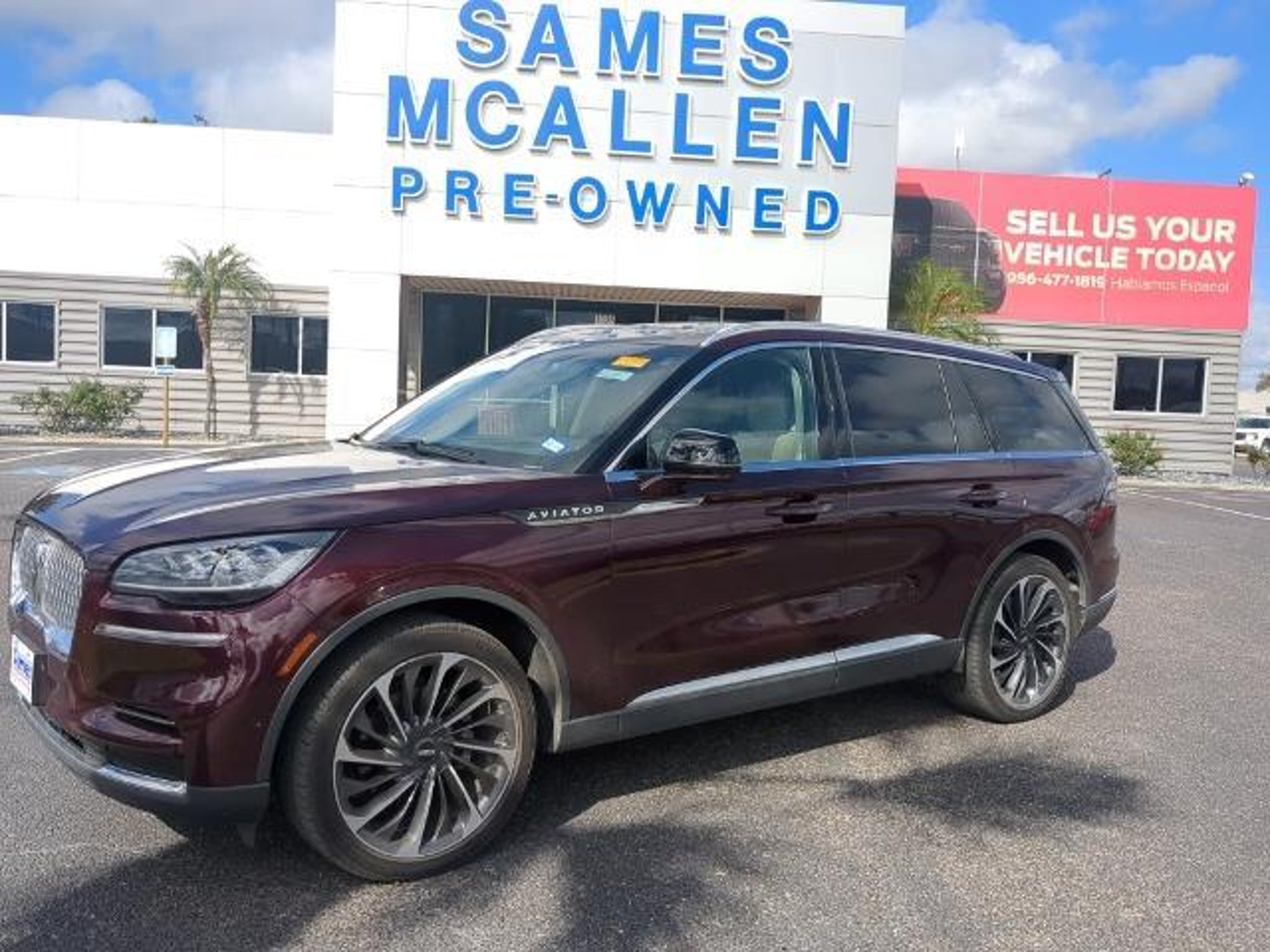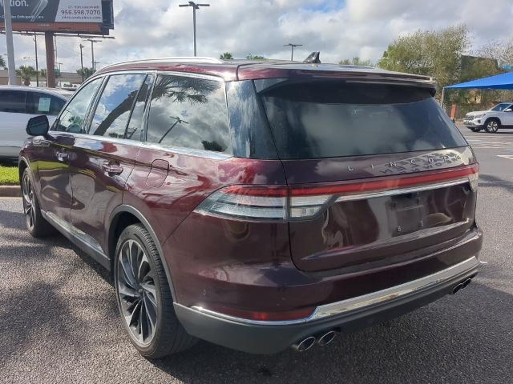 This 2022 Lincoln Aviator Reserve in Burgundy Velvet Metallic Tinted Clearcoat comes with the following features: 3.0L V6 10-Speed Automatic RWD Elements Package Plus (Auto Air Refresh, Auto Heated/Ventilated Driver & Passenger Seats, Heated Steering Wheel, Heated VisioBlade Wipers, and Heated/Ventilated 2nd Row Outboard Seats), Equipment Group 201A (Head-Up Display and Phone As A Key), Lincoln Co-Pilot360 1.5 Plus (Active Park Assist 2.0, Evasive Steering Assist, Intelligent Adaptive Cruise Control, and Reverse Brake Assist), Luxury Package (30-Way Perfect Position Seats w/Active Motion, Radio: Revel Ultima 3D Audio System w/28 Speakers, and Rear Door Sunshades), Sames Certified Certified, 14 Speakers, 3.58 Axle Ratio, 3rd row seats: split-bench, 4-Wheel Disc Brakes, ABS brakes, Air Conditioning, Alloy wheels, AM/FM radio: SiriusXM, Audio memory, Auto High-beam Headlights, Auto-dimming door mirrors, Auto-dimming Rear-View mirror, Automatic temperature control, Brake assist, Bumpers: body-color, Compass, Delay-off headlights, Driver door bin, Driver vanity mirror, Dual front impact airbags, Dual front side impact airbags, Electronic Stability Control, Emergency communication system, Four wheel independent suspension, Front anti-roll bar, Front Bucket Seats, Front Center Armrest, Front dual zone A/C, Front fog lights, Front reading lights, Fully automatic headlights, Garage door transmitter, Heated door mirrors, Heated front seats, HVAC memory, Illuminated entry, Knee airbag, Leather steering wheel, Low tire pressure warning, Memory seat, Navigation System, Occupant sensing airbag, Outside temperature display, Overhead airbag, Overhead console, Panic alarm, Passenger door bin, Passenger vanity mirror, Power door mirrors, Power driver seat, Power Liftgate, Power moonroof: Panoramic Vista Roof, Power passenger seat, Power steering, Power windows, Premium Lthr Heated/Ventilated Fnt Captain's Chairs, Radio data system, Radio: Revel AM/FM Audio System w/14 Speakers, Rain sensing wipers, Rear air conditioning, Rear anti-roll bar, Rear audio controls, Rear dual zone A/C, Rear reading lights, Rear window defroster, Rear window wiper, Remote keyless entry, Security system, SiriusXM Radio, Speed control, Speed-Sensitive Wipers, Split folding rear seat, Spoiler, Steering wheel memory, Steering wheel mounted A/C controls, Steering wheel mounted audio controls, SYNC 3 Communication & Entertainment System, Tachometer, Telescoping steering wheel, Tilt steering wheel, Traction control, Trip computer, Turn signal indicator