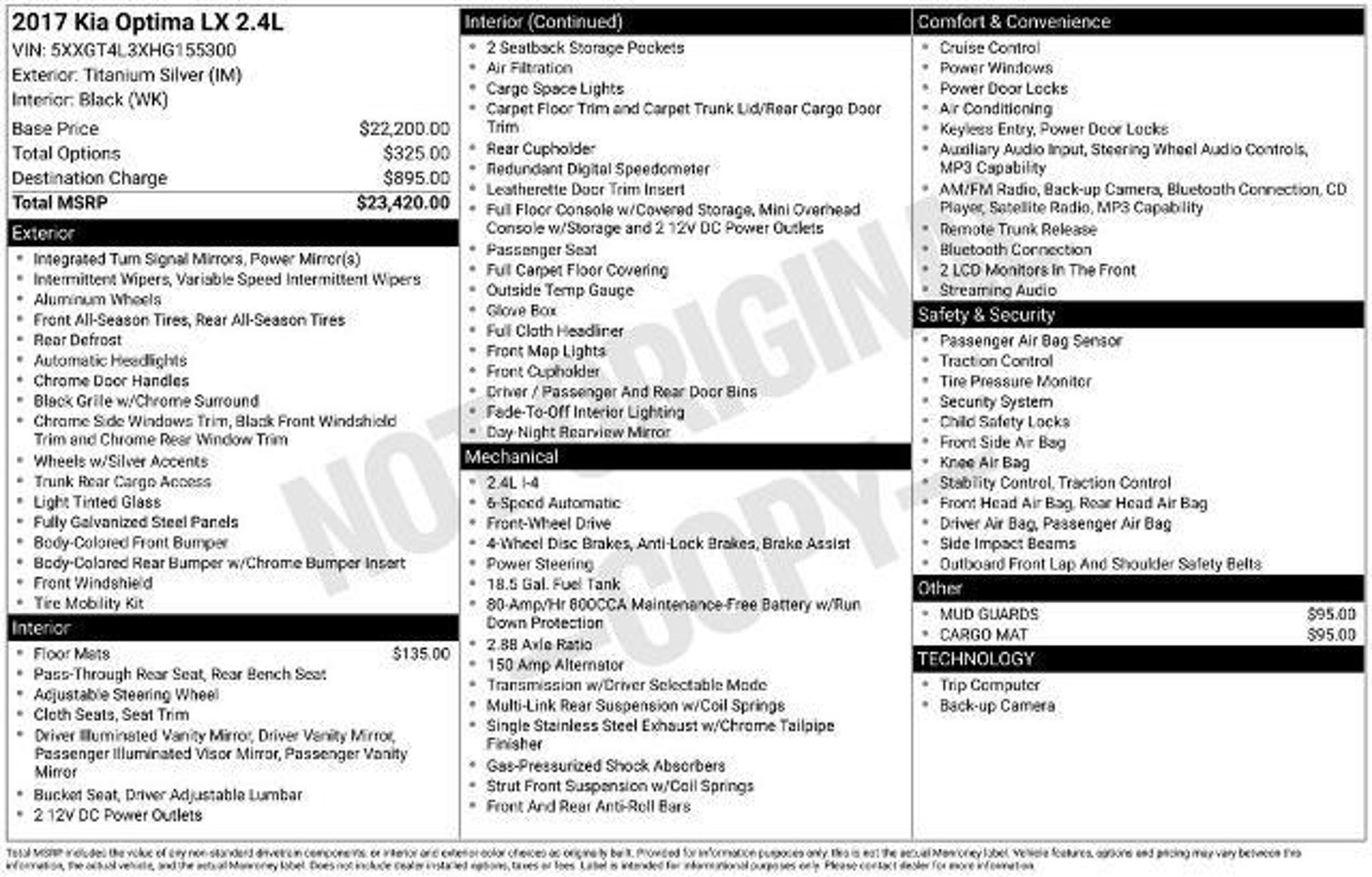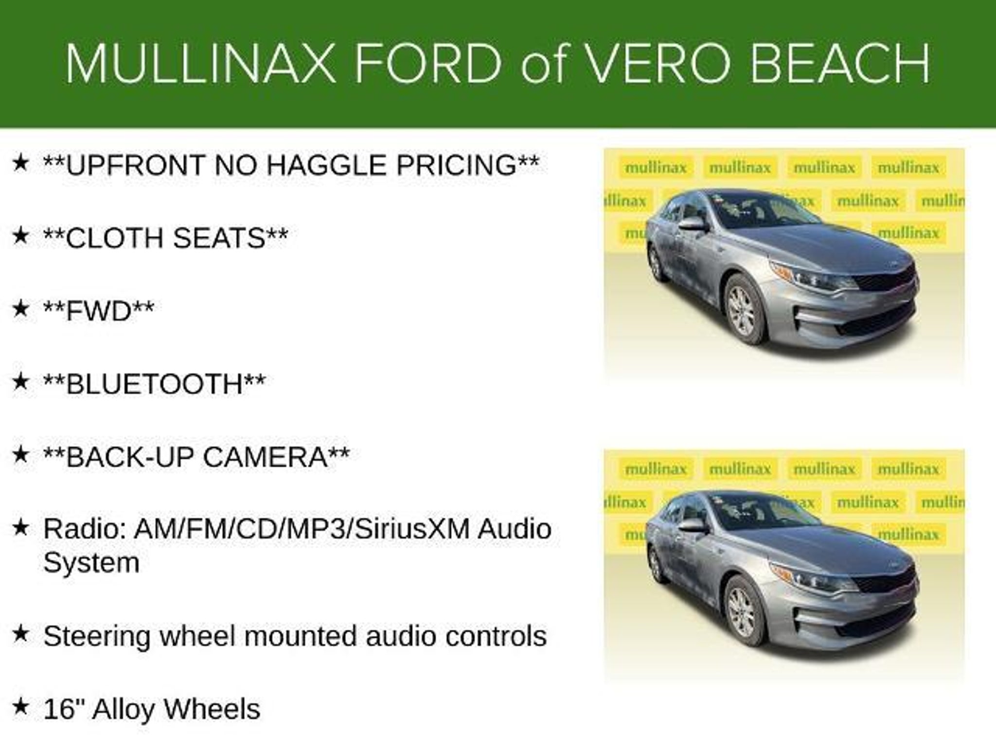 **UPFRONT NO HAGGLE PRICING**, **CLOTH SEATS**, **FWD**, **BLUETOOTH**, **BACK-UP CAMERA**, 16 Alloy Wheels, Radio: AM/FM/CD/MP3/SiriusXM Audio System, Steering wheel mounted audio controls. FWD 2.4L I4 DGI DOHC Mullinax Bronze vehicles are sold AS IS, all repairs are the responsibility of the customer. You will get the reassurance of a 5 DAY/300-MILE RETURN POLICY, if you don't like it, bring it back! Mullinax has 4,000 vehicles to choose from! ALL VEHICLES ARE GUARANTEED 1 KEY and MAY NOT HAVE FLOORMATS UNLESS CPO or NEW. **WHY MULLINAX: UpFront Discounted Pricing SINCE 1970; No Dealer Fee; Hassle/Haggle FREE; âWE PRICE OUR CARS, NOT OUR CUSTOMER!â