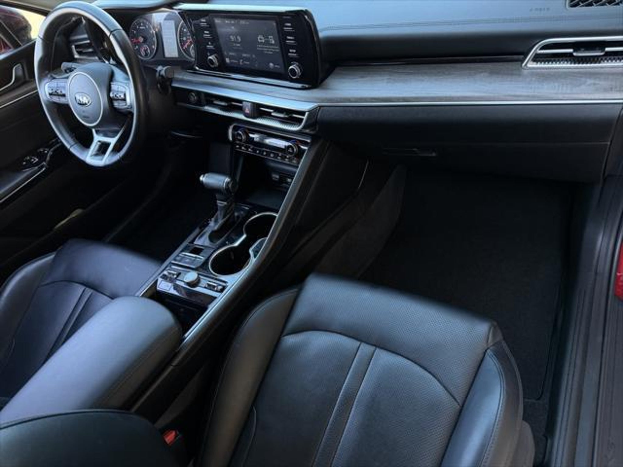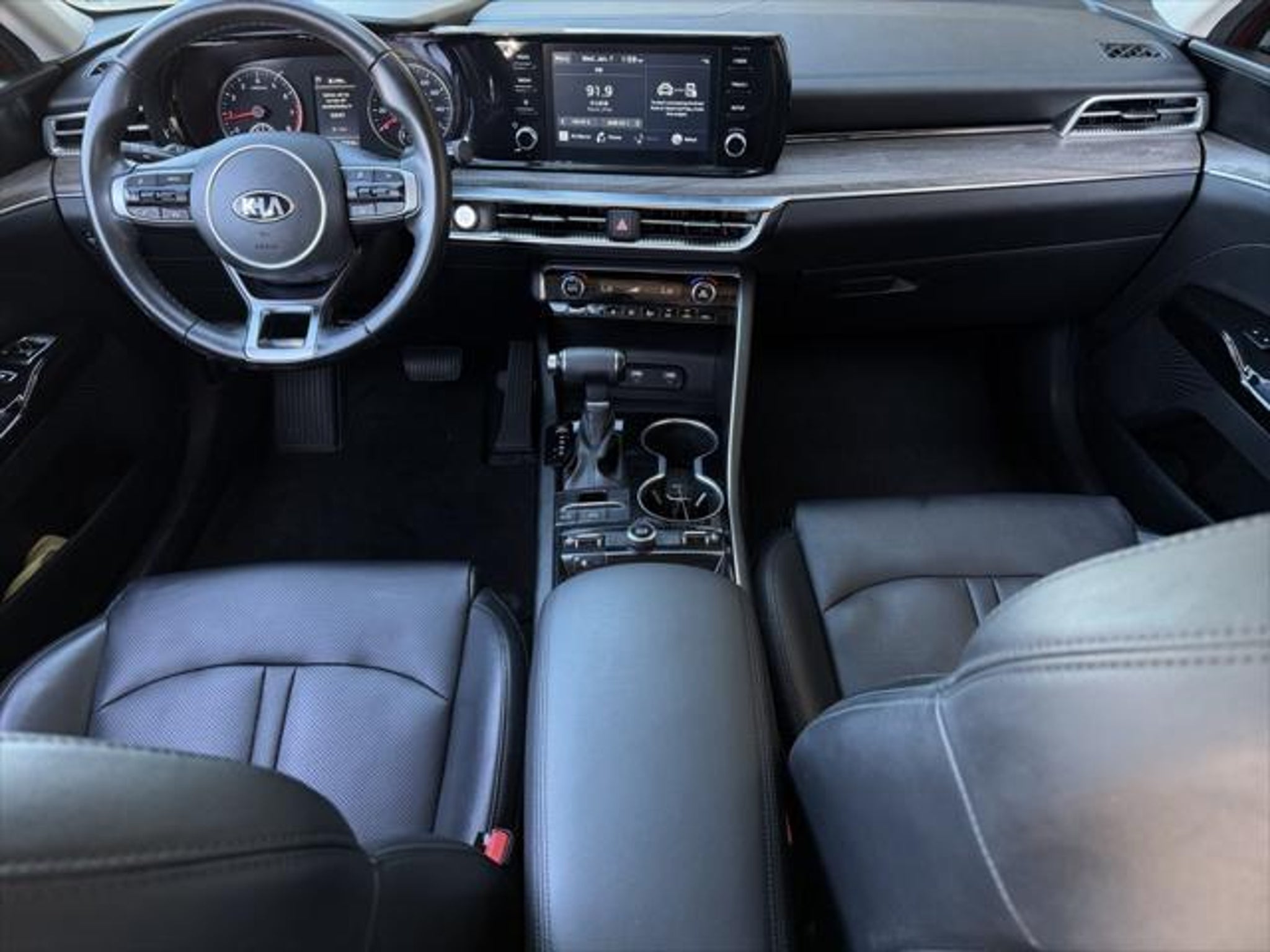 Priced below KBB Fair Purchase Price! Passion Red 2021 Kia K5 EX FWD 8-Speed Automatic 1.6L I4 DGI Well Equipped with: Paint Protection Package, 4-Wheel Disc Brakes, 6 Speakers, ABS brakes, Air Conditioning, Alloy wheels, AM/FM radio: SiriusXM, Apple CarPlay & Android Auto, Auto High-beam Headlights, Automatic temperature control, Brake assist, Bumpers: body-color, Cargo Mat, Carpeted Floor Mats, Delay-off headlights, Driver door bin, Driver vanity mirror, Dual front impact airbags, Dual front side impact airbags, Electronic Stability Control, Emergency communication system, Four wheel independent suspension, Front anti-roll bar, Front Bucket Seats, Front Center Armrest, Front dual zone A/C, Front reading lights, Fully automatic headlights, Heated & Ventilated Front Bucket Seats, Heated door mirrors, Heated front seats, Illuminated entry, Knee airbag, Leatherette Seat Trim, Low tire pressure warning, Occupant sensing airbag, Outside temperature display, Overhead airbag, Overhead console, Panic alarm, Passenger door bin, Passenger vanity mirror, Power door mirrors, Power driver seat, Power moonroof, Power steering, Power windows, Radio data system, Radio: AM/FM/MP3/SiriusXM Audio System, Rear anti-roll bar, Rear reading lights, Rear seat center armrest, Rear side impact airbag, Rear window defroster, Remote keyless entry, Security system, Smart Key w/ Push Button and Remote Start, Speed control, Speed-sensing steering, Split folding rear seat, Steering wheel mounted audio controls, Tachometer, Telescoping steering wheel, Tilt steering wheel, Traction control, Trip computer, Variably intermittent wipers, Ventilated front seats, and Wheels: 7.5J x 18 Gray Machined Finish Alloy. CARFAX One-Owner. Odometer is 9039 miles below market average! Awards: * JD Power Automotive Performance, Execution and Layout (APEAL) Study This vehicle is available to be sold as certified or non certified and that decision is your to make. The price above reflects all service work but doesn't include the cost for certification which varies by model.