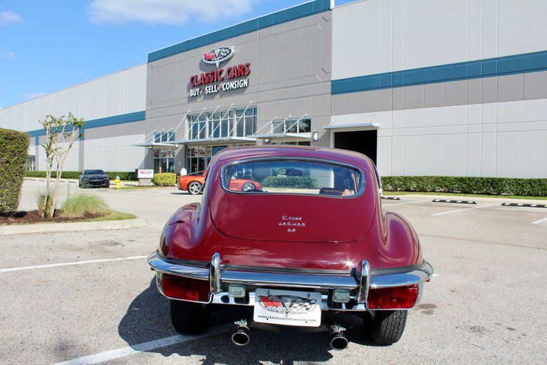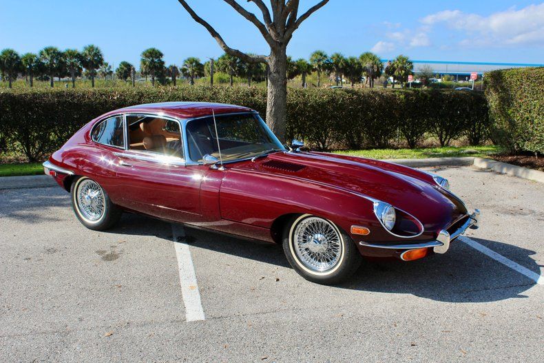 Finished in a rich maroon exterior over a tan leather interior, this XKE presents beautifully and retains the refined elegance Jaguar is known for. Knock-off wire wheels and a wood-rimmed steering wheel add period-correct authenticity, while the Series II design elements-such as the larger grille and open headlight buckets-give the car its unmistakable presence.