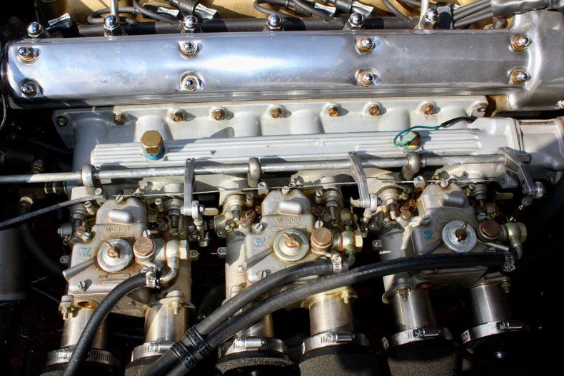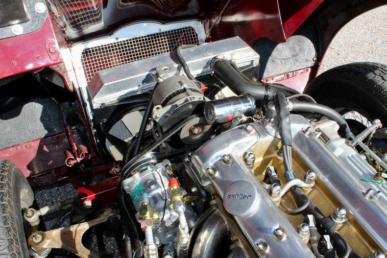 Powering this Jaguar is the renowned 4.2-liter inline-six engine (257ci) featuring dual overhead camshafts and rated at 246 horsepower. The engine has been upgraded with Weber carburetors, providing improved throttle response and enhanced performance, and is paired with an upgraded 5-speed manual transmission, offering a more engaging and relaxed driving experience compared to the original gearbox. An oversized aluminum radiator helps ensure dependable cooling during extended drives.