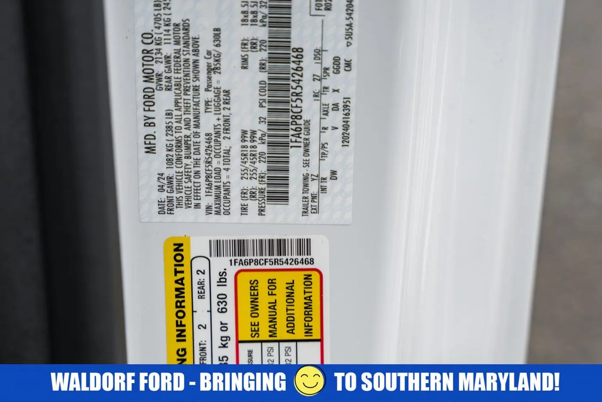 2024 Ford Mustang GT CARFAX One-Owner. Oxford WhiteOpen your door to the world of adventures with the sleek Oxford White 2024 Ford Mustang. The Manual 5.0L V8 Ti-VCT is built for the long haul, and packed with features such as, . If you think the pictures look pretty just wait until you see it in your driveway! This Mustang is big enough to fit everything you need for your day, plus whatever else life throws at you.Waldorf Ford in Waldorf, MD has the DC Metro Areas best value Pre Owned Used Cars, SUV's and Trucks! Call us at (240) 427-1373 or email us now and lock in the special E-Price on your next vehicle! Waldorf Ford has been a leading provider of great deals and phenomenal prices for customers in the DC Metro Area for over 25 years. Our Waldorf Ford Dealer specializes in new and pre-owned Ford vehicles, Ford Motor Credit Finance, Ford Service, and Ford parts. Our knowledgeable Ford Sales and Ford Service staff has been trained and certified by Ford to provide amazing customer service. Since Waldorf Ford has been selling and servicing Maryland, Virginia and DC for such a long time, our experience is second to none! Ever since 1995! Just check out our reviews online! Waldorf Ford offers Video Walkaround, Test Drive, Online Paperwork, Delivery and many more services for our customers. Waldorf Ford proudly serves the Washington DC Metro Area, Fairfax, Alexandria, Falls Church, Bethesda, Rockville, Centreville, Manassas, Haymarket, Gainesville, Vienna, Suitland, La Plata, Leonardtown, Prince Frederick, Lexington Park, Upper Marlboro. ALL of Charles County, Calvert County and St. Marys County.