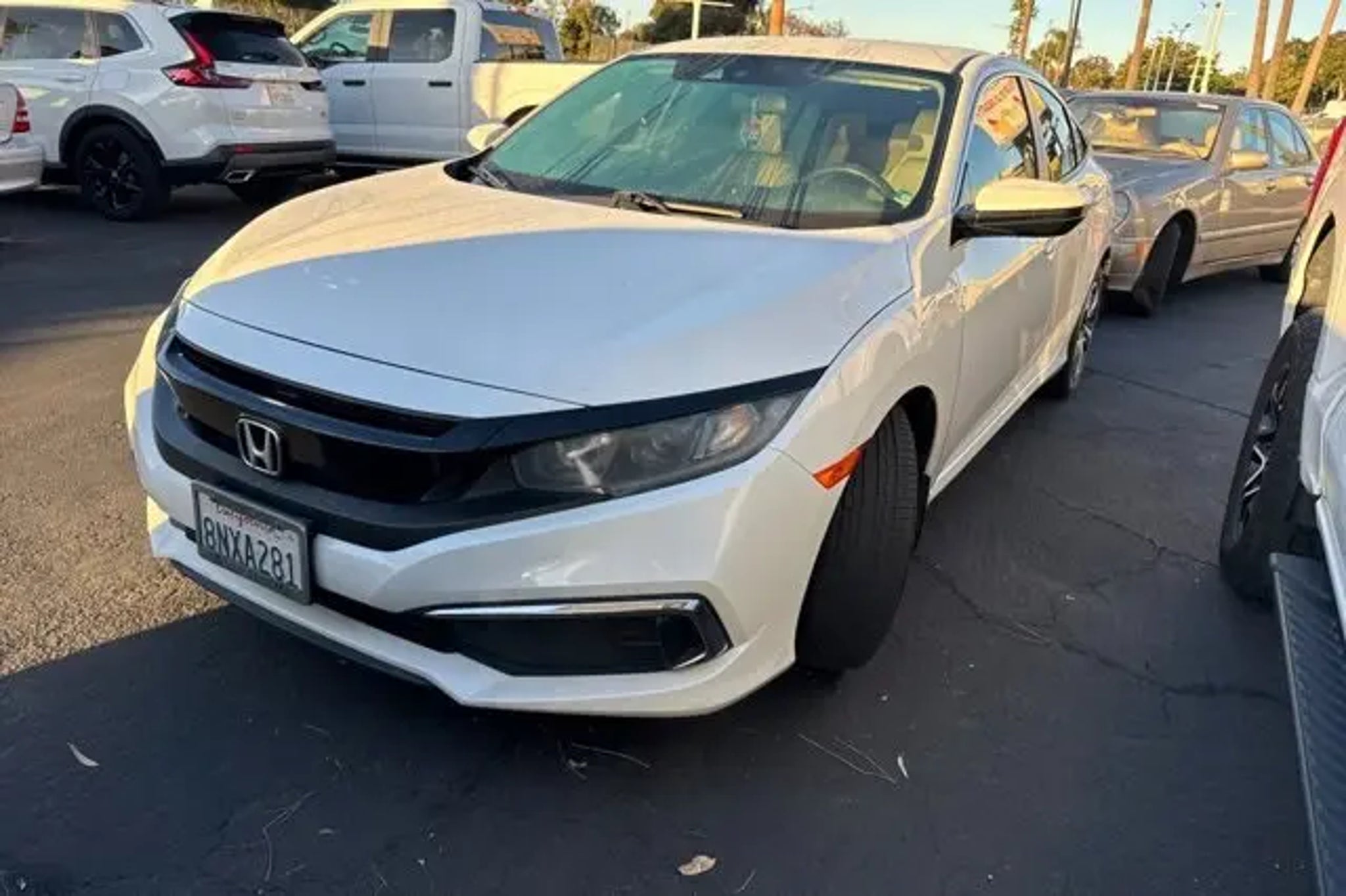 CLEAN CARFAX ONE OWNER, NON-SMOKER, WILL NOT LAST, 3RD PARTY INSPECTION, 16 Wheels w/Full Covers, Brake assist, Electronic Stability Control, Exterior Parking Camera Rear, Forward collision: Collision Mitigation Braking System (CMBS) FCW mitigation, Lane departure: Lane Keeping Assist System (LKAS) active, Radio: 160-Watt AM/FM Audio System, 4 Speakers, 4-Wheel Disc Brakes, ABS brakes, Air Conditioning, AM/FM radio, Auto High-beam Headlights, Automatic temperature control, Bumpers: body-color, Cloth Seat Trim, Delay-off headlights, Driver door bin, Driver vanity mirror, Dual front impact airbags, Dual front side impact airbags, Four wheel independent suspension, Front anti-roll bar, Front Bucket Seats, Front Center Armrest, Front reading lights, Fully automatic headlights, Illuminated entry, Low tire pressure warning, Occupant sensing airbag, Outside temperature display, Overhead airbag, Panic alarm, Passenger door bin, Passenger vanity mirror, Power door mirrors, Power steering, Power windows, Radio data system, Rear anti-roll bar, Rear window defroster, Remote keyless entry, Security system, Speed control, Speed-sensing steering, Steering wheel mounted audio controls, Tachometer, Telescoping steering wheel, Tilt steering wheel, Traction control, Trip computer, 16 Wheels w/Full Covers, Brake assist, Electronic Stability Control, Exterior Parking Camera Rear, Forward collision: Collision Mitigation Braking System (CMBS) FCW mitigation, Lane departure: Lane Keeping Assist System (LKAS) active, Radio: 160-Watt AM/FM Audio System. Recent Arrival! Platinum White 2019 Honda Civic LX 4D Sedan Mossy Ford in Pacific Beach is your Ford Store in San Diego. Stop by today or call (858)273-7500 for more details.