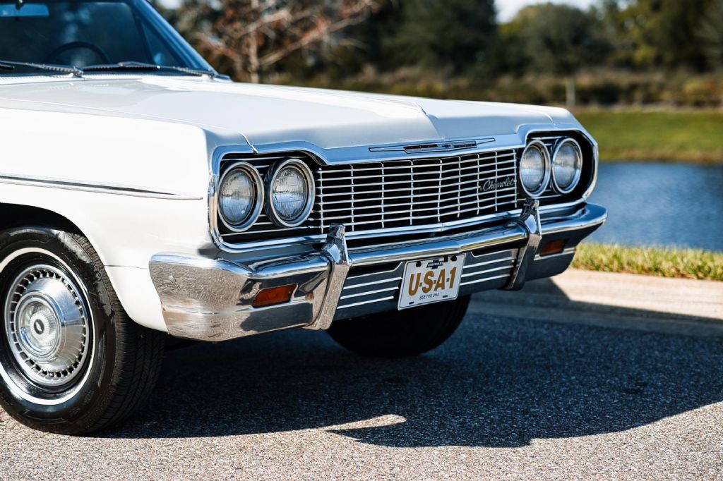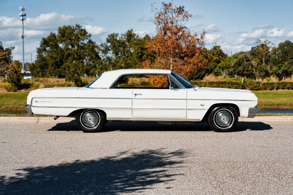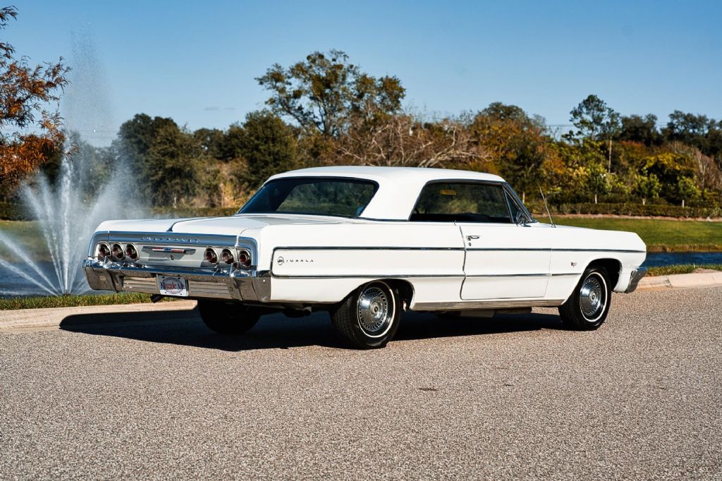 1964 Chevrolet Impala is a very attractive example of one of Chevrolets most iconic full-size models, presented with an emphasis on correctness, condition, and drivability. Believed to retain its original 327 V8 engine and equipped with a 2-speed Powerglide automatic transmission, this Impala offers smooth, effortless cruising exactly as these cars were intended to deliver and it sounds great doing it. The car was recently repainted at a cost of approximately $15,000 in its correct factory color, Paint Code 936 Ermine White. The result is a high-quality finish that shows very well, with excellent gloss and clean panel presentation. This is not a quick respray, but a thoughtfully executed paint job that significantly enhances the cars overall appearance. The interior has also been refreshed and is finished in its correct Trim Code 811 black cloth, paired with the original-style bench seat. It presents cleanly and complements the exterior nicely, maintaining the authentic look and feel collectors appreciate. The trunk area is clean and well-detailed, and the headliner is in very nice condition. Rolling on correct-style whitewall tires with proper 1964 Impala hubcaps, the car retains a true factory-correct appearance that is becoming increasingly difficult to find. The car is also equipped with front and rear bumper guards, adding to its original look and presence. Additional features include power steering and power brakes, making this Impala comfortable and easy to drive. This 1964 Impala runs and drives great, sounds great, and represents a strong example of a desirable year and body style. It is well-suited for cruising, local shows, or simply enjoying a classic Chevrolet that looks right and performs as expected. A nicely sorted, correct-looking 1964 Chevrolet Impala that checks the boxes for condition, presentation, and drivability. While we do our best to provide the highest quality muscle cars with an honest and reliable description and realize the importance of transparency when selling vehicles. That being said, we have not built, modified, changed or personally owned this vehicle. Whether this vehicle is consigned or owned by Past & Present Motor Cars we do not know the vehicles complete history since new. We want to be clear and try to answer any questions our customers might have prior to purchasing. Additionally, we not only welcome but we encourage 3rd party independent inspections. Please inquire prior to purchase to make sure the advertised vehicle has not already been sold. We list our vehicles on multiple websites and a vehicle can sell at any time. If a customer chooses to purchase sight unseen (many of our customers choose this option) the customer accepts the vehicle AS IS and WHERE IS and understands we cannot address concerns after purchase. For this reason, it's important all concerns are addressed prior to purchase. We make every effort to present accurate and reliable information, but use of this information is voluntary, and should only be deemed reliable after an independent review of its accuracy, completeness, and timeliness. It is the sole responsibility of the customer to verify the existence of options, accessories and the vehicle condition before time of sale. Financing is Available with low rates and Vehicle Shipping is available from our Showroom to your Garage. A Classic Car Warranty is Available for Purchase from a 3rd Party. Please speak to our Sales Associate or Company Representative for more information. Our team is working and available anytime by Phone or Text for your convenience at 407-559-7759. Thank you for your interest!
