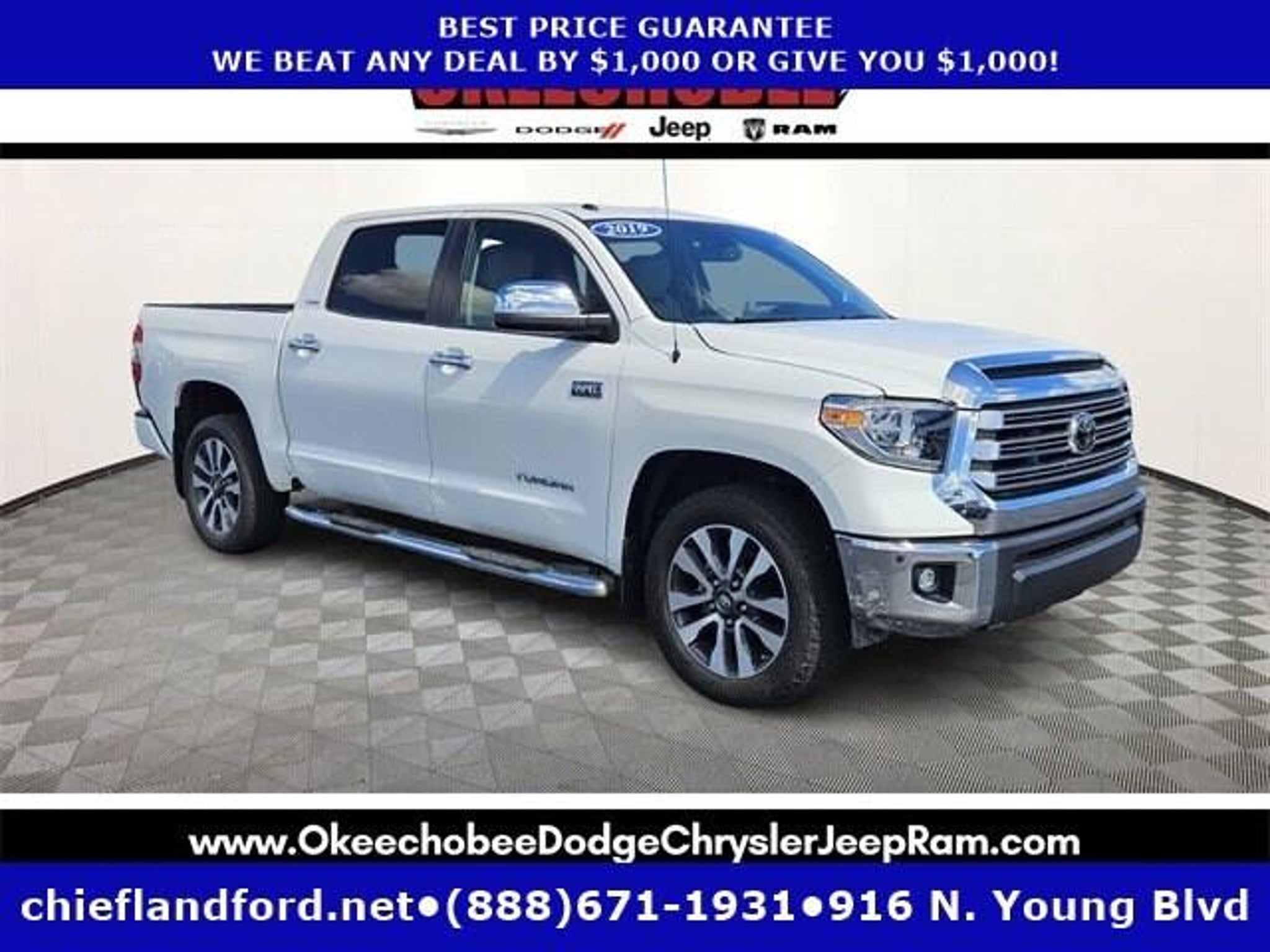 Only 67,940 Miles! Scores 17 Highway MPG and 13 City MPG! This Toyota Tundra 4WD delivers a Regular Unleaded V-8 5.7 L/346 engine powering this Automatic transmission. Wireless Phone Connectivity, Variable Intermittent Wipers w/Heated Wiper Park, Turn-By-Turn Navigation Directions. This Toyota Tundra 4WD Comes Equipped with These Options Trip Computer, Transmission: Electronic 6-Speed Automatic -inc: intelligence (ECT-i), sequential shift mode, uphill/downhill shift logic and TOW/HAUL mode, Transmission w/Driver Selectable Mode and Oil Cooler, Trailer Wiring Harness, Toyota Safety Sense P, Tailgate Rear Cargo Access, Steel Spare Wheel, Splash Guards, Solid Axle Rear Suspension w/Leaf Springs, Side Impact Beams. Stop By Today Test drive this must-see, must-drive, must-own beauty today at Chiefland Ford, 916 N. Young Blvd, Chiefland, FL 32626.