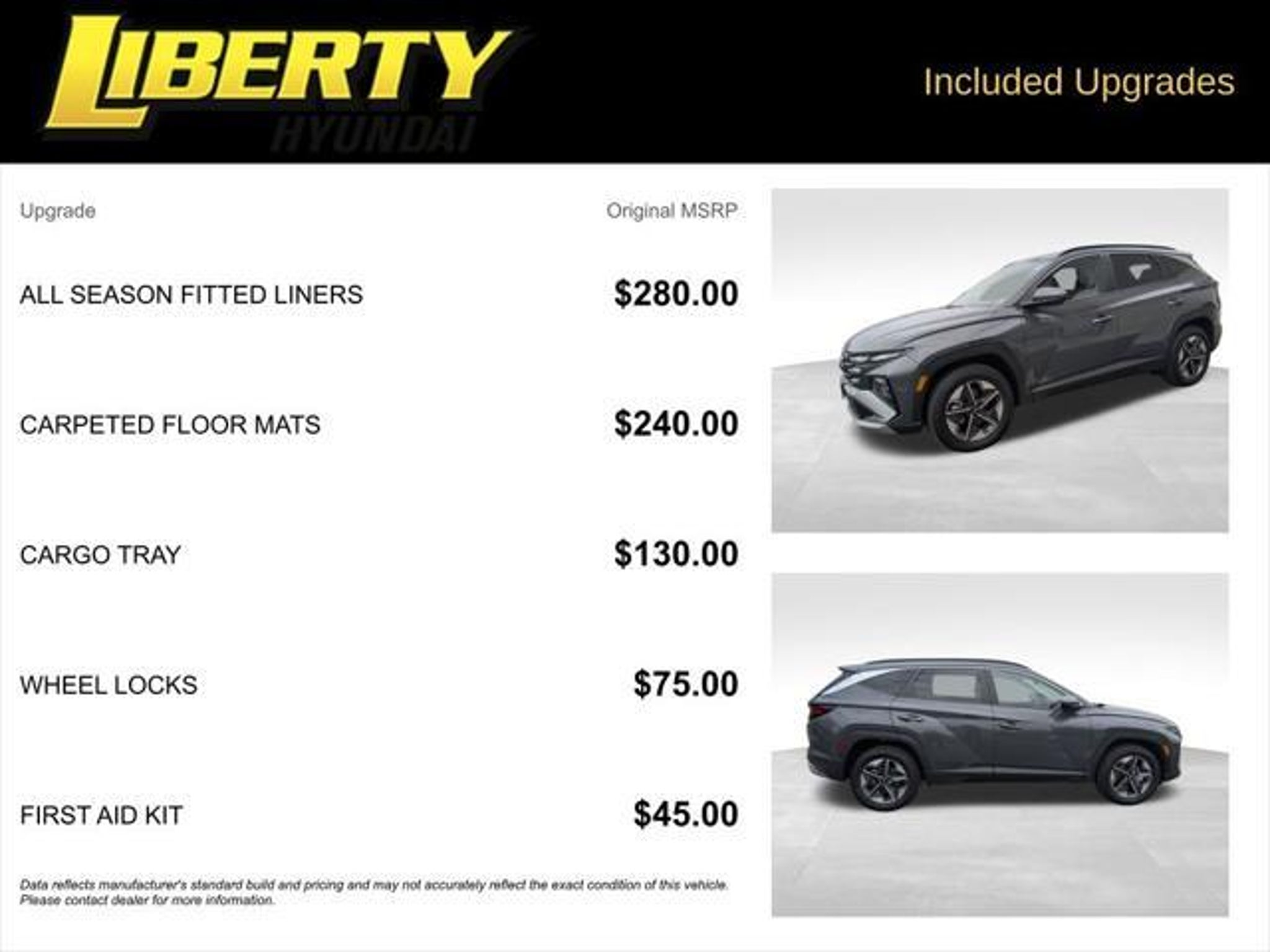 Details > 2025 Hyundai Tucson AWD SEL 4DR SUV For Sale in Mahwah, NJ Private Party Sellers Click here to place your ad now! You auta tell them you saw the ad in AutaBuy when you call or email. 1/31 2/31 3/31 4/31 5/31 6/31 7/31 8/31 9/31 10/31 11/31 12/31 13/31 14/31 15/31 16/31 17/31 18/31 19/31 20/31 21/31 22/31 23/31 24/31 25/31 26/31 27/31 28/31 29/31 30/31 31/31 View 31 Photos View All Add to My Garage Parked in Your Garage! Liberty Hyundai Contact Seller: I would like to: Make Offer Check Availability Ask A Question Request More Photos Check Financing Options Send a copy of this message to me Add this listing to my garage Send to Mobile Mileage 4,820 Exterior Color Ecotronic Gray Interior Color Gray Doors 4 Engine 2.5L I4 Transmission 8 Speed Auto Stock # 22418 VIN 5NMJBCDE7SH550255 Estimated Monthly Payment $522 mo Apply Now J.J. Best Banc & Co. 2025 Hyundai Tucson AWD SEL 4DR SUV Description: Liberty Hyundai · Mileage: 4,820 · Color: Ecotronic Gray Price: $29,995. Mileage 4,820 Exterior Color Ecotronic Gray Interior Color Gray Doors 4 Engine 2.5L I4 Transmission 8 Speed Auto Stock # 22418 VIN 5NMJBCDE7SH550255 Estimated Monthly Payment $522 mo Apply Now J.J. Best Banc & Co. Add to My Garage Parked in Your Garage! Message Seller Liberty Hyundai Contact Seller: I would like to: Make Offer Check Availability Ask A Question Request More Photos Check Financing Options Send a copy of this message to me Add this listing to my garage Offered for sale by Liberty Hyundai MAHWAH, NJ Price: $29,995. Offered for sale by Liberty Hyundai MAHWAH, NJ [entire inventory] Ask Auta Intelligence How far is this from me? How easy are parts to find for this model? What colors did these come in? How many Tucsons were produced in Gray? How many of these were produced? What transmission options did these offer? Where is this located? What engine options did these come with? What safety features does this model offer? When was this model first introduced? Tell me the history on this model Can you show me more suvs for a similar price? How many passengers can this seat comfortably? What kind of mileage do these get? What does this VIN number tell me? What trim levels were available for this model? What factory options were available on this model? Do you have a similar car to sell? List It Now! Questions about this car? Ask Auta Intelligence for production numbers, available options, etc. · Subscribe to AutaBuy! · Send a Gift Subscription Notice to a Friend
