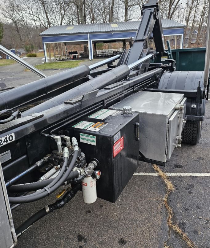 2010 Freightliner Business Class M2 106 Hooklift This Freightliner M2 106 hooklift truck is a versatile and professionally outfitted vocational unit featuring a Cummins ISC engine rated at 350 horsepower with an engine brake, paired to a 9-speed Eaton manual transmission. With 147,000 miles and 5,760 hours, this truck received a Swaploader SL 240 hooklift system installed in 2023, rated at 24,000 pounds. It is equipped with an air-shift PTO, electric tarp system, rear pintle plate with 7-pin plug and brake controller, aluminum toolboxes including a custom cross box, and a modern touchscreen radio with backup camera. Additional highlights include power windows, power locks, air seat, A/C in excellent condition, and a locking rear axle. A 15-yard container is included, making this unit immediately usable for waste, construction, or municipal applications. Located in Redding, CT 06896 For more information, please call 833-265-6113 and mention ID 91691