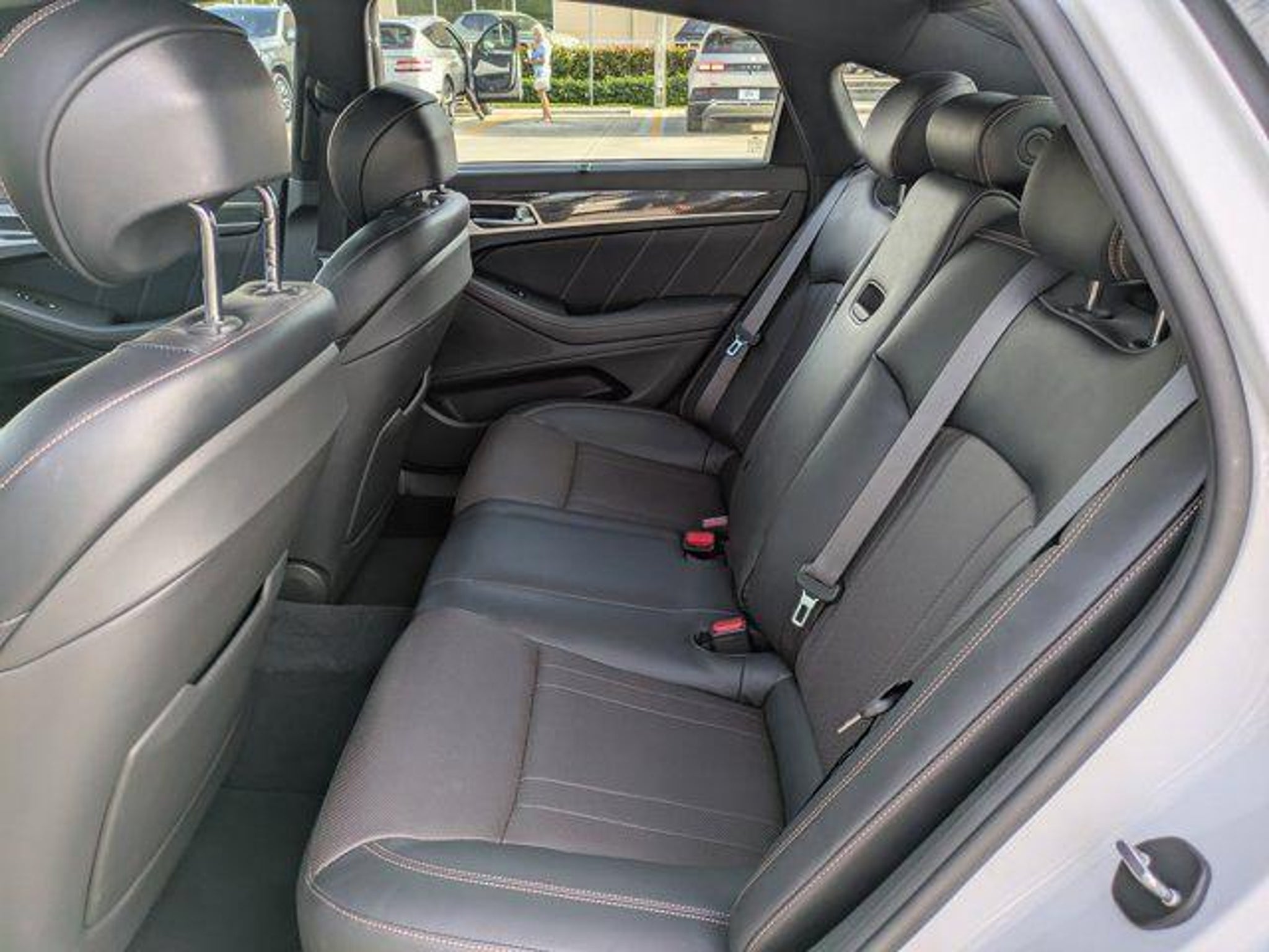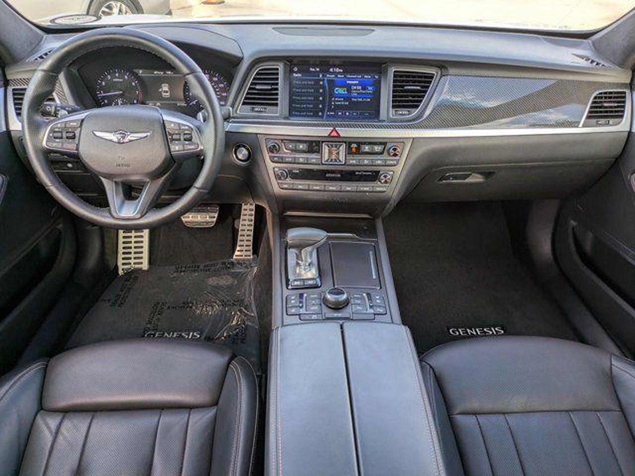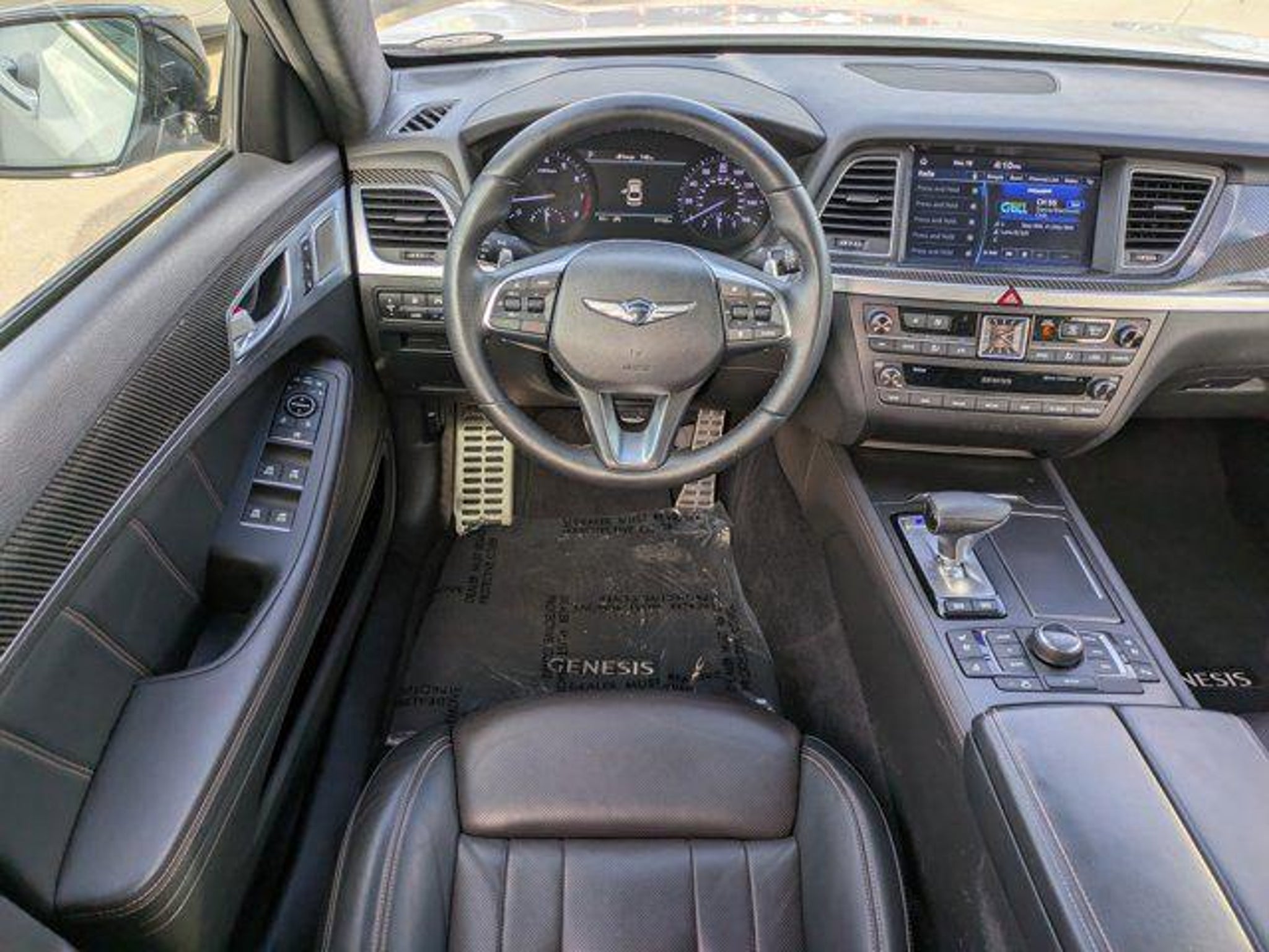 Clean CARFAX. 2020 Genesis G80 White 4D Sedan 3.3T Sport RWD 8-Speed Automatic with SHIFTRONIC V6 NAVIGATION BLUE TOOTH HANDS FREE BACK UP CAMERA PUSH BUTTON START SMART KEY Android Auto & Apple CarPlay G80 3.3T Sport 4D Sedan V6 Navigation System Option Group 01. Option Group 01 G80 3.3T Sport 4D Sedan V6 Navigation System 17 Speakers 4-Wheel Disc Brakes ABS brakes Adaptive suspension Air Conditioning Alloy wheels AM/FM radio: SiriusXM Android Auto & Apple CarPlay Anti-whiplash front head restraints Auto High-beam Headlights Auto tilt-away steering wheel Auto-dimming door mirrors Auto-dimming Rear-View mirror Auto-leveling suspension Automatic temperature control Brake assist Bumpers: body-color Compass Delay-off headlights Driver door bin Driver vanity mirror Dual front impact airbags Dual front side impact airbags Electronic Stability Control Emergency communication system: Genesis Connected Services Exterior Parking Camera Rear Four wheel independent suspension Front anti-roll bar Front Bucket Seats Front Center Armrest Front dual zone A/C Front fog lights Front reading lights Fully automatic headlights Garage door transmitter: HomeLink Heads-Up Display Heated & Ventilated Front Sport Seats Heated door mirrors Heated front seats Heated rear seats Illuminated entry Knee airbag Leather Shift Knob Leather steering wheel Low tire pressure warning Memory seat Nappa Leather Seating Surfaces Occupant sensing airbag Outside temperature display Overhead airbag Overhead console Panic alarm Passenger door bin Passenger vanity mirror Power door mirrors Power driver seat Power moonroof Power passenger seat Power steering Power windows Radio data system Radio: AM/FM/HD/SiriusXM/MP3 Audio System Rain sensing wipers Rear anti-roll bar Rear reading lights Rear seat center armrest Rear side impact airbag Rear Window Blind Rear window defroster Remote keyless entry Security system Speed control Speed-sensing steering Speed-Sensitive Wipers Sport steering wheel Steering wheel memory Steering wheel mounted audio controls Tachometer Telescoping steering wheel Tilt steering wheel Traction control Trip computer Turn signal indicator mirrors Variably intermittent wipers Ventilated front seats and Wheels: 19 x 8.5J Fr & 19 x 9.0J Rr Sport Alloy. Price Plus Tax Registration Fees Dealer Services Dealer installed Items & Dealer Preformed Service/Reconditioning.