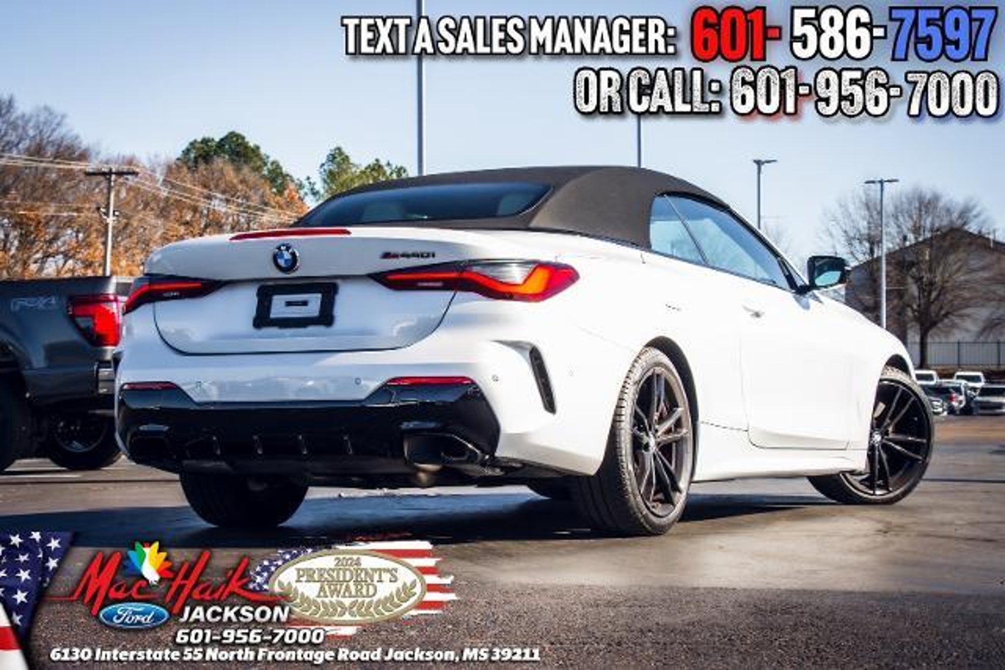 Certified. CARFAX One-Owner. Clean CARFAX. Mineral White Metallic 2024 BMW 4 Series M440i RWD 8-Speed Automatic Sport 3.0L I6 4 Series M440i, 2D Convertible, 3.0L I6, 8-Speed Automatic Sport, RWD, 4-Wheel Disc Brakes, Active Park Distance Control, AM/FM radio: SiriusXM with 360L, Auto High-beam Headlights, Automatic temperature control, Black Mirror Caps, BMW Curved Display w/HUD, Connected Package Pro, Driver Width Adjustment, Electronic Stability Control, Extended Shadowline Trim, Exterior Parking Camera Rear, Four wheel independent suspension, Fully automatic headlights, harman/kardon Surround Sound System, Heated Front Seats, Heated Steering Wheel, Hi-Fi Sound System, Lumbar Support, M Shadowline Lights, M Sport Brakes w/Red Calipers, M Sport Package Pro, Memory seat, Navigation System, Parking Assistance Package, Parking Assistant Plus, Premium Package, Rear-View Camera, Shadowline Package, Speed-sensing steering, Steering wheel mounted audio controls, Surround View w/3D View, Traction control, Vernasca Leather Upholstery, Wheels: 19 x 8 Fr & 19 x 8.5 Rr (Style 791M), Wireless Device Charging. Recent Arrival! 23/31 City/Highway MPG Certification Program Details: Ford Blue Certified Details: * Roadside Assistance * Limited Warranty: 3 Month/4,000 Mile (whichever comes first) after new car warranty expires or from certified purchase date * and 11,000 FordPass Rewards Points to use toward first maintenance visit * Transferable Warranty * Vehicle History * 139 Point Inspection * Warranty Deductible: $100