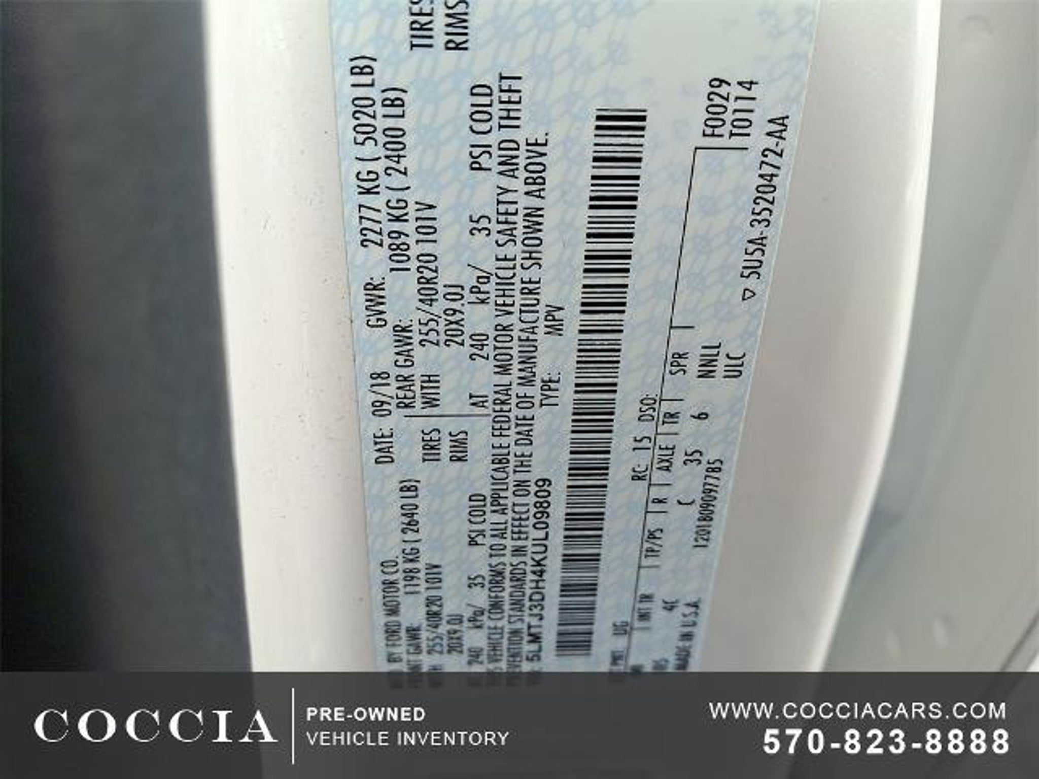 All Coccia Pre-Owned Vehicles undergo a rigorous reconditioning and inspection process and include a three month warranty! Odometer is 14433 miles below market average! 4D Sport Utility AWD 2.3L Turbocharged 6-Speed Automatic 18/25 City/Highway MPG One Owner, Clean Vehicle History Report, Buy at Coccia and receive complimentary inspections for the life of your vehicle, Complimentary car wash with every service visit, Convenient Saturday service department hours available, Family owned and operated for over 35 years!, 10 Speakers, 20 Ultra Bright Machined Aluminum Wheels, 3.51 Axle Ratio, Active Park Assist, Adaptive Cruise Control, Adaptive suspension, Air Conditioning, Alloy wheels, AM/FM radio: SiriusXM, AppLink/Apple CarPlay and Android Auto, Auto High Beams, Auto tilt-away steering wheel, Auto-dimming Rear-View mirror, Automatic temperature control, Brake assist, Bumpers: body-color, CD player, Compass, Delay-off headlights, Driver door bin, Driver vanity mirror, Electrochromic Rearview Mirror w/CADS Support, Electronic Stability Control, Enhanced THX II Certified Audio System, Equipment Group 300A, Exterior Parking Camera Rear, Forward Sensing System, Four wheel independent suspension, Front Bucket Seats, Front Center Armrest, Front dual zone A/C, Front fog lights, Front reading lights, Fully automatic headlights, Garage door transmitter, Genuine wood dashboard insert, Genuine wood door panel insert, HD Radio, Heated door mirrors, Heated front seats, Heated Rear Seats, Heated Steering Wheel, Illuminated entry, Lane Keeping System, Lincoln MKC Climate Package, Lincoln MKC Technology Package, Memory seat, Navigation System, Outside temperature display, Overhead console, Panic alarm, Passenger door bin, Passenger vanity mirror, Power door mirrors, Power driver seat, Power Liftgate, Power moonroof: Vista Roof, Power passenger seat, Power steering, Power windows, Pre-Collision Warning w/Pedestrian Detection, Prem Heated & Cooled Leather-Trimmed Bucket Seats, Radio data system, Radio: Audio System w/Single CD/MP3/Navigation, Rain Sensing Wipers, Rear reading lights, Rear seat center armrest, Rear window defroster, Rear window wiper, Remote keyless entry, Roof rack: rails only, Security system, SiriusXM Radio, Speed control, Speed-sensing steering, Speed-Sensitive Wipers, Split folding rear seat, Spoiler, Steering wheel memory, Steering wheel mounted audio controls, SYNC 3 Communications & Entertainment System, Tachometer, Telescoping steering wheel, Tilt steering wheel, Traction control, Trip computer, T