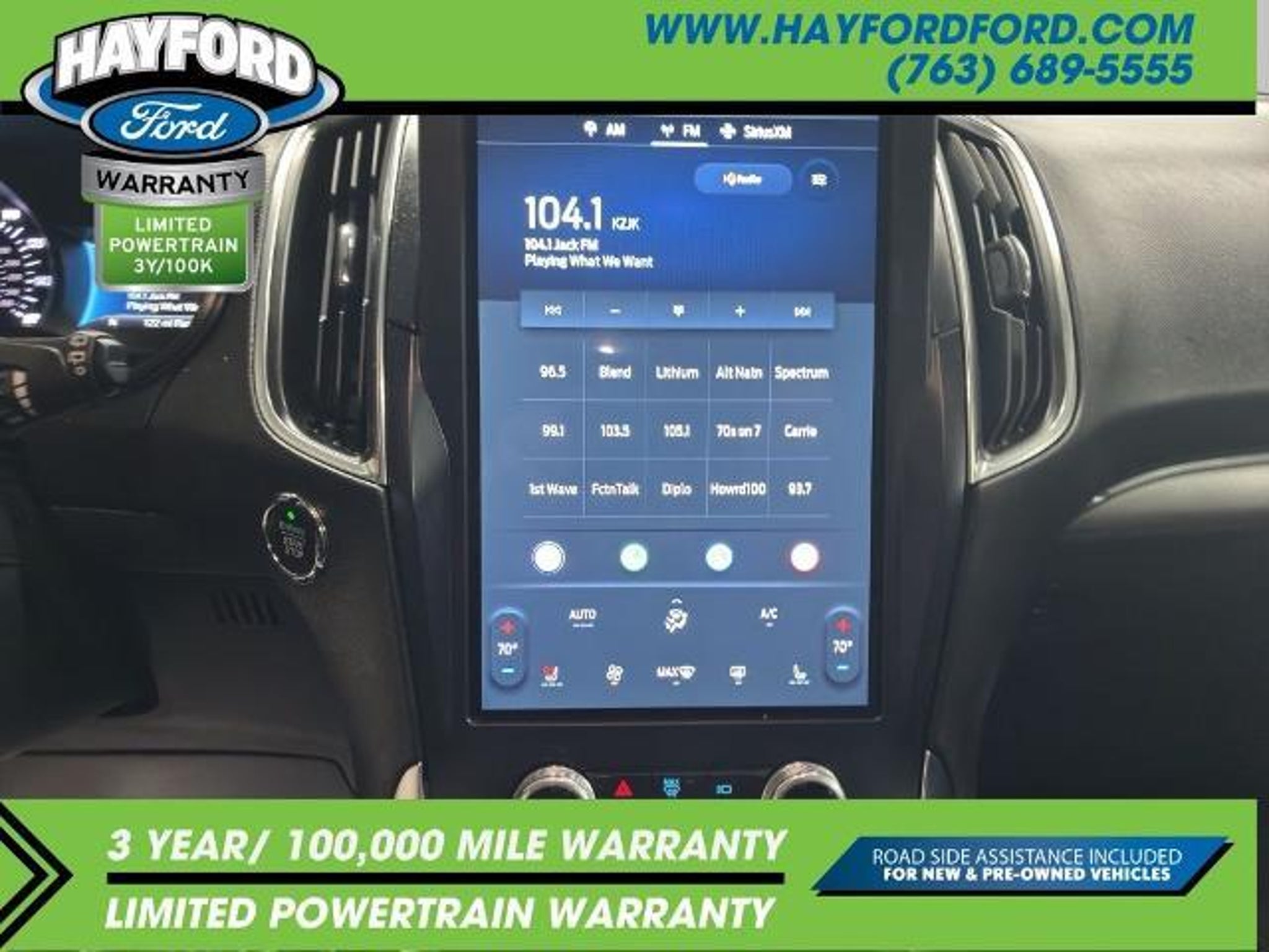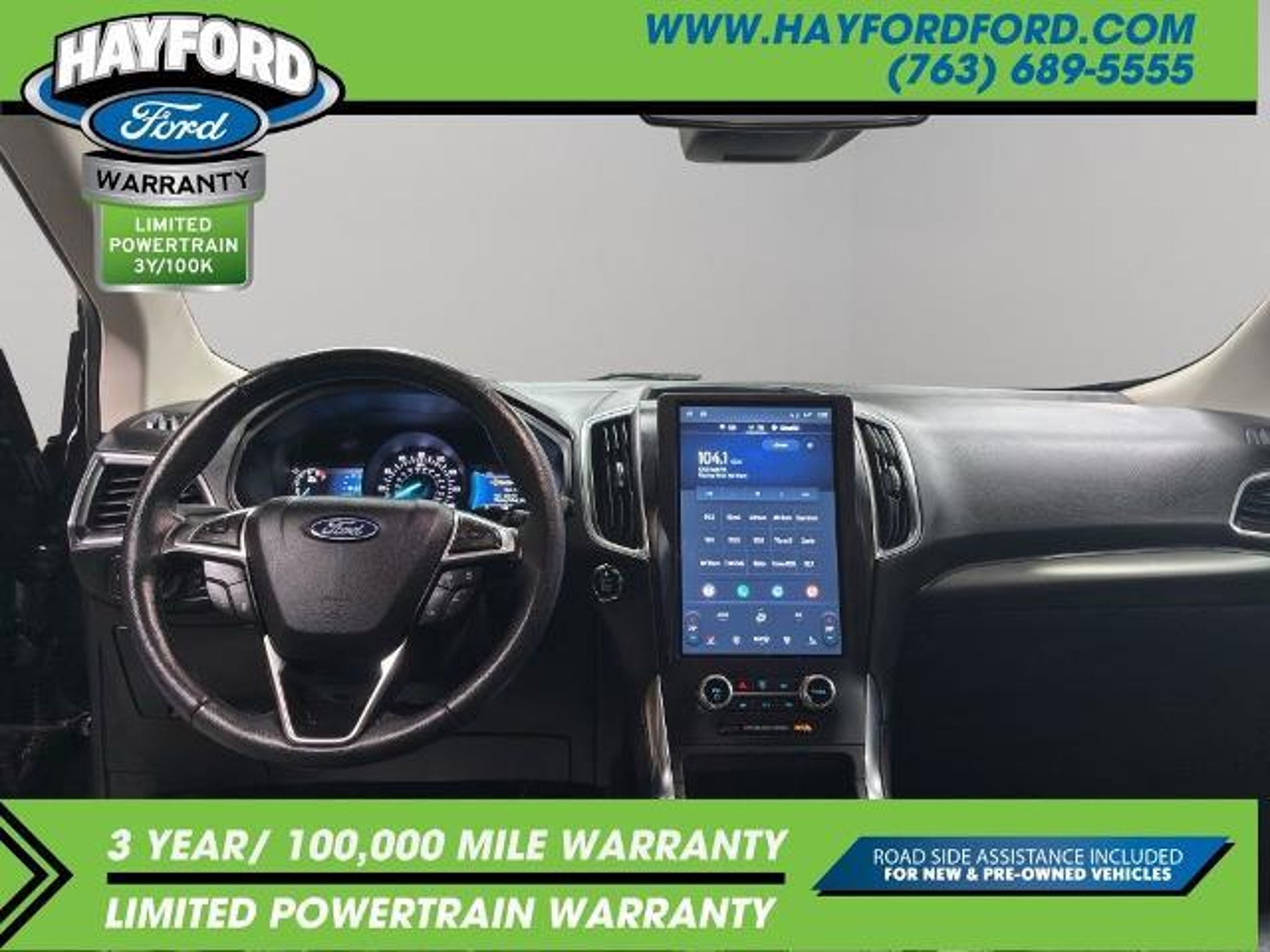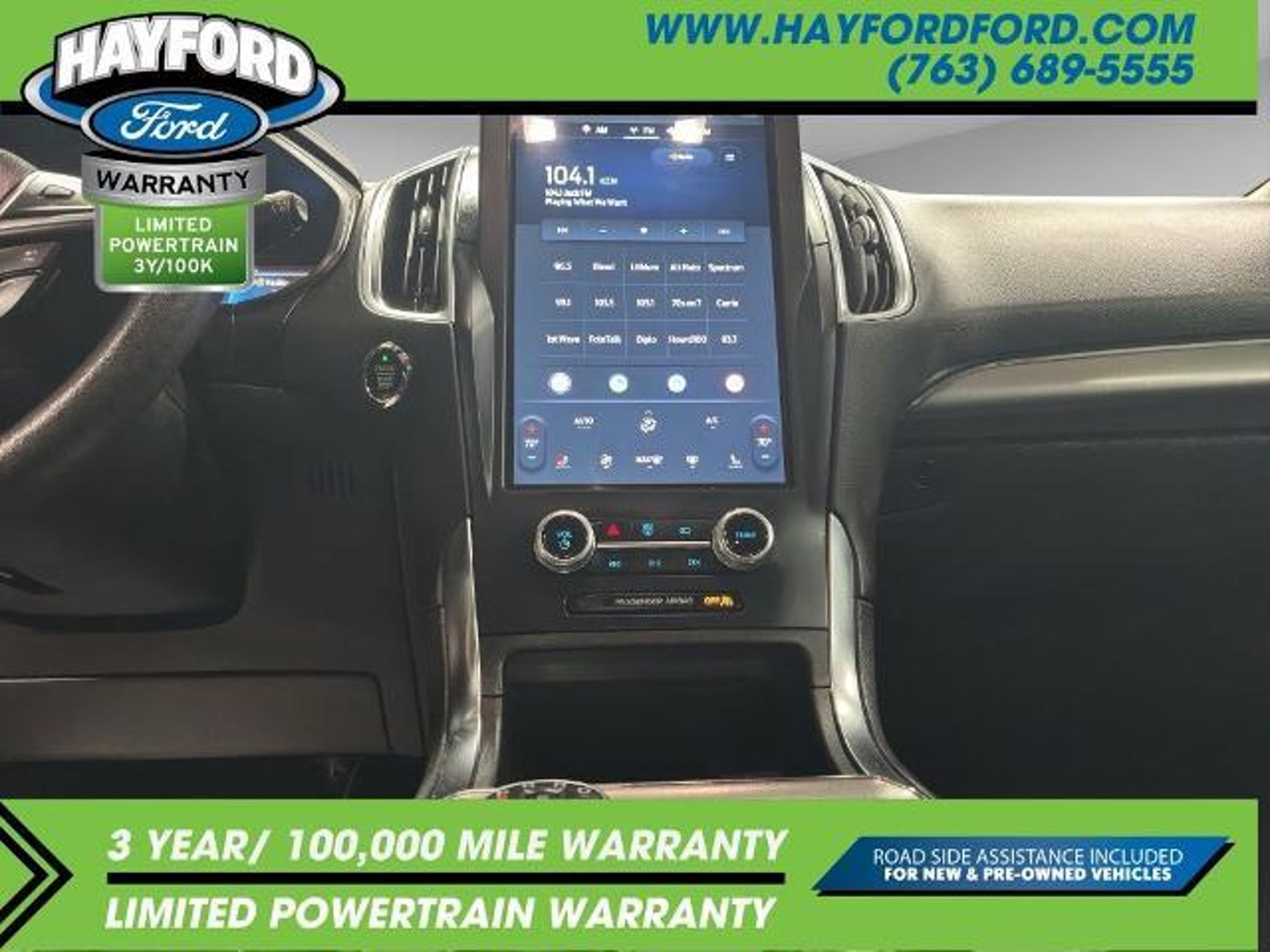**THIS VEHICLE INCLUDES A 3yr/100,000 MILE POWERTRAIN WARRANTY** 2022 Ford Edge Titanium CARFAX One-Owner. Clean CARFAX. *AWD*, *NAVIGATION*, *BACKUP CAMERA*, *REMOTE START*, *NEW TIRES*, *ONE OWNER*, *POWER FRONT SEATS*, *MEMORY SEATING*, *HEATED & COOLED SEATS*, *HEATED 2ND ROW SEATING*, *HEATED STEERING WHEEL*, *INTELLIGENT ACCESS with PUSH BUTTON START*, *DUAL-ZONE CLIMATE CONTROL*, *HANDS FREE LIFTGATE*, *ADAPTIVE CRUISE CONTROL*, *REVERSE SENSING SYSTEM*, *WIRELESS CHARGING PAD*, *B & O AUDIO SYSTEM*, *FORD PASS CONNECT*, *SYNC 4 W/ 12 TOUCHSCREEN* (Navigation and bluetooth with Apple carplay or Android auto), Adaptive Cruise Control w/Stop & Go, Adaptive LED Headlamps, Auto High-beam Headlights, Auto-Dimming Driver's Sideview Mirror, Connected Built-In Navigation, Equipment Group 301A, Evasive Steering Assist, Ford Co-Pilot360 Assist, Front 180-Degree Camera w/Split View, Fully automatic headlights, Heated door mirrors, Heated Rear Seats, Heated steering wheel, Lane Centering, Leather-Trimmed Heated/Cooled Sport Bucket Seats, Navigation System, Power Tilt/Telescoping Steering Column w/Memory, Speed control. 21/28 City/Highway MPG Contact Hayford Ford at (763)689-5555 or Visit us online at www.hayfordford.com for more pictures and details. Come take a test drive today. Located 2 Miles north of Isanti on Hwy 65. Internet price includes $500 Hayford Finance Bonus and $500 Trade-in Bonus. Ask For details. Check out this vehicle's great Equipment Group 301A (Adaptive Cruise Control w/Stop & Go, Adaptive LED Headlamps, Auto-Dimming Driver's Sideview Mirror, Connected Built-In Navigation, Evasive Steering Assist, Front 180-Degree Camera w/Split View, Heated Rear Seats, Lane Centering, Leather-Trimmed Heated/Cooled Sport Bucket Seats, and Power Tilt/Telescoping Steering Column w/Memory), Ford Co-Pilot360 Assist, Auto High-beam Headlights, Fully automatic headlights, Heated door mirrors, Heated steering wheel, Navigation System, Speed control, 12 Speakers, 3.80 Axle Ratio, 4-Wheel Disc Brakes, ABS brakes, Air Conditioning, Alloy wheels, AM/FM radio: SiriusXM with 360L, Auto-dimming Rear-View mirror, Automatic temperature control, Brake assist, Bumpers: body-color, Compass, Delay-off headlights, Driver door bin, Driver vanity mirror, Dual front impact airbags, Dual front side impact airbags, Electronic Stability Control, Emergency communication system: SYNC 4 911 Assist, FordPass Connect, Four wheel independent suspension, Front anti-roll bar, Front Bucket Seats, Front Center Armrest w/Storage, Front d