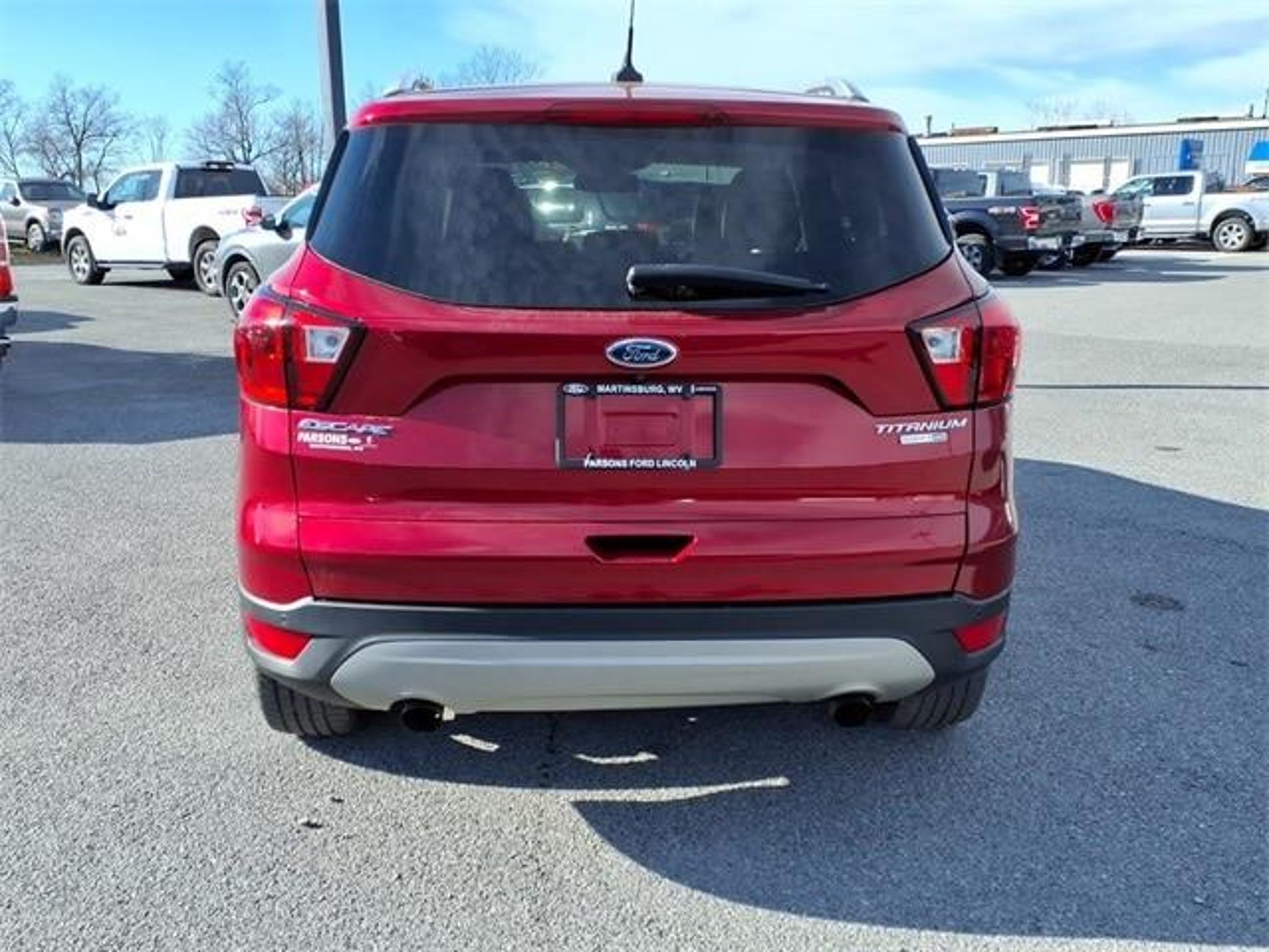 Please call the Dealership to verify this vehicle is still in stock. We pride ourselves in supporting the Eastern Panhandle of West Virginia and value our community above and beyond all others. Thank you for considering us. Your gonna like the way we serve. We are a full-service Ford Dealership. We have an Excellent Finance Department and secure financing for the majority of our customers. We are always looking for nice trades. If you are not local, no worries, we have been selling vehicles throughout the U.S. For many years. We will gladly handle everything for you to ensure that this is an exceptional car buying experience. Visit our website today. CARFAX One-Owner. Ruby Red Metallic Tinted Clearcoat 2019 Ford Escape Titanium 4WD EcoBoost 2.0L I4 GTDi DOHC Turbocharged VCT 4WD, Adaptive Cruise Control & Fwd Collision Warning, Auto High-Beam Headlamps, Blind Spot Info System w/Cross-Traffic Alert, Equipment Group 400A, Ford Safe and Smart Titanium Plus Package, Lane-Keeping System, Panoramic Vista Roof, Rain-Sensing Wipers. Your Small Town Dealer with Big City Pricing!!! 6-Speed Automatic 21/27 City/Highway MPG