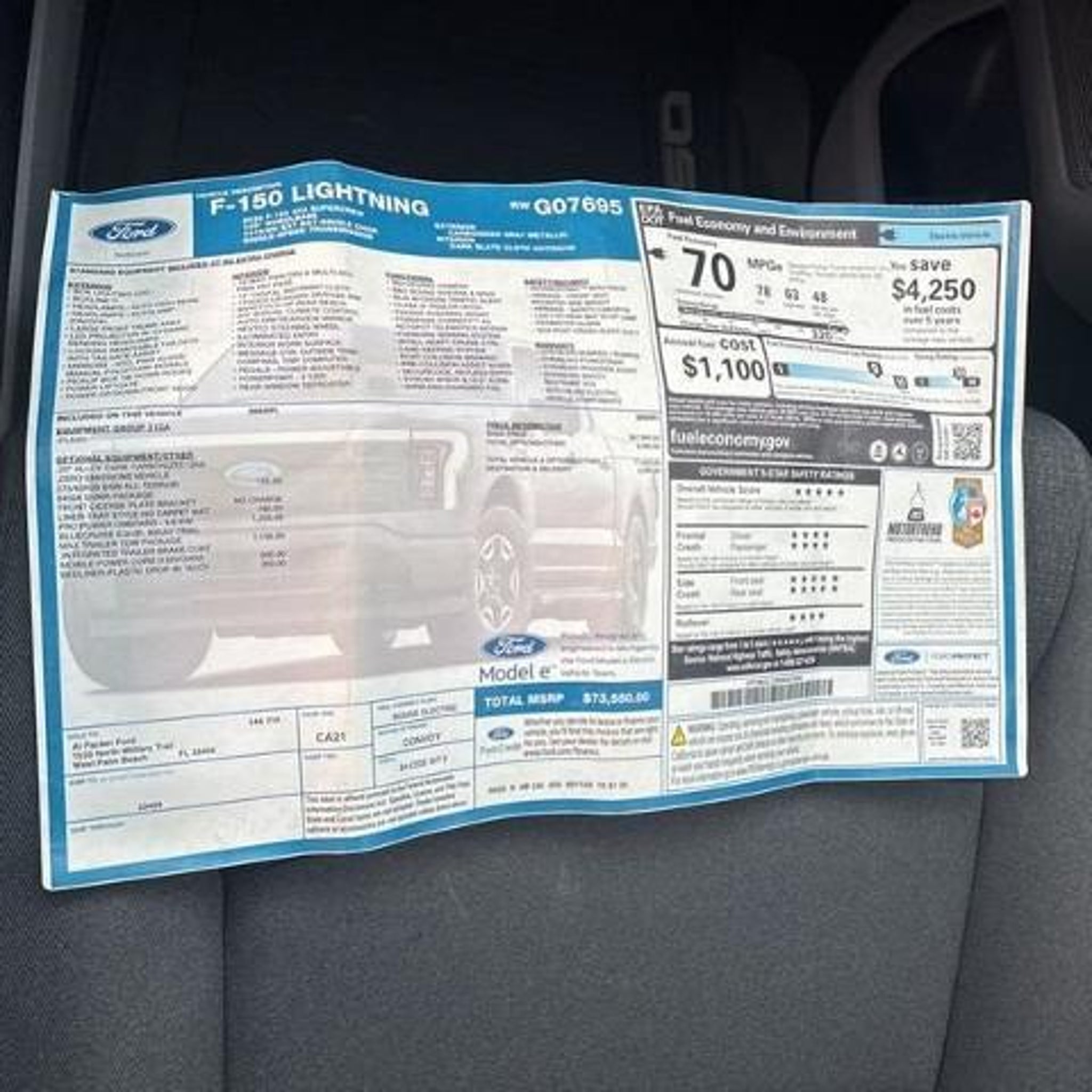 2024 FORD F-150 LIGHTNING FLASH, CLEAN CARFAX, ALL WHEEL DRIVE, APPLE CAR PLAY, ANDROID AUTO, 360-DEGREE CAMERA, POWER ADJUSTABLE PEDALS, AUTOMATIC CLIMATE CONTROL, B&O PREMIUM AUDIO SYSTEM, CLASS IV TRAILER HITCH, PREMIUM WHEELS, PRO POWER ONBOARD, BLUECRUISE CAPABLE, MAX TRAILER TOW PACKAGE, MOBILE POWER CORD, BEDLINER Recent Arrival! Equipment Group 312A Standard, Max Trailer Tow Package (Trailer Brake Controller), 4-Wheel Disc Brakes, 8 Speakers, ABS brakes, Adjustable pedals, Air Conditioning, Alloy wheels, Auto High-beam Headlights, Auto-dimming Rear-View mirror, Automatic temperature control, Brake assist, Bumpers: body-color, Cloth Heated Front Seats, Compass, Delay-off headlights, Driver door bin, Driver vanity mirror, Dual front impact airbags, Dual front side impact airbags, Electronic Stability Control, Emergency communication system: SYNC 4 911 Assist, Four wheel independent suspension, Front anti-roll bar, Front Bucket Seats, Front Center Armrest, Front dual zone A/C, Front License Plate Bracket, Front reading lights, Fully automatic headlights, Heated door mirrors, Heated front seats, Heated steering wheel, Illuminated entry, Knee airbag, Low tire pressure warning, Mobile Power Cord (120/240V), Navigation system: Connected Navigation, Occupant sensing airbag, Outside temperature display, Overhead airbag, Overhead console, Panic alarm, Passenger door bin, Passenger vanity mirror, Plastic Drop-In Bedliner, Power door mirrors, Power driver seat, Power passenger seat, Power steering, Power windows, Pro Power Onboard - 9.6 kW, Radio data system, Radio: B&O Sound System by Bang & Olufsen, Rear anti-roll bar, Rear reading lights, Rear step bumper, Rear window defroster, Remote keyless entry, Security system, Speed control, Speed-sensing steering, Split folding rear seat, Steering wheel mounted audio controls, SYNC 4A w/Enhanced Voice Recognition, Telescoping steering wheel, Tilt steering wheel, Traction control, Tray Style Floor Liner w/o Carpet Mats, Trip computer, Turn signal indicator mirrors, Variably intermittent wipers, and Wheels: 20 Alloy Dark Carbonized Gray. Malloy Ford in Alexandria, VA has the DC Metro Area's best value Pre Owned Used Cars, SUV's and Trucks! Call us at 703-256-5000 or email us now and lock in the special E-Price on your next vehicle! Malloy Ford has been a leading provider of great deals and phenomenal prices for customers in the DC Metro Area for many years. Our Alexandria Ford Dealer specializes in new and pre-owned Ford vehicles, Ford Motor Credit Finance, Ford S