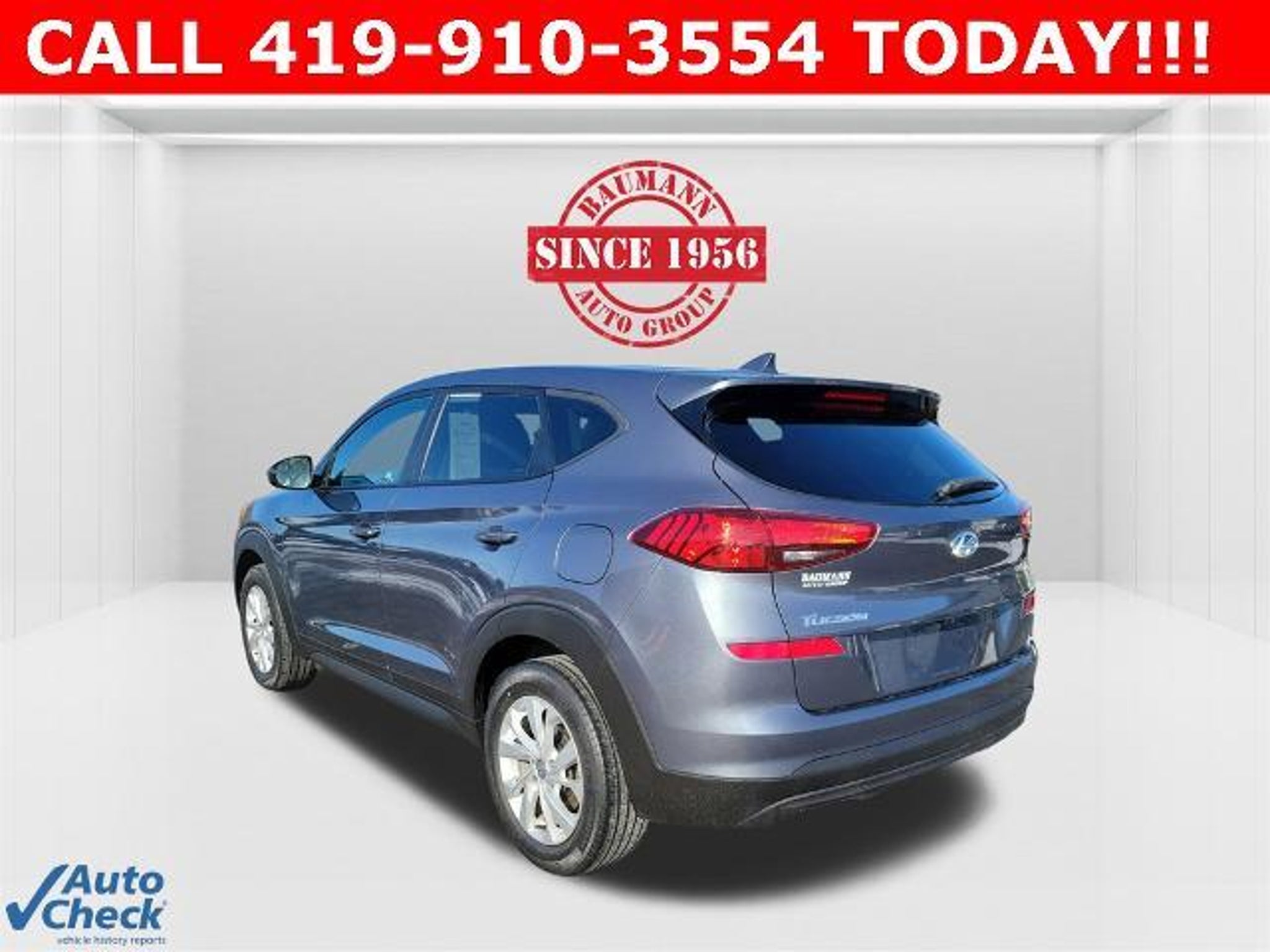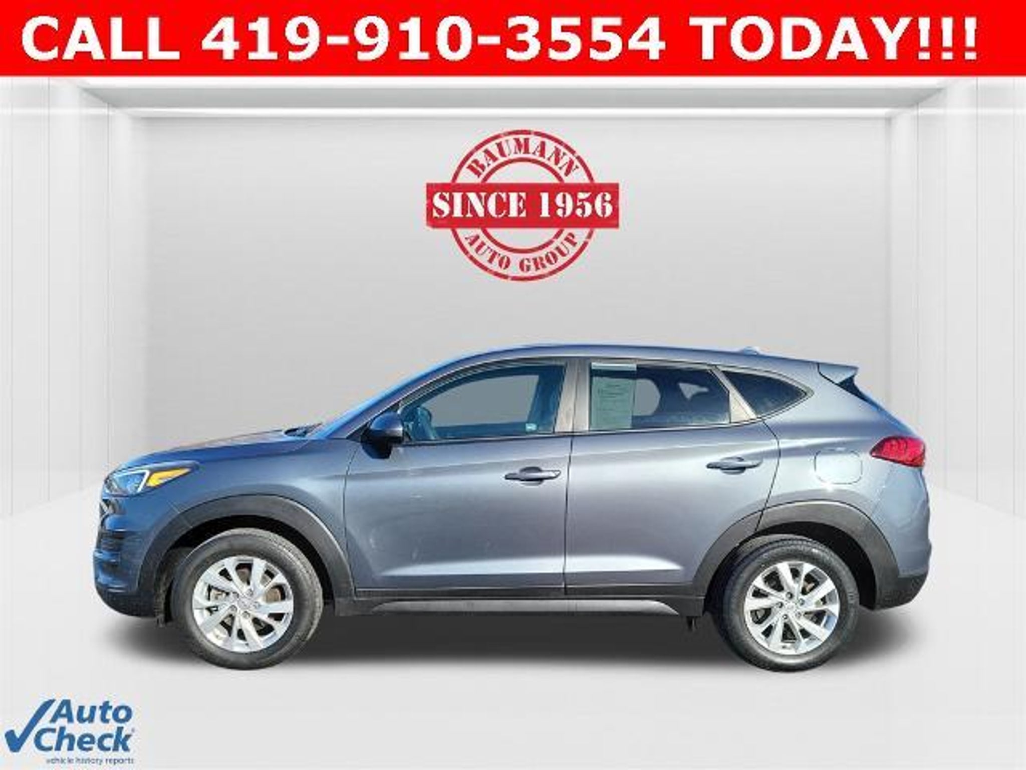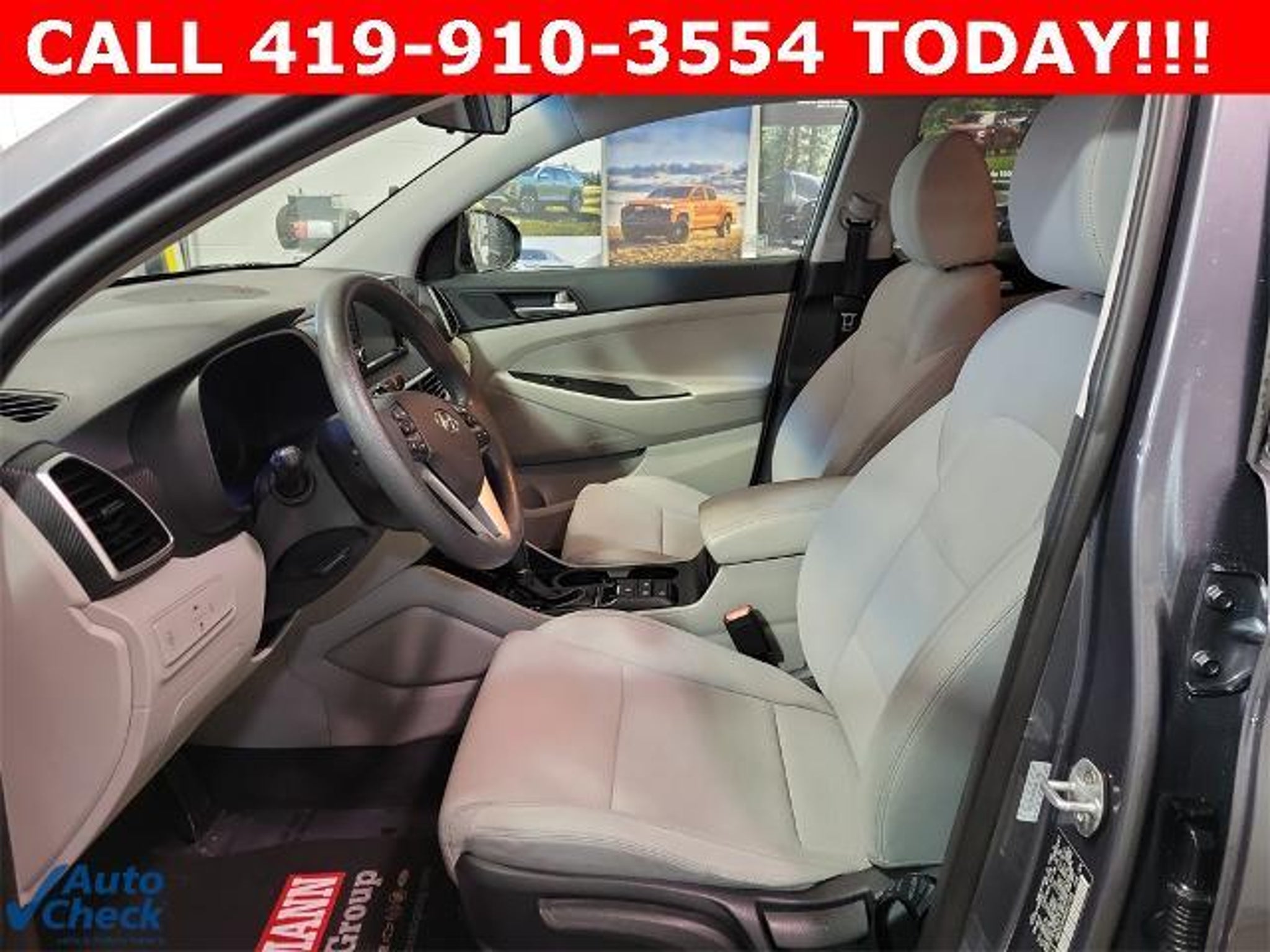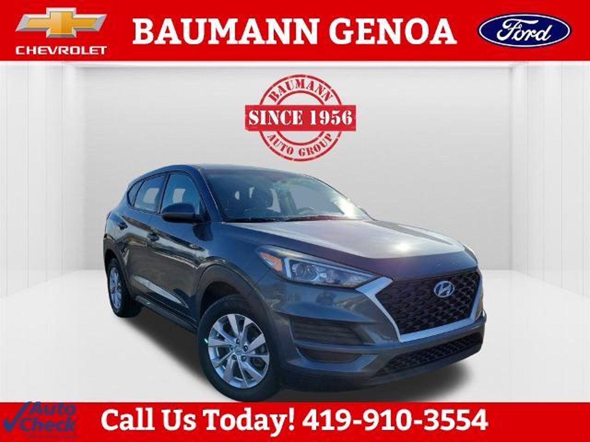 Odometer is 41042 miles below market average! Coliseum Gray 2019 Hyundai Tucson SE 4D Sport Utility I4 6-Speed Automatic with Shiftronic AWD BAUMANN AUTO GROUP GENOA - 419.855.8366. We Make Car Buying Fun, Fast, and HASSLE FREE. AWD, Exterior Parking Camera Rear, Option Group 01, 17 x 7.0J Alloy Wheels, 4-Wheel Disc Brakes, 6 Speakers, ABS brakes, Air Conditioning, Alloy wheels, AM/FM radio, Apple CarPlay & Android Auto, Axle Ratio: 3.648, Brake assist, Bumpers: body-color, Cargo Net, Carpeted Floor Mats, Delay-off headlights, Driver door bin, Driver vanity mirror, Dual front impact airbags, Dual front side impact airbags, Electronic Stability Control, Four wheel independent suspension, Front anti-roll bar, Front Bucket Seats, Front Center Armrest, Front reading lights, Fully automatic headlights, Illuminated entry, Low tire pressure warning, Occupant sensing airbag, Outside temperature display, Overhead airbag, Overhead console, Panic alarm, Passenger door bin, Passenger vanity mirror, Power door mirrors, Power steering, Power windows, Radio: AM/FM Audio System, Rear anti-roll bar, Rear seat center armrest, Rear window defroster, Rear window wiper, Remote keyless entry, Reversible Cargo Tray, Security system, Speed control, Speed-sensing steering, Split folding rear seat, Spoiler, Steering wheel mounted audio controls, Tachometer, Telescoping steering wheel, Tilt steering wheel, Traction control, Trip computer, Variably intermittent wipers, YES Essentials Cloth Seat Trim, AWD, Exterior Parking Camera Rear, Option Group 01.