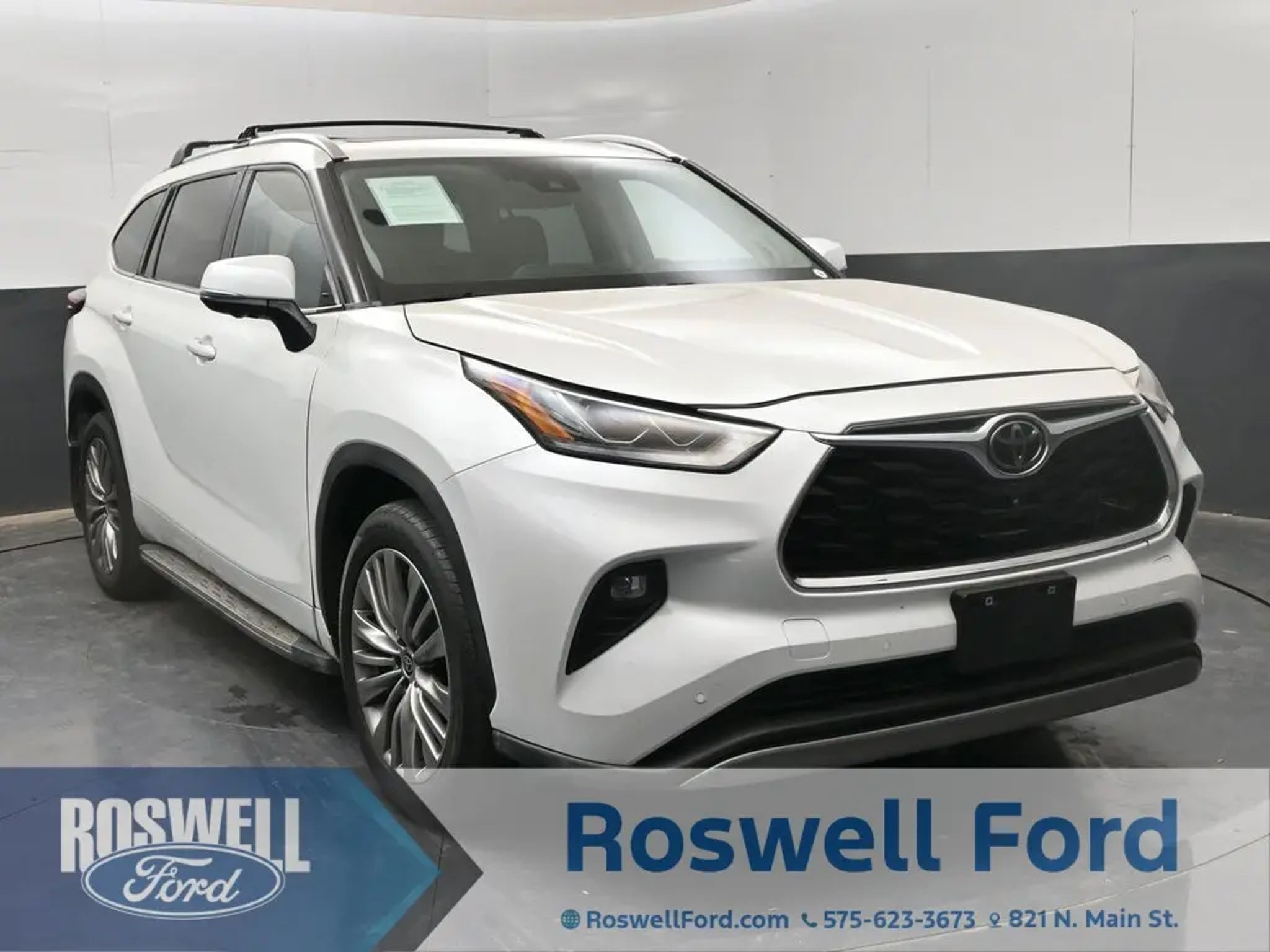 **BACKUP CAMERA**, **BLUETOOTH, HANDS-FREE**, **USB**, **HEATED LEATHER**, **KEYLESS ENTRY**, **JUST ARRIVED PLEASE CALL FOR MORE PHOTOS**, **NON-SMOKER**, **LOCAL TRADE**, **LOW MILEAGE**, ABS brakes, Active Cruise Control, Alloy wheels, Electronic Stability Control, Front dual zone A/C, Heated door mirrors, Heated front seats, Heated rear seats, Heated/Ventilated Front Bucket Seats, Illuminated entry, Leather Seat Trim, Low tire pressure warning, Navigation System, Power Liftgate, Power moonroof, Remote keyless entry, Traction control. 2023 Toyota Highlander Platinum 2.4L I4 PDI Turbocharged DOHC 16V LEV3-SULEV30 265hp FWD CARFAX One-Owner. 2023 Toyota Highlander Platinum Stop by the all new Roswell Ford at 821 N. Main St. Roswell, New Mexico 88201. Serving Eastern New Mexico, El Paso, Lubbock, Ruidoso, Carlsbad, Hobbs, Las Cruces, Artesia, Odessa, Midland, Abilene, Dallas, Ft. Worth, Amarillo, Metro, DFW, Wichita Falls, Houston areas. Delivery available Call at 575-623-FORD.