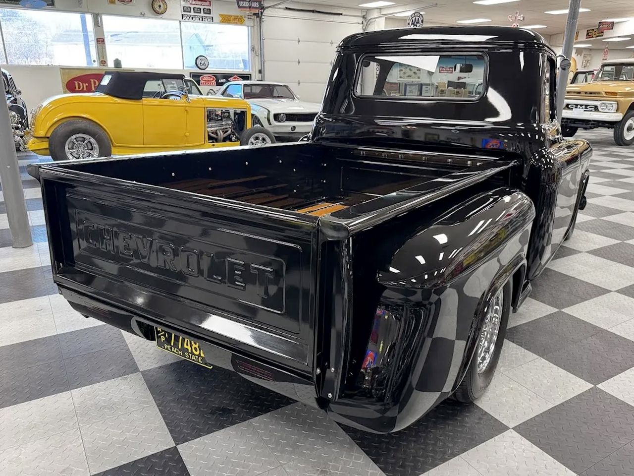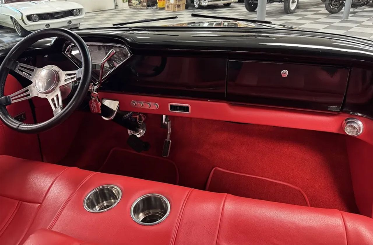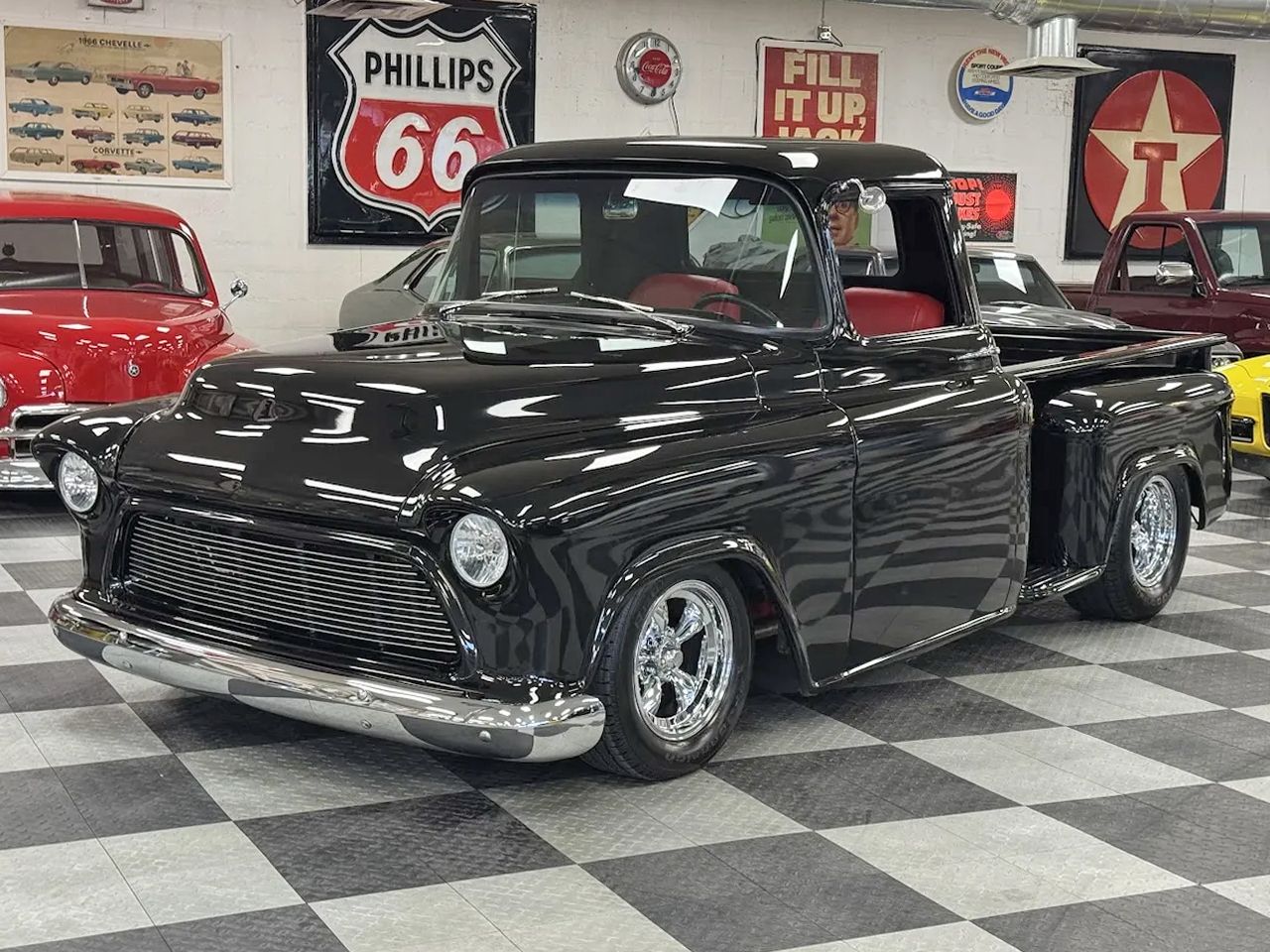 Coming Soon! 1955 Chevrolet 3100, Frame Off Restored Street Rod pickup, beautiful Tuxedo black paint, custom red leather interior, ZZ3 350ci V8 crate engine, 700R4 automatic overdrive transmission, Billet frontrunner system, power steering, disc brake, Vintage A/C, Mustang II tubular front suspension, Dakota Custom Gauges, tilt column, Le Carra Leather wrapped wheel, power windows, 10 bolt rear axle, Oak wood bed with stainless strips, relocated aluminum fuel tank, 15” chrome American Torque Thrust wheels, Ready to Cruise!