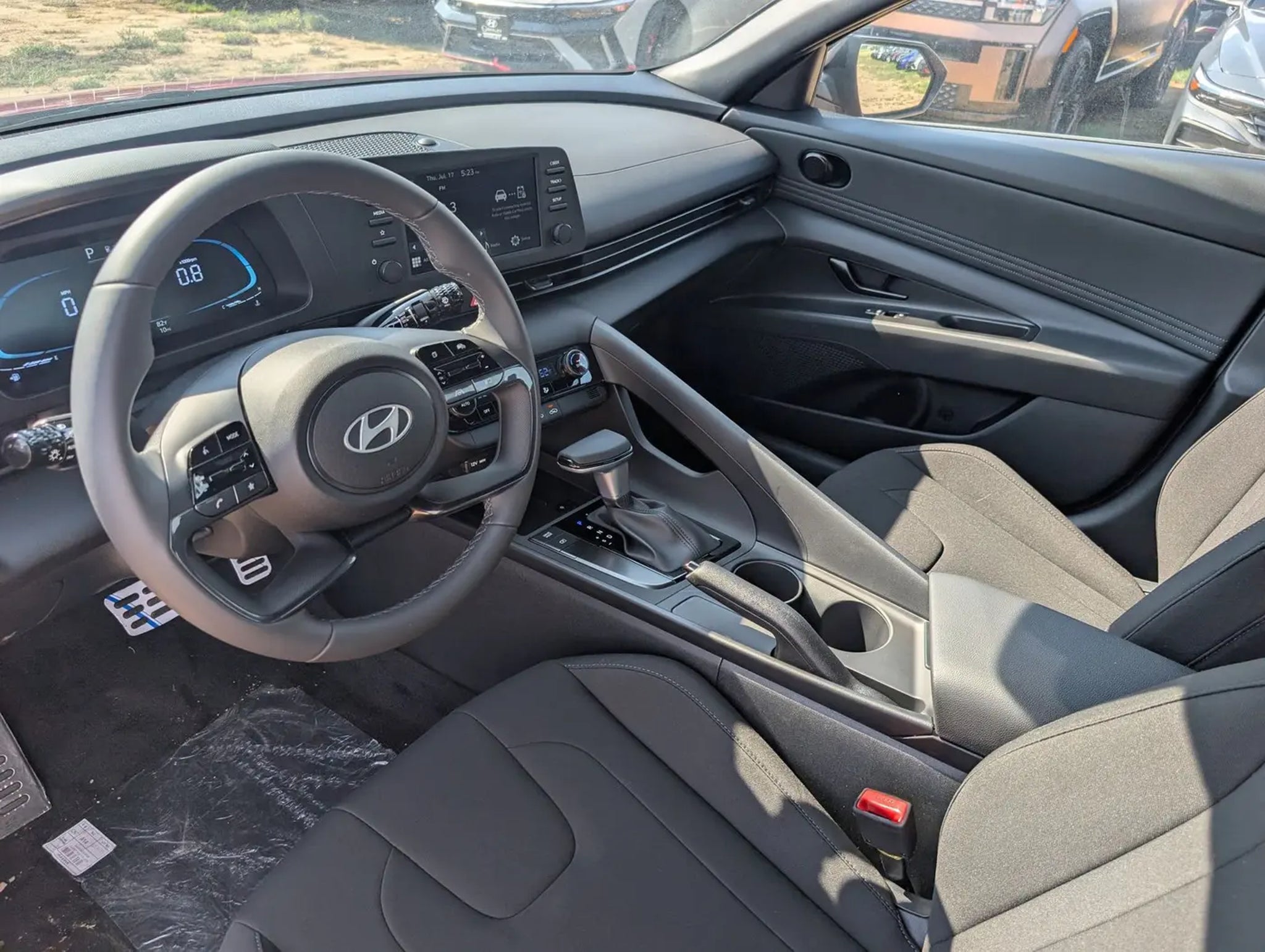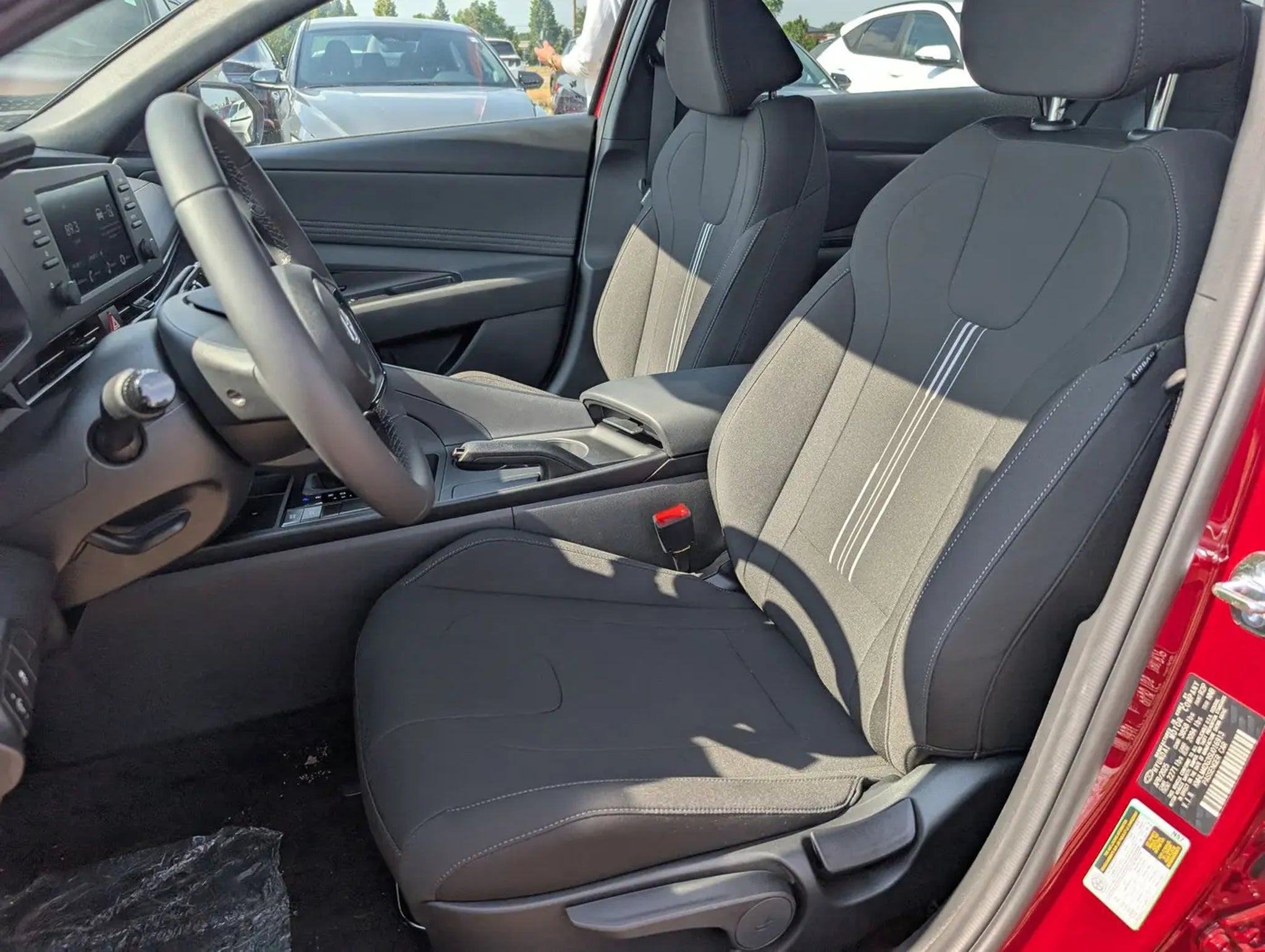 2025 Hyundai Elantra SEL Sport Ultimate Red FWD I4 CVT 17 x 7.0J Alloy Wheels, 4-Wheel Disc Brakes, 6 Speakers, ABS brakes, Air Conditioning, Alloy wheels, AM/FM radio, Apple CarPlay & Android Auto, Auto High-beam Headlights, Automatic temperature control, Brake assist, Bumpers: body-color, Cargo Net, Carpeted Floor Mats, Delay-off headlights, Driver door bin, Driver vanity mirror, Dual front impact airbags, Dual front side impact airbags, Electronic Stability Control, Exterior Parking Camera Rear, First Aid Kit, Front anti-roll bar, Front Bucket Seats, Front Center Armrest, Front dual zone A/C, Front reading lights, Front wheel independent suspension, Fully automatic headlights, Illuminated entry, Leather Shift Knob, Leather steering wheel, Low tire pressure warning, Mudguards, Occupant sensing airbag, Option Group 01, Outside temperature display, Overhead airbag, Overhead console, Panic alarm, Passenger door bin, Passenger vanity mirror, Power door mirrors, Power steering, Power windows, Premium Cloth Seat Trim, Radio: AM/FM/HD Display Audio, Rear side impact airbag, Rear window defroster, Remote keyless entry, Reversible Cargo Tray, Security system, Speed control, Speed-sensing steering, Spoiler, Steering wheel mounted audio controls, Tachometer, Telescoping steering wheel, Tilt steering wheel, Traction control, Trip computer, Variably intermittent wipers. 30/39 City/Highway MPG