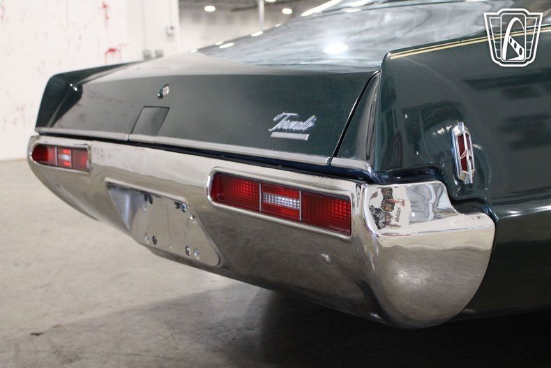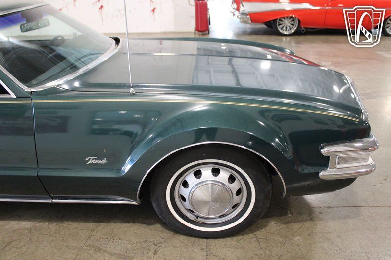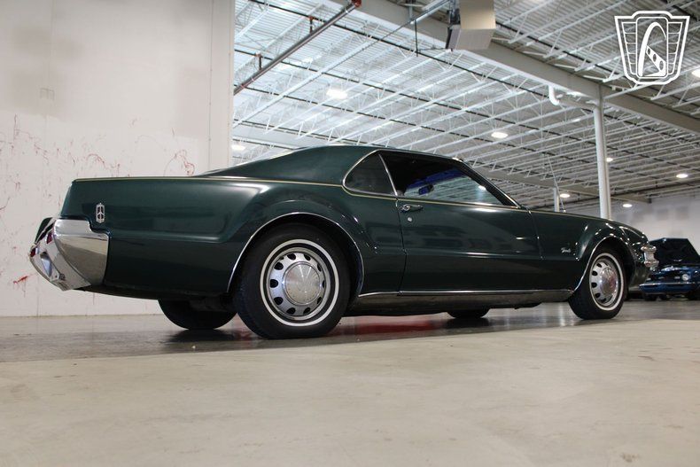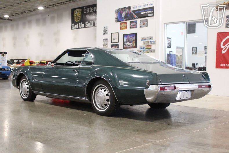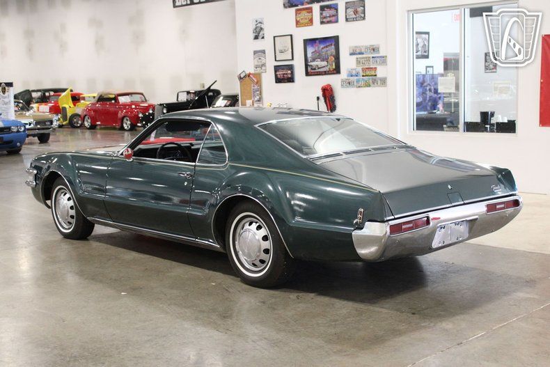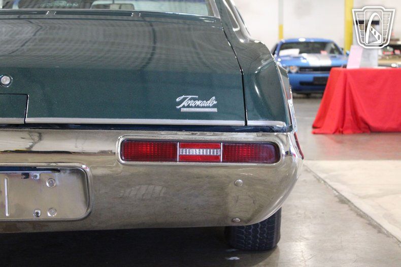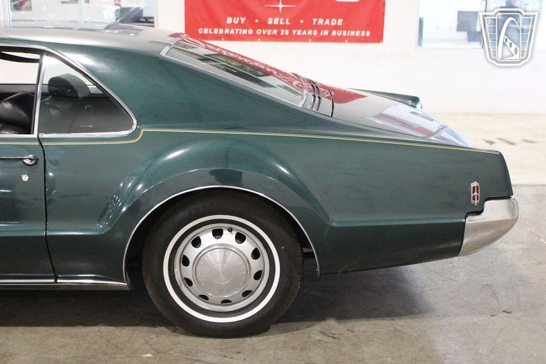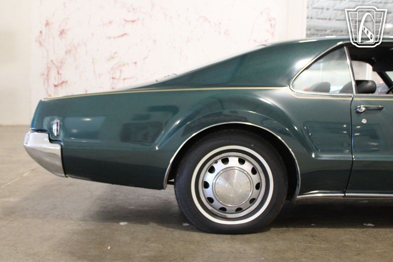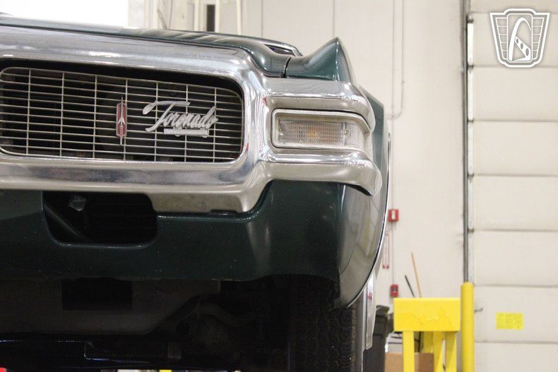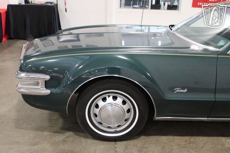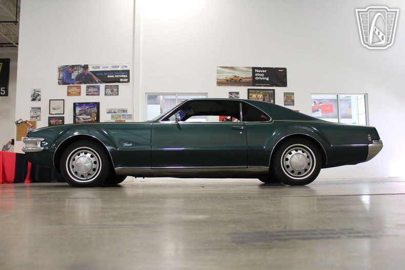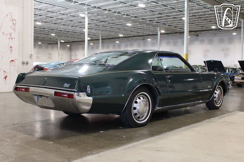 This iconic vehicle is a testament to the bold design and engineering prowess of its era, featuring a striking green exterior that captures the essence of the late 1960s. The sleek lines and distinctive styling of the Toronado make it a standout choice for enthusiasts and collectors alike.