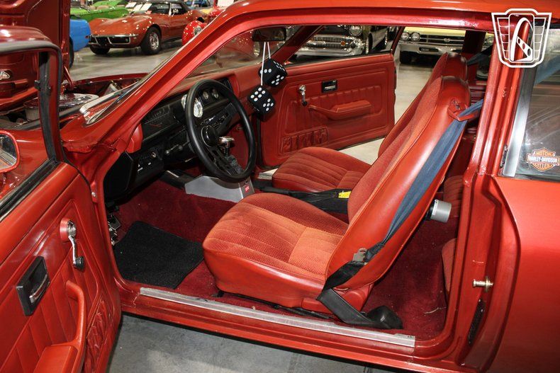 Step inside, and you'll be greeted by an inviting orange cloth interior that complements the exterior and adds a cohesive, stylish touch to the overall aesthetic. The cabin is equipped with an AM/FM radio, allowing you to enjoy your favorite tunes as you cruise down the highway. The cloth seats provide comfort and support, ensuring that both driver and passengers can enjoy the journey in style.