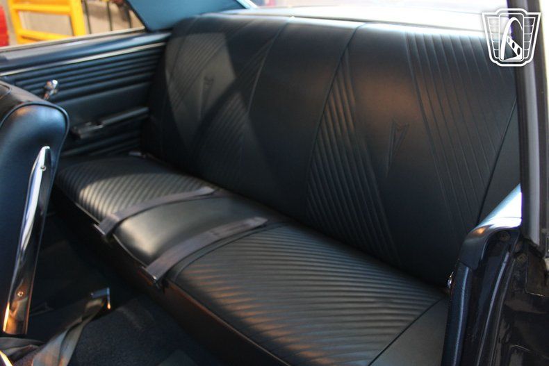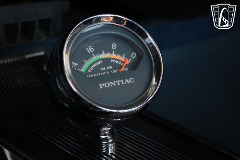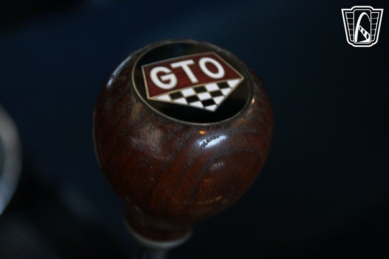 The vehicle is equipped with a set of stylish aluminum wheels that not only enhance its appearance but also contribute to its performance. The radial tires provide improved handling and ride comfort, making every drive a pleasure. For added convenience and safety, this GTO comes with power brakes and power steering, ensuring a smooth and controlled driving experience. Inside, the blue vinyl interior is both comfortable and classic, featuring seatbelts for added safety.