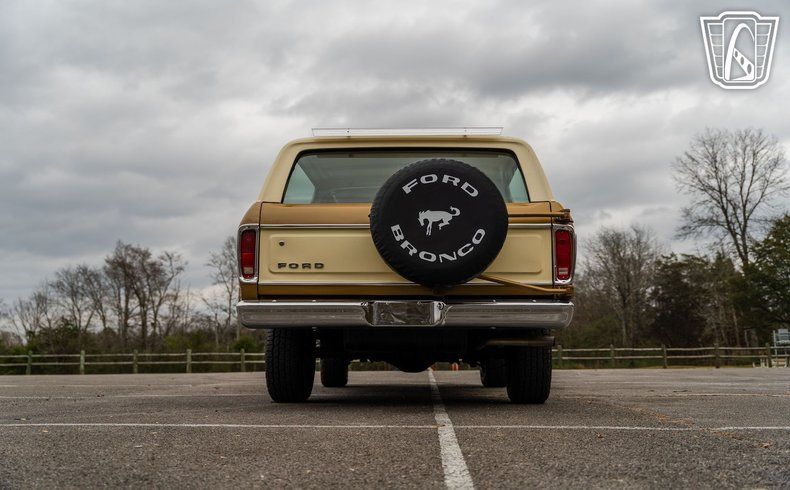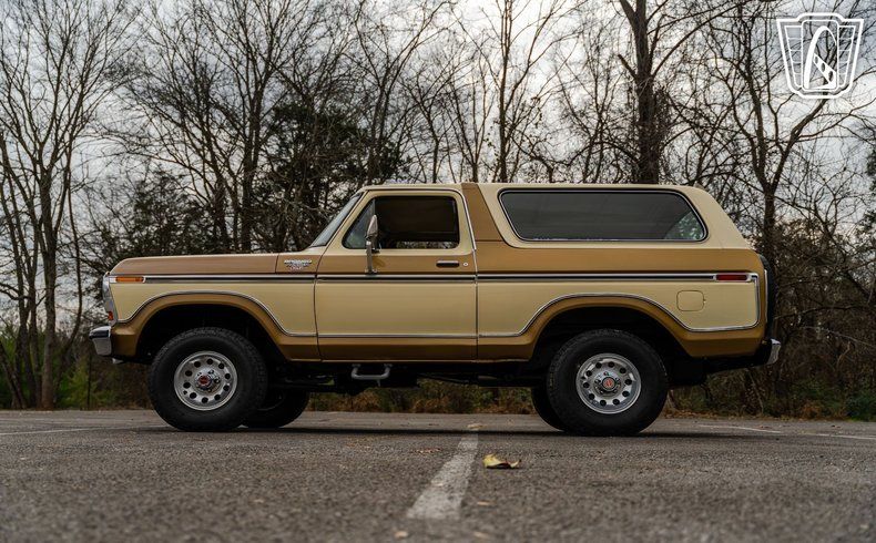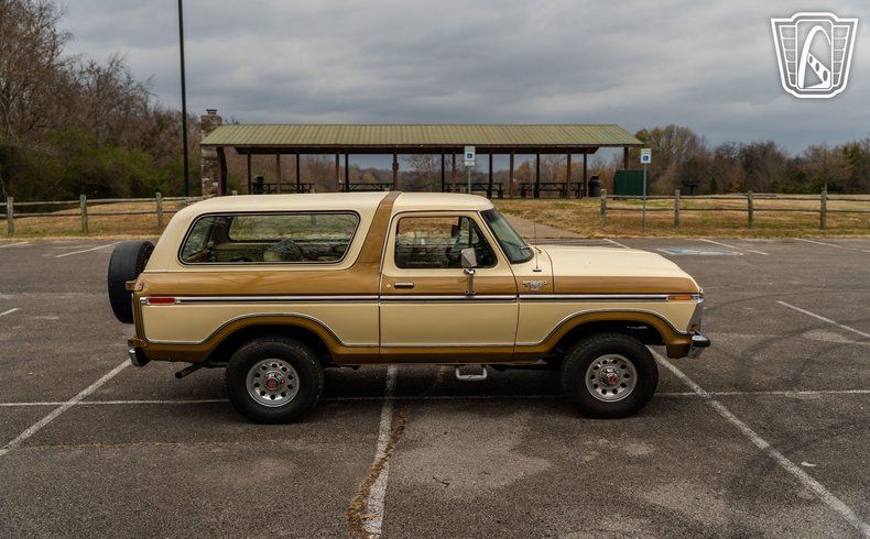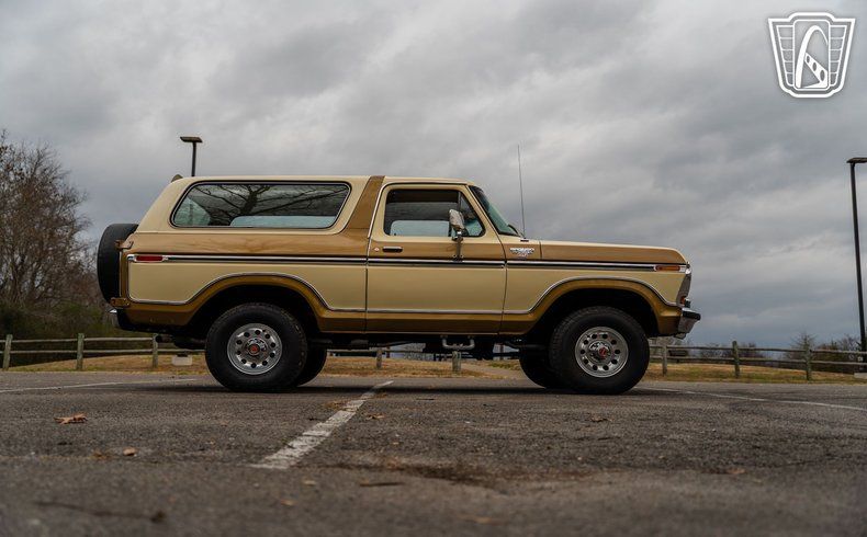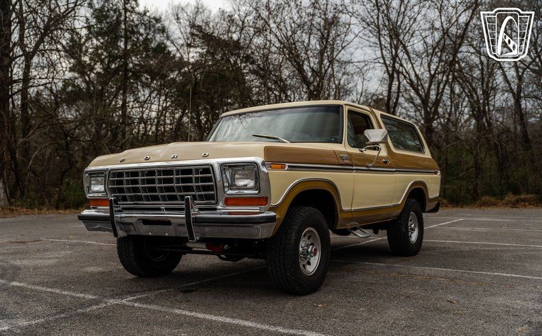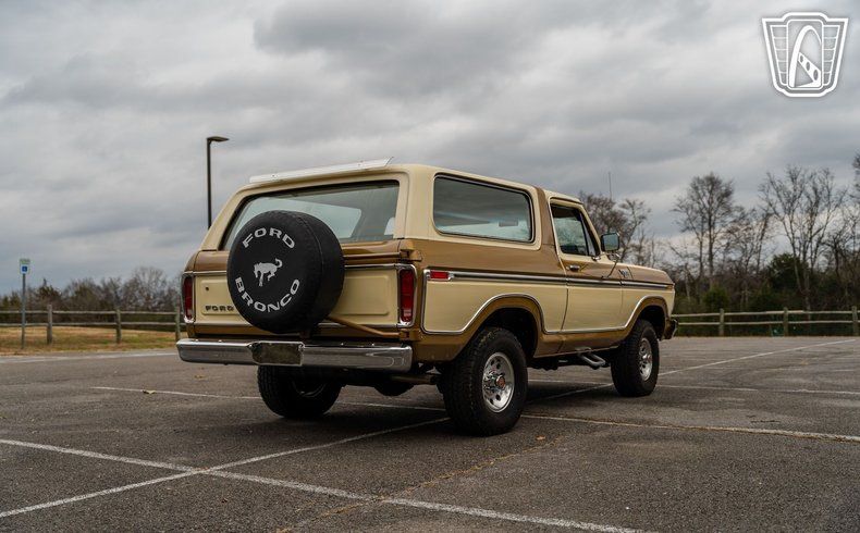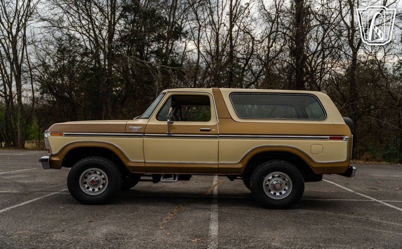 Gateway Classic Cars of Nashville is proud to Digitally present this 1979 Ford Bronco Ranger XLT is a remarkable representation of automotive history. With its striking gold and white exterior, this Bronco captures the essence of late 70s design, offering a bold yet sophisticated look that is sure to turn heads. The exterior is complemented by a matching gold and white cloth interior, creating a cohesive and inviting atmosphere for both driver and passengers.