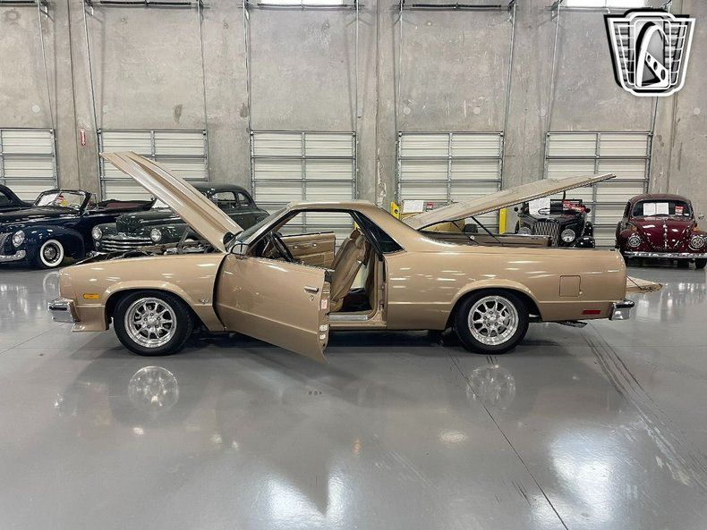 Gateway Classic Cars of San Antonio/ Austin is proud to present this 1986 Chevrolet El Camino. This classic beauty exudes an air of nostalgia, coupled with the promise of power and elegance beneath the hood. The vibrant gold exterior is tastefully balanced with a warm, inviting tan interior, featuring a durable vinyl upholstery that echoes the vintage charm of this iconic vehicle. Under the hood, is a powerful 305 CID V8 engine that ensures a smooth and powerful ride. Paired with a 700R4 automatic transmission, this vehicle offers a driving experience that is both comfortable and dynamic, making every journey a joy. This classic El Camino is well-equipped with a variety of features designed for your comfort and convenience. The power options including power brakes, power locks, power seats, power steering, and power windows, each element is designed to enhance your driving experience. For your entertainment and connectivity, the car features an AM/FM radio along with a CD player, allowing you to enjoy your favorite tunes on the go. The cruise control feature adds an extra layer of convenience for those long drives, allowing you to maintain a steady speed without constant pressure on the accelerator. Safety is not compromised, with the El Camino featuring seatbelts for all passengers. The radial tires provide grip and stability, while the tilt steering wheel allows for customized driver comfort. Whether you're cruising down the highway or taking a leisurely drive through town, this El Camino promises a unique and unforgettable journey every time.