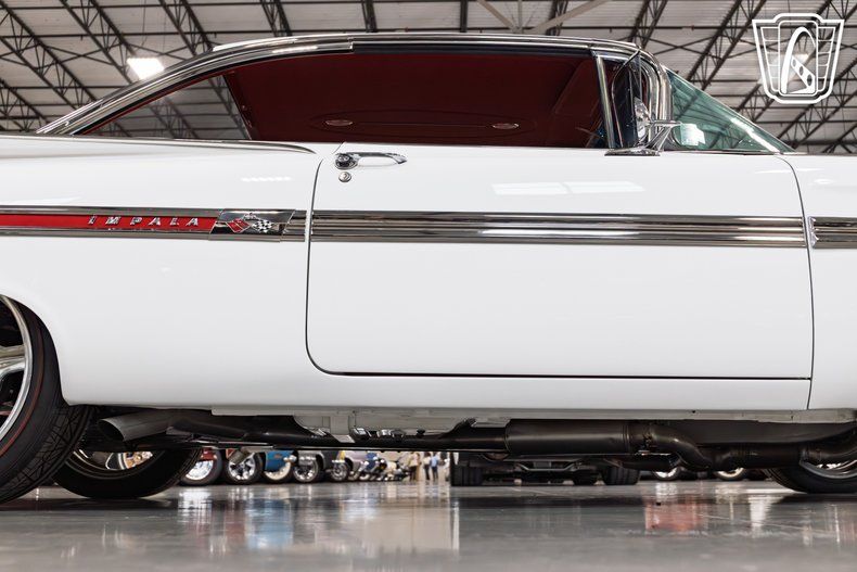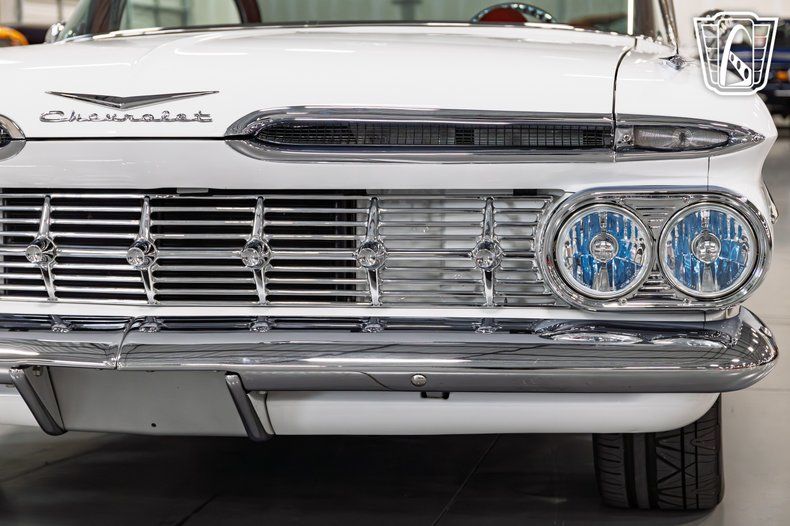 Gateway Classic Cars of San Antonio/Austin is excited to present this 1959 Chevrolet Impala. Finished in a crisp white exterior over a fully custom red leather interior, this Impala blends the unmistakable style of the late 1950s with modern performance and craftsmanship. Powering this build is a 6.2L V8 engine paired with a 4L60E automatic transmission, producing an estimated 500 horsepower as stated by the seller. The car underwent a four-year restoration, resulting in a striking combination of vintage design and updated engineering. This Impala features a range of performance upgrades and custom touches. It's equipped with an electronic air ride suspension for adjustable ride height and comfort, a 9-inch rear end, and a custom engine bay featuring a Champion Cooling aluminum radiator, Holley EFI, Hedman Hussler headers, and a Tru Trac air conditioning system. CPP power brakes and power steering provide modern drivability and confident control behind the wheel. The exterior retains much of its original charm, highlighted by original chrome as stated by the seller and refinished stainless steel that complement the clean body lines. It rides on Billet Specialties aluminum wheels wrapped in distinctive red sidewall performance tires that tie in beautifully with the car's interior color scheme. Inside, the Impala showcases a fully custom red leather interior and matching trunk upholstery, offering a cohesive and luxurious presentation. Power windows, air conditioning, and an AM/FM radio add comfort and convenience for cruising. This 1959 Chevrolet Impala represents a blend of classic American design and modern performance. With its detailed restoration, custom craftsmanship, and an estimated 500 horsepower stated by the seller, it stands as a remarkable interpretation of one of Chevrolet's most iconic models.