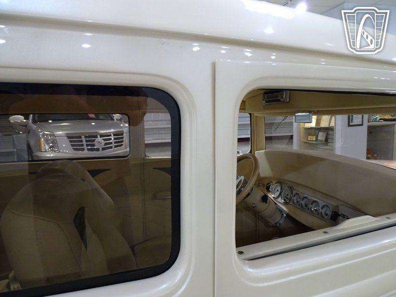 Finished in a stunning White Pearl exterior, this hot rod glows under any light - a show-quality finish that highlights its flowing lines and smoothed bodywork. The look is clean and aggressive, with shaved door handles and subtle detailing that give it a sleek, modernized appearance without losing its classic soul.