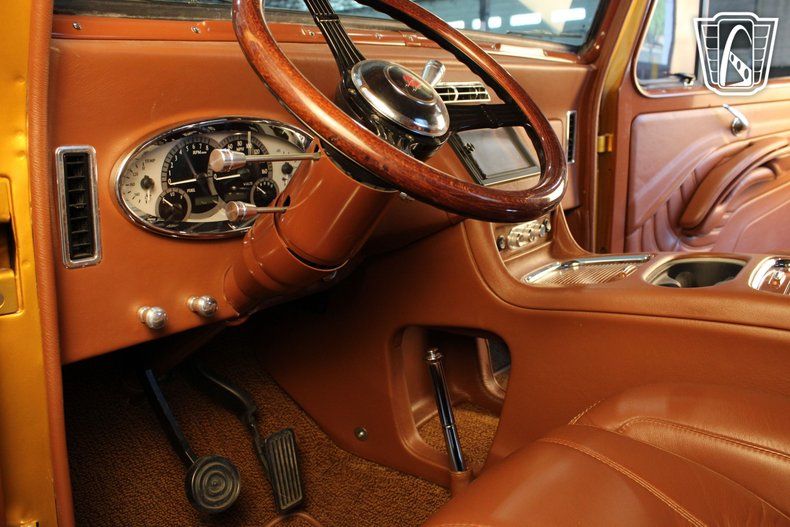 Step inside to discover a luxurious mahogany leather interior that exudes sophistication and comfort. The full custom leather interior is carefully crafted, featuring heated seats and lumbar support for an unparalleled driving experience. Modern conveniences such as power windows, courtesy of the Nu-Relics system, and a tilt steering wheel ensure that every journey is as comfortable as it is stylish. The tinted glass adds an extra layer of privacy and protection, while the Dakota Digital gauges provide a sleek and contemporary touch to the classic dashboard.