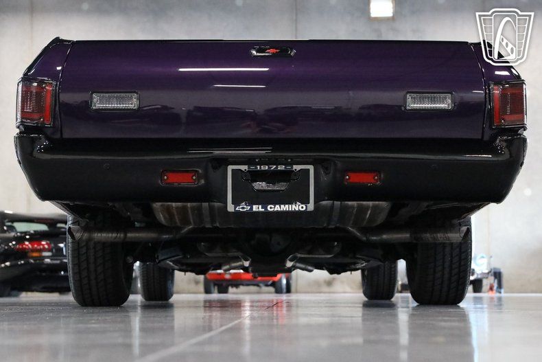 Gateway Classic Cars of San Antonio/Austin is happy to present this 1972 Chevrolet El Camino, a classic blend of muscle and style, available in a captivating Merlin Purple exterior. This iconic vehicle stands out with its unique color, making it a true head-turner on the road. The El Camino's bold presence is further enhanced by its sleek black and purple interior, offering a seamless blend of comfort and aesthetics that complements its exterior allure. Under the hood, this El Camino is powered by a crate LS3 V8 engine, delivering impressive performance and a thrilling driving experience. The engine is paired with a Flowmaster exhaust system, ensuring a deep, resonant sound that echoes the power within. The 4L65E automatic transmission provides smooth and responsive gear shifts, making every drive enjoyable and effortless. This El Camino is equipped with a range of features designed to enhance comfort and convenience. The Vintage Air conditioning system ensures a pleasant cabin environment, allowing you to enjoy the ride regardless of the weather outside. The classic am/fm radio offers entertainment options for your journeys, adding to the nostalgic charm of this vehicle. Performance tires provide great grip and handling, ensuring stability and control on the road. The power brakes and power steering contribute to a driving experience that is both safe and enjoyable, while the tilt steering wheel allows for personalized comfort and ease of use. Adding a touch of elegance and uniqueness, the purple stained wood bed is a standout feature that highlights the vehicle's attention to detail and craftsmanship. This 1972 Chevrolet El Camino is a remarkable example of classic automotive design, enhanced with modern performance and comfort features. Its distinctive color scheme and powerful engine make it a standout choice for enthusiasts and collectors alike.
