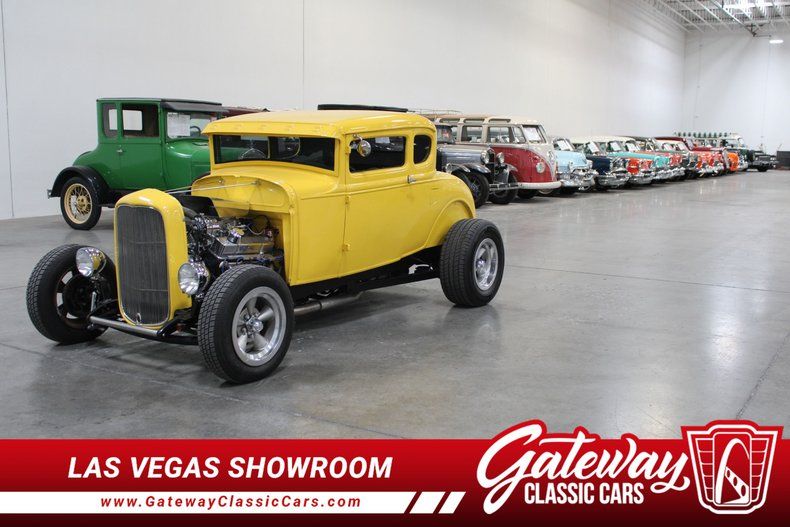 Gateway Classic Cars of Las Vegas is excited to digitally present this stunning 1931 Ford Coupe, a classic embodiment of automotive history that seamlessly blends vintage charm with modern enhancements. This iconic vehicle is dressed in a vibrant yellow exterior, a hue that captures attention and admiration wherever it goes. The bold color is complemented by a sleek black cloth interior, offering a comfortable and stylish ride that pays homage to its era while ensuring a pleasant driving experience.