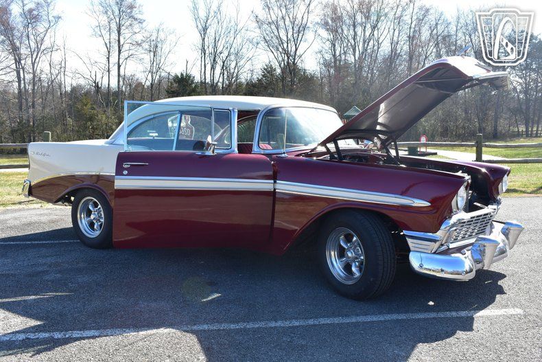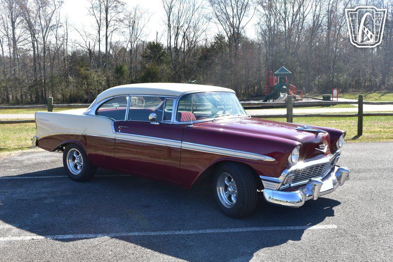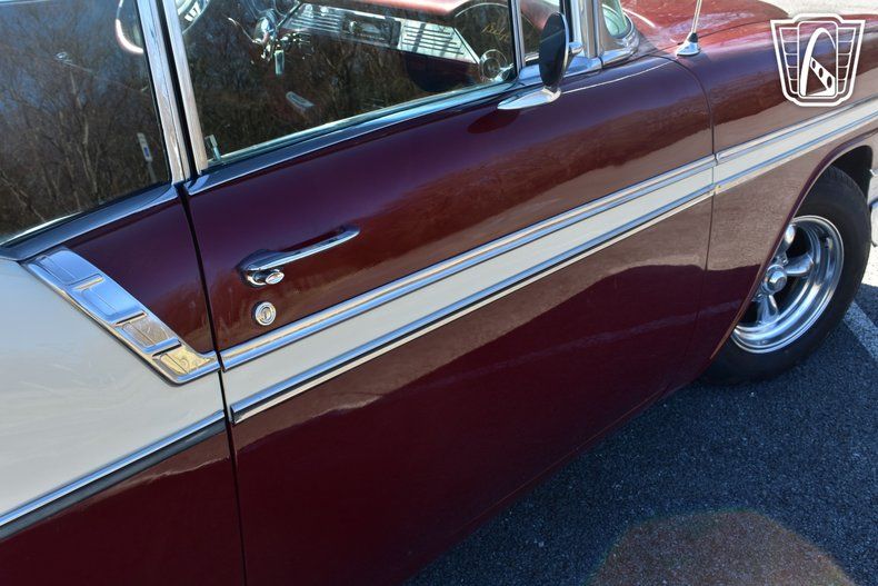 Safety and comfort are further enhanced with the inclusion of seatbelts, a thoughtful addition that underscores the vehicle's blend of classic charm and modern practicality. The tilt steering wheel offers adjustable comfort, allowing drivers to find their ideal driving position with ease. This 1956 Chevrolet Bel Air is a remarkable representation of mid-century automotive design, offering a unique blend of style, performance, and comfort.