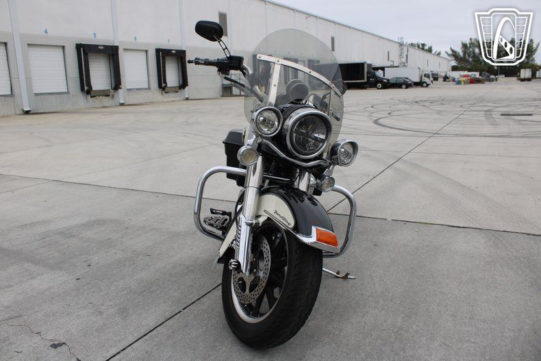 Gateway Classic Cars Fort Lauderdale is proud to present this 2001 Harley Davidson Road King Police edition, a motorcycle that embodies the spirit of the open road with its classic design and robust performance. This iconic bike features a striking black and white exterior that pays homage to its law enforcement heritage, making it a standout on any street. The black interior complements the exterior, offering a sleek and cohesive look that is both timeless and bold.