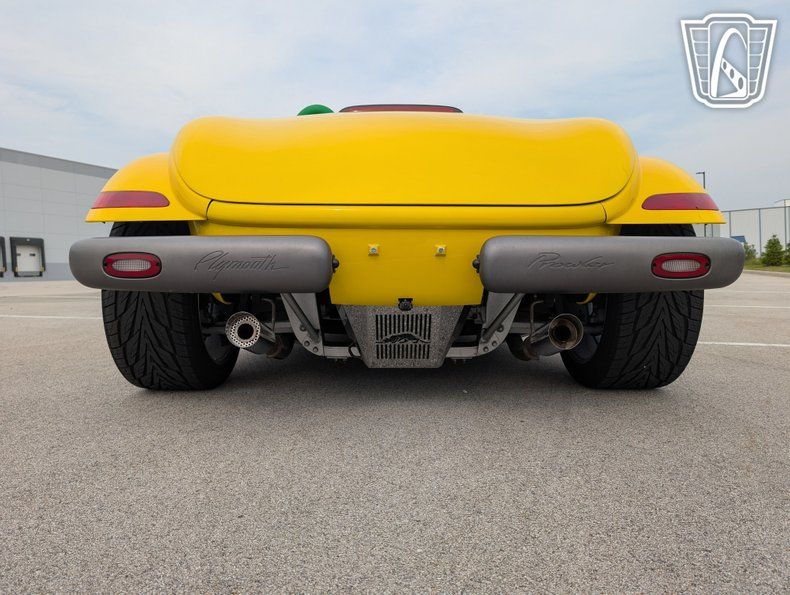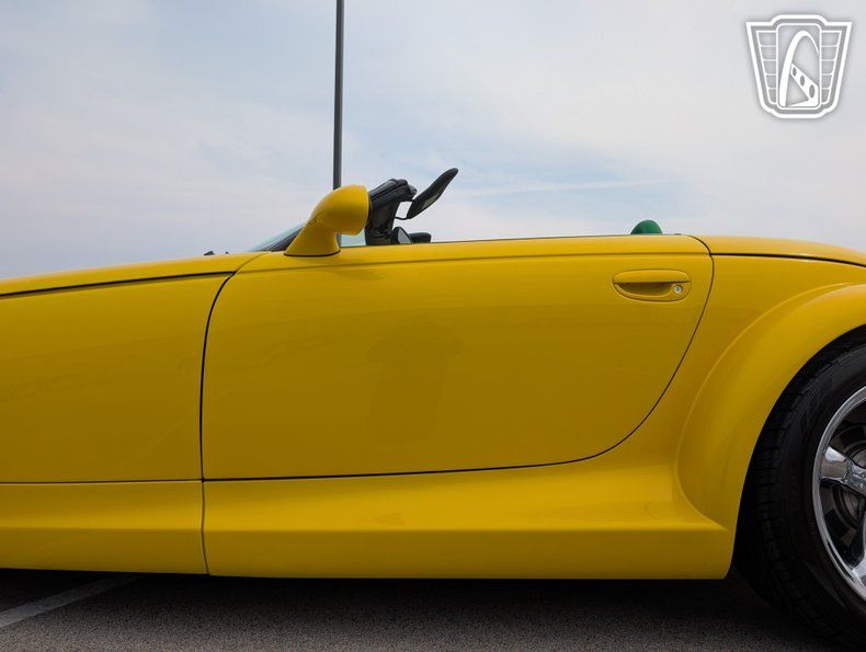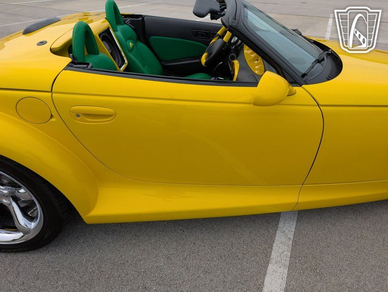 Gateway Classic Cars proudly presents this stunning 1999 Plymouth Prowler, a vehicle that effortlessly merges retro flair with modern performance. Dressed in a striking Lambo Pearl Yellow exterior, this Prowler is a head-turner, exuding a vibrant and bold presence on the road. Equipped with both front and rear cameras for ease of maneuvering. The unique color is complemented by the custom yellow, black, and green leather interior, creating a visually captivating and luxurious driving environment that speaks to both style and comfort.