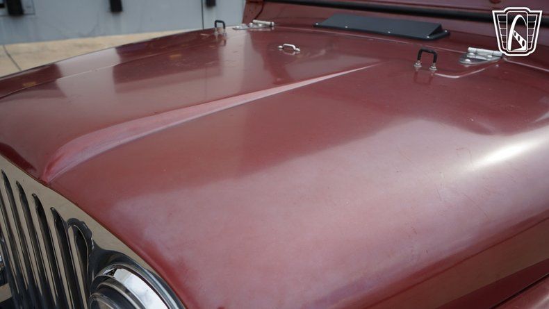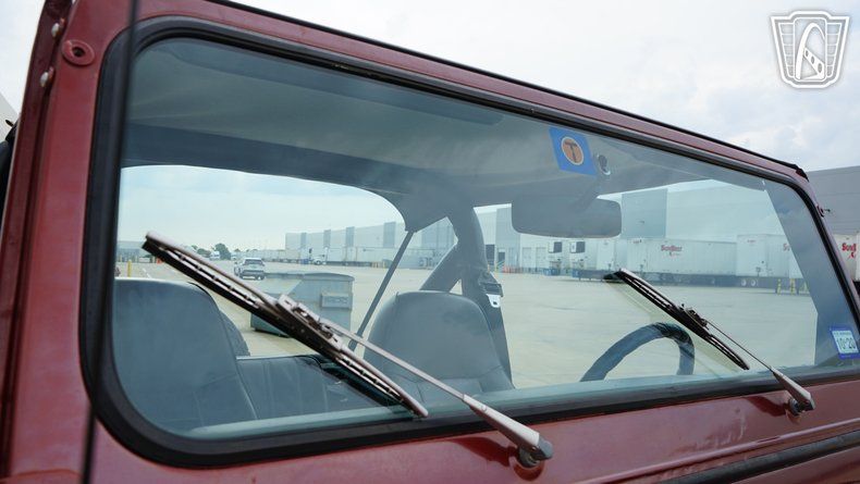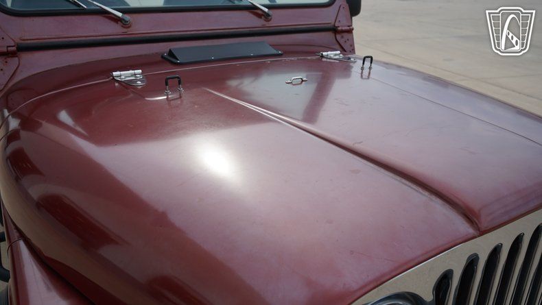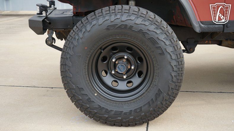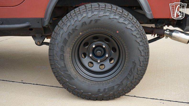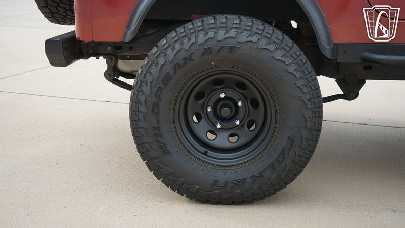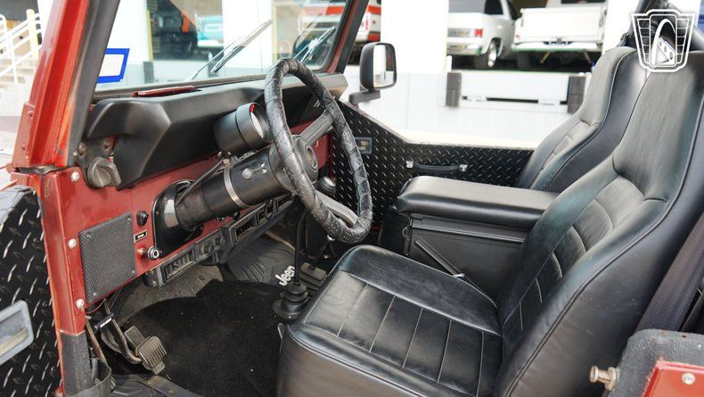 Step inside, and you are greeted by a black vinyl interior that complements the exterior's bold Red color. The interior provides a no-nonsense approach to driving where the focus remains squarely on the journey. Equipped with an AM/FM radio, this Jeep offers entertainment options for the road ahead, ensuring that whether you're navigating city streets or exploring a rugged trail, you have the soundtrack to match. The inclusion of seatbelts emphasizes the balance of classic style with essential safety features, ensuring peace of mind as you embark on your adventures.